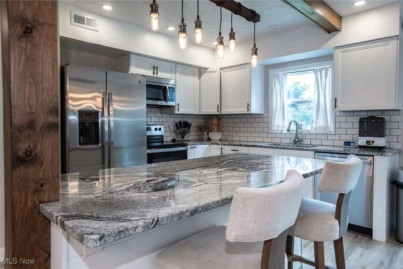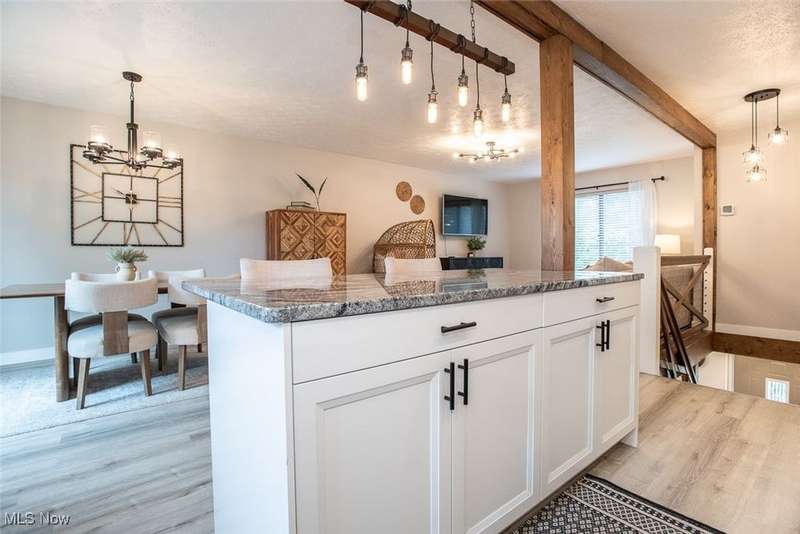 Looking for a 3-bed home in Orrville under $260K with updates and outdoor space? This raised ranch in a quiet neighborhood offers 3 bedrooms, 1 full bath, and 2 half baths across 1,591 square feet, all thoughtfully renovated for both comfort and style. The open-concept upper level features a spacious living and dining area, flowing seamlessly into a modern kitchen with crisp white cabinetry, granite countertops, a center island, and luxury vinyl tile flooring. Updated lighting adds a fresh, contemporary feel. Upstairs are all three bedrooms, including the primary suite with its own private half bath. The main bath features a tiled shower-tub combo and sleek vanity. Step through the dining area's sliding glass doors to enjoy a generous upper deck and a large backyard complete with a firepit. Downstairs, enjoy a cozy family room with a fireplace, laundry room with second half bath, and interior access to the two-car garage with ample storage and a charming water feature. Located in Orrville City School District with no HOA fees and less than 10 minutes from downtown shops and dining, this move-in ready home blends elegance and ease.
