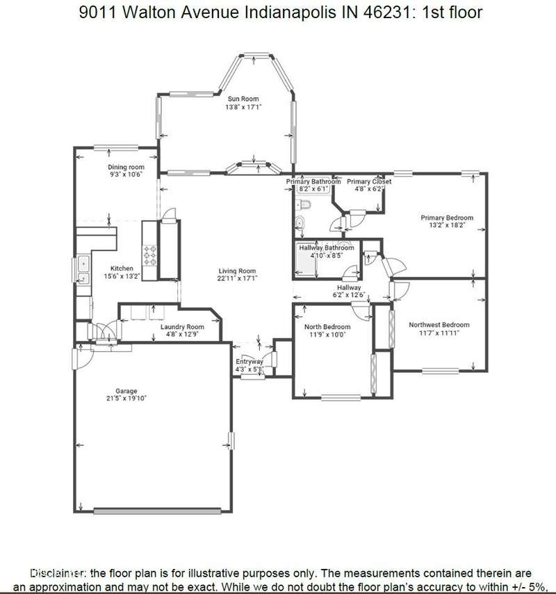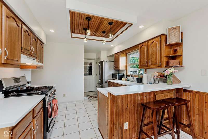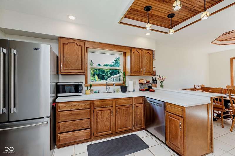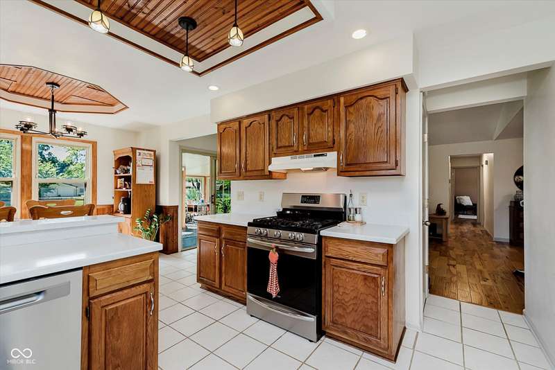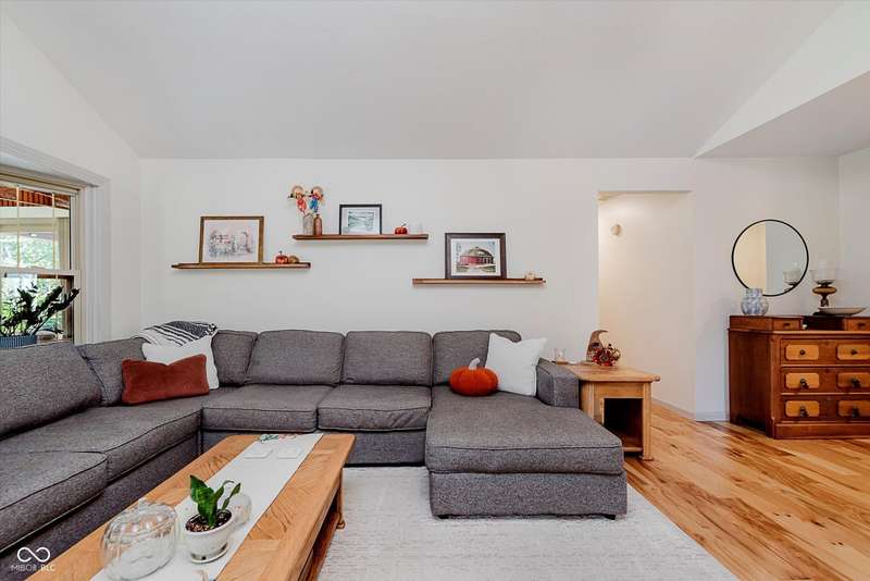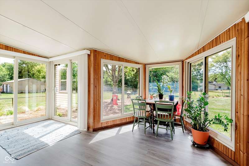Discover the charm of 9011 Walton ST, INDIANAPOLIS, IN, a Ranch home with 3 beds, 2 full baths sits nestled on an expansive lot, presenting an attractive property in great condition. The living room stands as a testament to architectural detail, featuring a vaulted ceiling that enhances the sense of space and light, complemented by a beamed ceiling that adds a touch of rustic elegance. Envision evenings spent in this inviting atmosphere, where the thoughtful design creates a warm and welcoming ambiance. The kitchen, designed with both aesthetics and functionality in mind, offers a tray ceiling and wood ceiling, and corian countertop creating a unique and inviting culinary space; the kitchen bar and kitchen peninsula provide ample space for meal preparation and casual dining. The living room opens into the all season sunroom (adding over 200 sq ft) with its own heating and cooling system. A perfect setting for outdoor living as you move onto the patio, pergola, and deck offering different spaces to enjoy the expansive lot with a large fruitful garden. Imagine hosting gatherings around the fire pit, creating memories that will last a lifetime. This home also includes a practical laundry room. This is an opportunity to own a beautiful home with an expansive lot, ready for creating a lifetime of memories. New roof and gutters! *New roof and gutters!!
