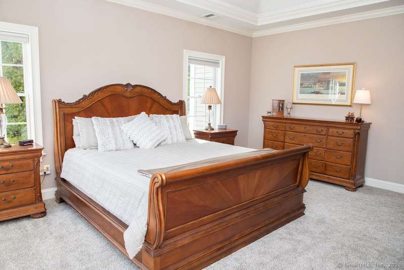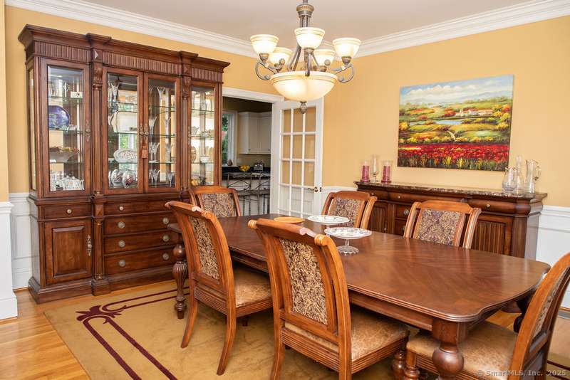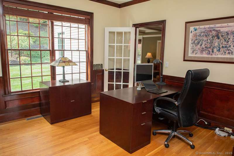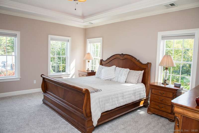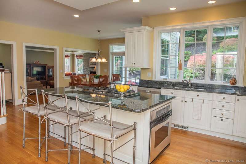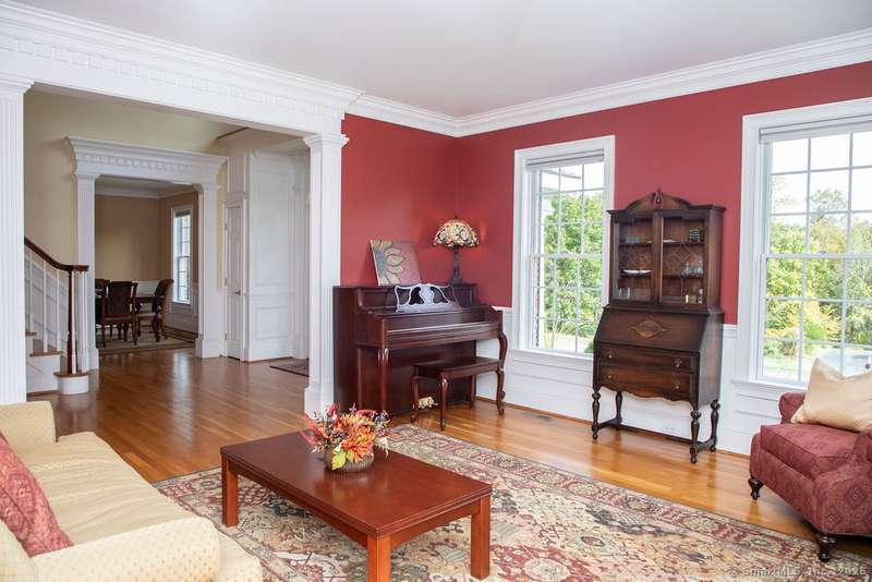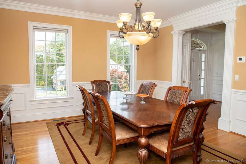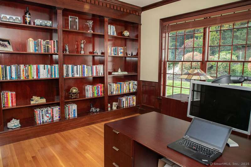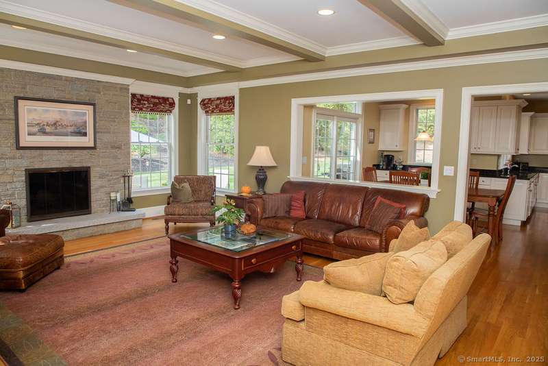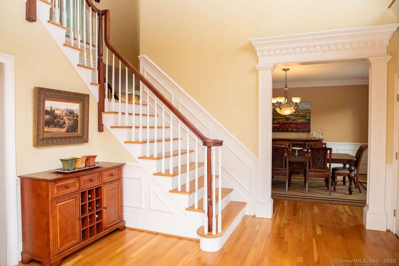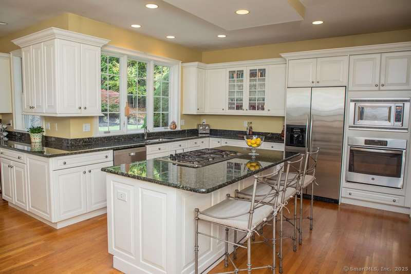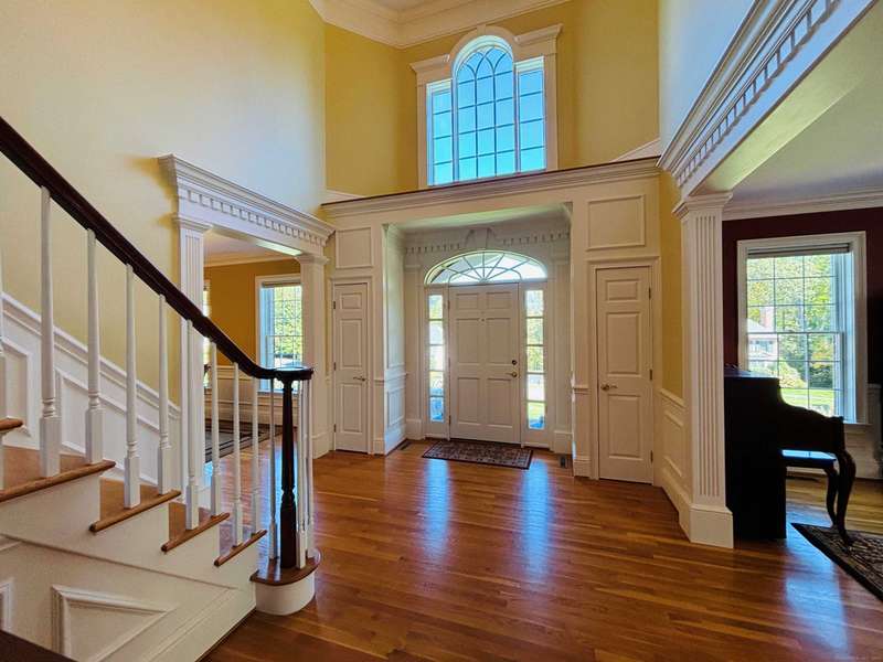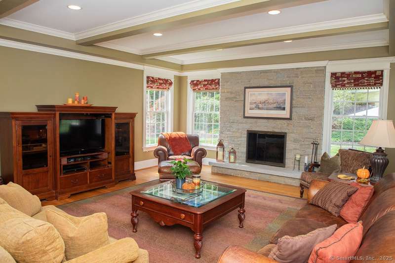 Set on a quiet cul-de-sac in one of Avon's most sought-after neighborhoods, this single-owner colonial has been lovingly maintained and offers timeless appeal with modern comfort. Extensive millwork and lustrous wood flooring span the main level, filling each rm with warmth and character. Nine-foot ceilings and large windows create an airy, light-filled atmosphere throughout. The grand two-story foyer opens to the formal dining rm and living rm, highlighted by marble fireplace leading to a library with custom cherry built-ins. At the heart of the home is a chef-inspired kitchen w/granite countertops, high-end SS appliances, & a large island designed for cooking & entertaining. The casual dining area, framed by gliding doors, overlooks a private backyard with an expansive stone patio, ideal for al fresco dining or gatherings with friends. The spacious family rm features a dramatic floor-to-ceiling stone fireplace & crisp coffered ceiling. Completing the main level is a powder room & an