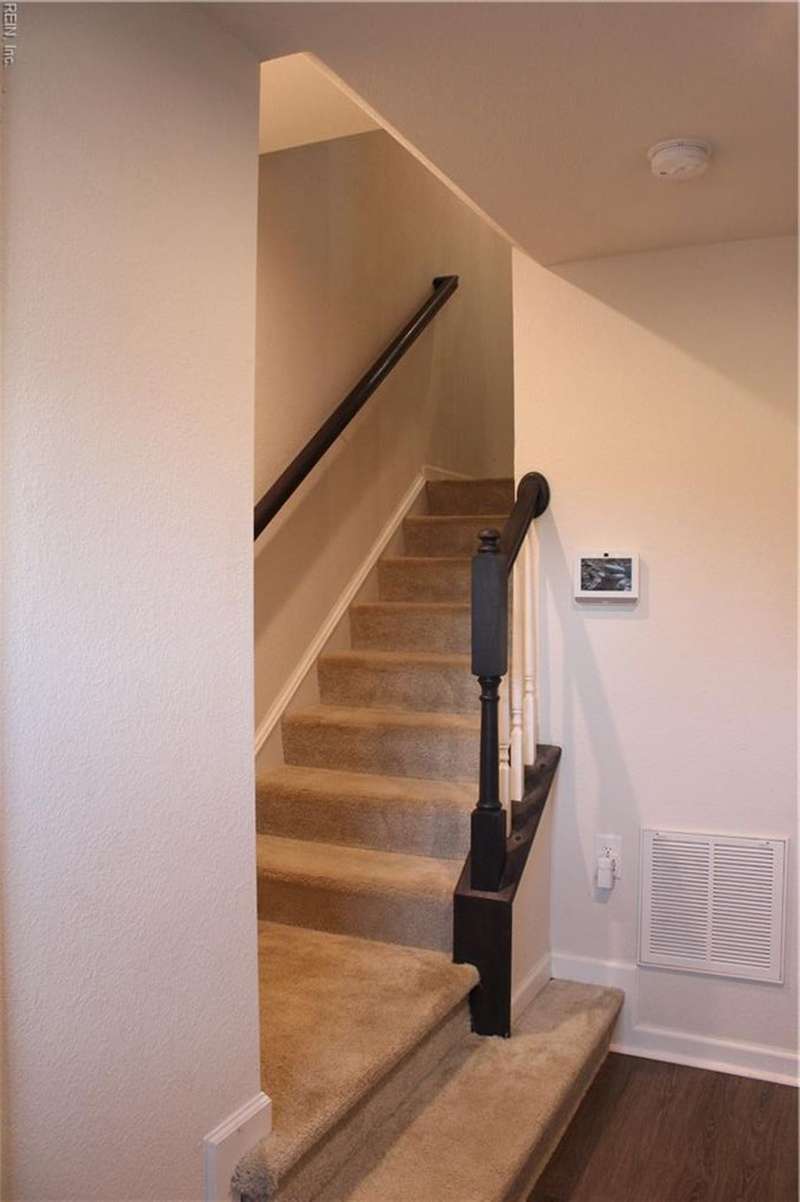 Welcome to this meticulously maintained three-story townhome in the Woodland Park Subdivision. This home features three bedrooms and two and a half baths. The kitchen is equipped with ample cabinet space and includes all appliances. On the upper level, you will find an ensuite bedroom with a bathroom and a walk-in closet, as well as two additional bedrooms and a hall bath. Enjoy breakfast on your deck and unwind at the end of your day. The location is convenient, with easy access to stores, Tidewater Community College, and nearby military bases. The subdivision also offers a playground and a dog park.
