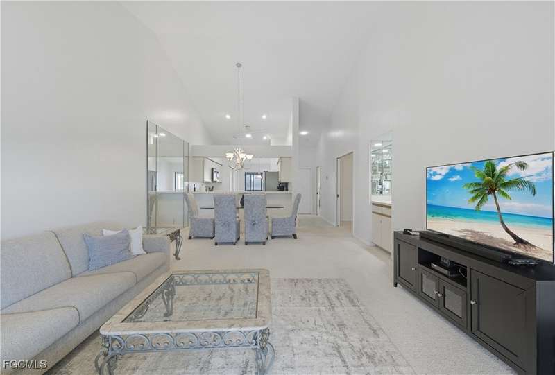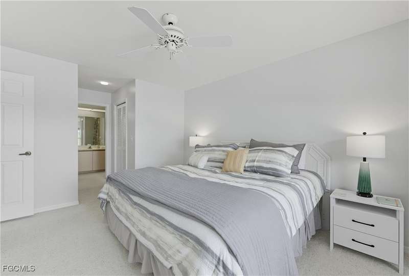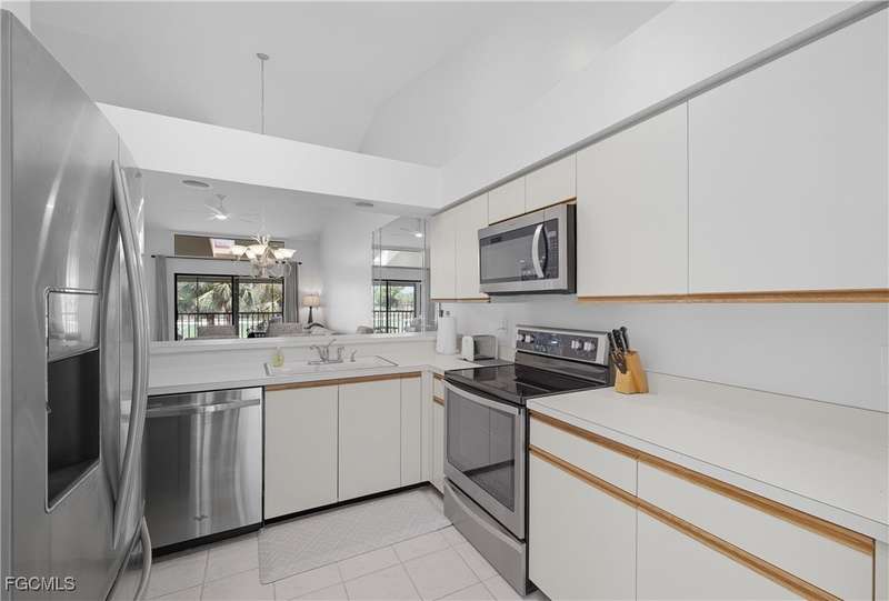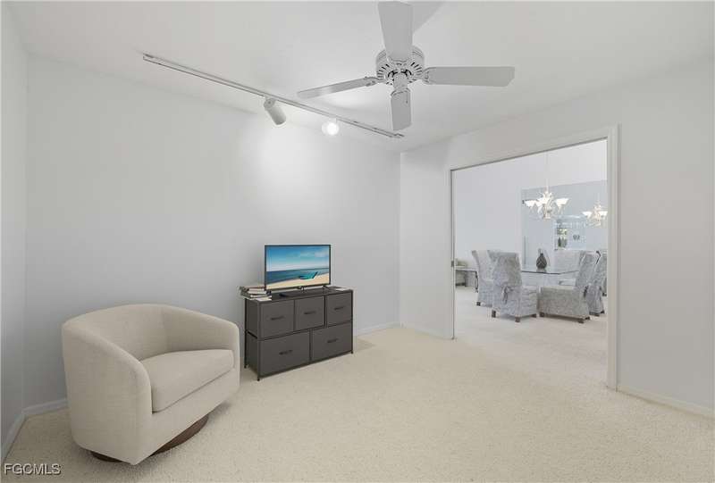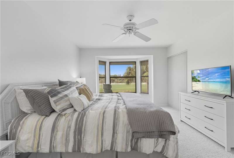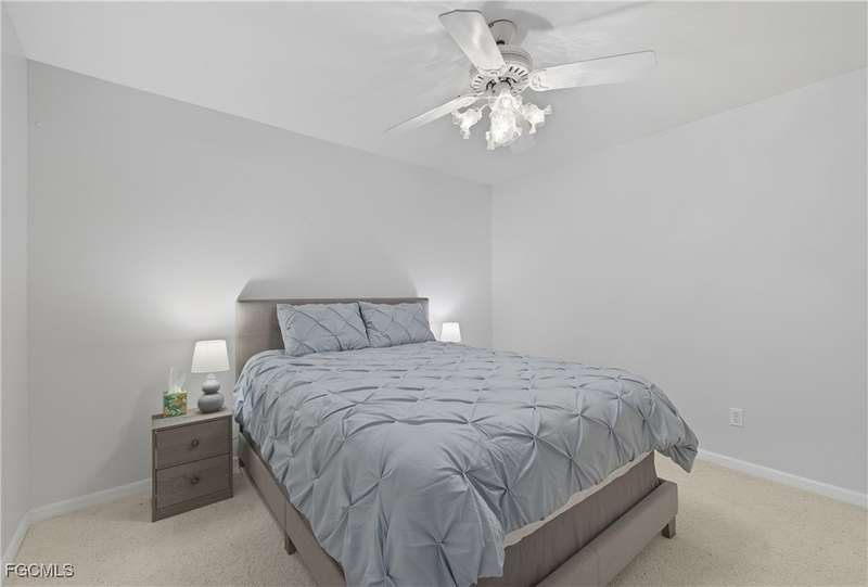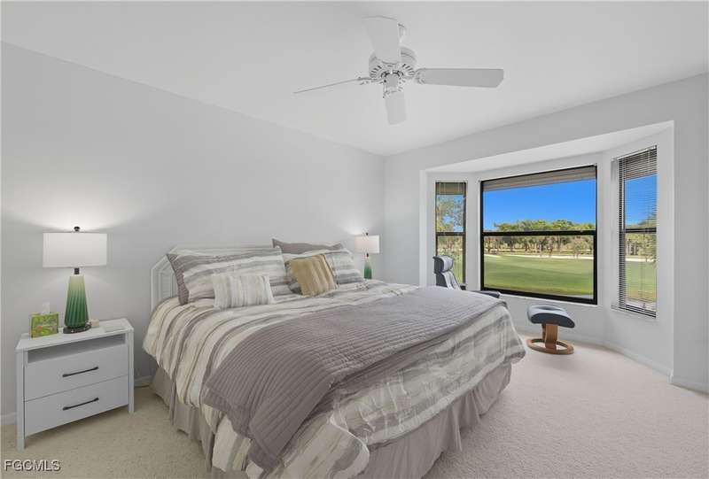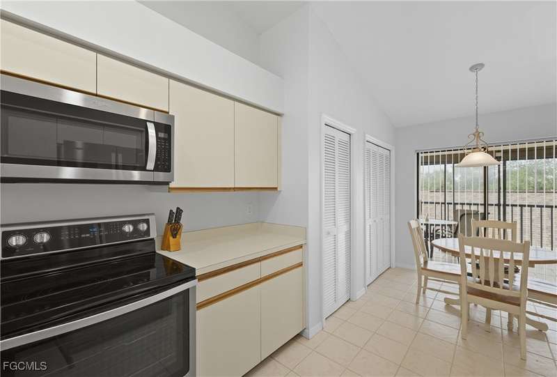 Live year-round in this spacious top-floor Kelly Greens condo! Available as-is furnished, partially furnished or unfurnished, this 1336 sq. ft, this roomy 2nd floor/top floor unit features 2 bedrooms, a den/bonus room, 2 bathrooms, a single car detached garage, screened front & back lanais, all warranted kitchen & laundry appliances, stainless kitchen appliances, ceiling fans, tiled entry & wet areas with carpeted living room and bedrooms, breakfast nook, formal dining room, double walk-in closets & dual sinks in the primary bedroom/bathroom, auto hurricane shutters & more! Enjoy breathtaking views of the lake and private 18-hole championship golf course from the rear windows & large lanai! Kelly Greens is an 18-hole golf course community with amenities galore, including pools, a clubhouse, a 200-seat restaurant and lounge, a golf pro shop, a fitness center, snack bar, and activity director. Amenity and Golf Membership Transferable! Incredible location just moments from the Sanibel Causeway, Punta Rassa, Bunche Beach & Fort Myers Beach, with shopping, dining, entertainment, schools, and grocery stores close by! Water, sewer, trash removal, basic cable, internet & Resident Benefit Package included. Pets, smoking & vaping are prohibited. Available now for a 12-month lease! The Application Fee is $100 PER ADULT. One-time lease administrative fee of $225. Please note that properties within an Association may have an additional application process, will be subject to an additional fee(s) and an additional approval process.