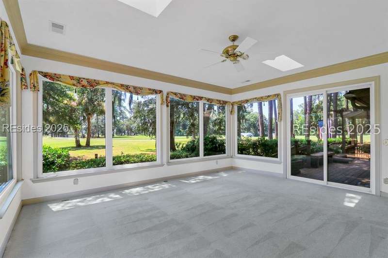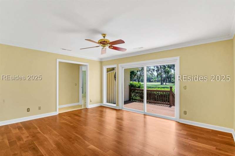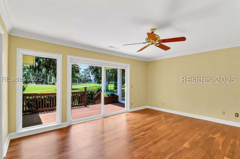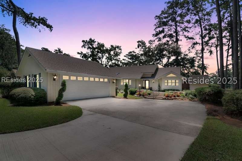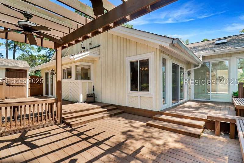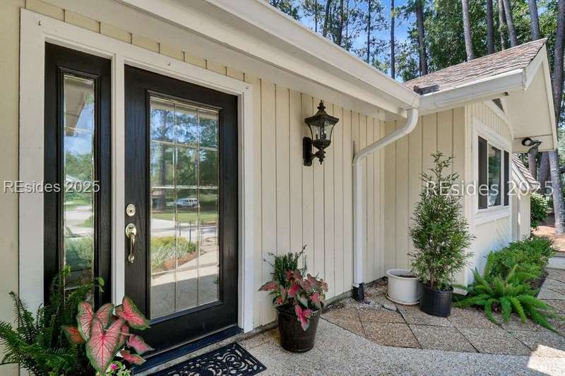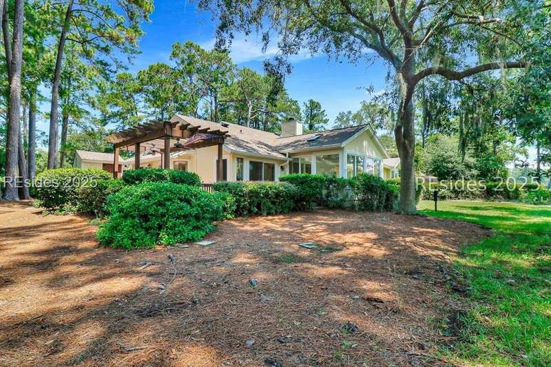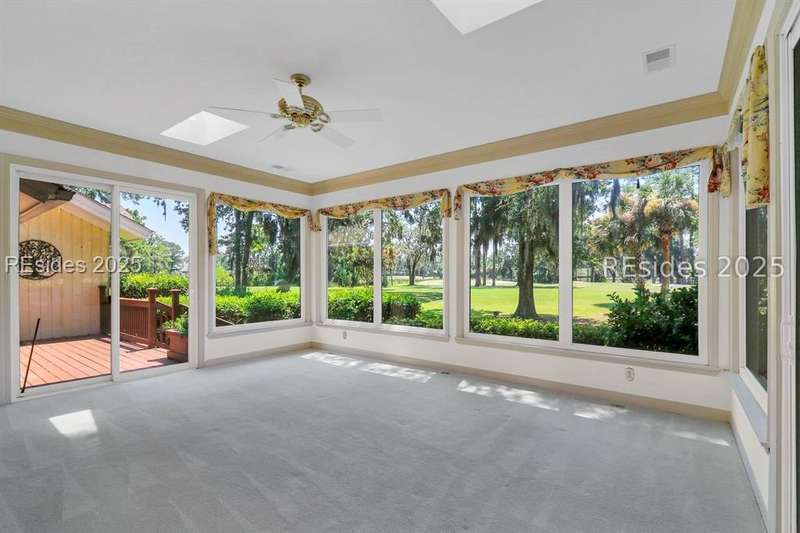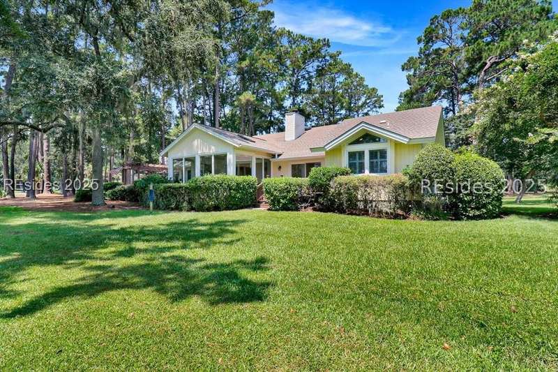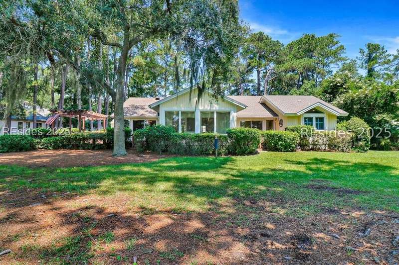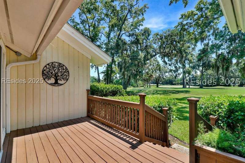Value priced, superbly maintained, triple fairway, lagoon & marsh view residence in private, amenity rich Moss Creek. Features include wood flooring, smooth ceilings, custom detailed millwork & built-ins, granite counters, gas FP, plantation shutters, walls of windows to view, 2-tiered wrap around rear deck, max storage space incl. spray foamed attic storage, specimen trees, mature plantings, etc. Very livable floor plan offers great room, much desired Carolina room, formal/casual dining, wet bar w/frig & ice machine, kitchen with breakfast bar & walk-in pantry, 3 BRs including expansive primary suite w/ dual oversize walk-in closets w/built-ins, well-appointed bath, laundry room, office nook & 2 car garage. All on oversize lot offering maximum privacy and central locale close to all community amenities.