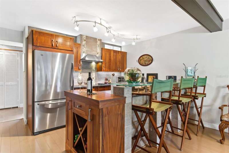 Under contract-accepting backup offers. Discover your gateway to an idyllic waterfront lifestyle in Clearwater Beach. This beautifully renovated townhouse offers 2 bedrooms, 2.5 baths, and a side-by-side 2-car garage with a spacious enclosed bonus room—perfect for a gym, office, or guest retreat. The main level features an open-concept living area with vaulted ceilings, a cozy fireplace, and sliding glass doors that open to a private outdoor deck—ideal for grilling and entertaining in a tropical setting. Enjoy direct access to one of two sparkling community pools just steps away. The updated kitchen includes a versatile bonus nook that can serve as a home office or butler’s pantry, plus a full laundry room with an additional refrigerator and laundry sink. Upstairs, both bedrooms are generous master suites, each with ensuite baths, ample closets, and private balconies for enjoying the coastal breeze. This well-maintained, pet-friendly community offers lawn care, pool maintenance, on-site management, and community boat slips available for rent. With fully funded reserves, recently passed Milestone Inspection, and new roofs installed in 2023, you can enjoy peace of mind and low-maintenance living. Experience the best of Island Estates—lush landscaping, resort-style amenities, and the ultimate Clearwater Beach lifestyle await you at The Village on Island Estates.