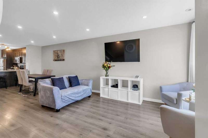 Welcome to the Redstone Community! Whether you're an investor or a first-time homebuyer, this property is an excellent choice. It boasts an abundance of natural light and offers the opportunity to personalize it to your taste. The main floor features an open-concept design with luxury vinyl plank flooring, while the kitchen showcases modern quartz countertops and stainless steel appliances, making it ideal for both cooking and entertaining. On the second floor, you'll find a private master bedroom complete with an en-suite bathroom, providing a cozy retreat. The second bedroom is spacious, with a conveniently located four-piece bathroom just outside for easy access. The fully developed basement includes an additional bedroom, a full bathroom, and a flexible recreational room, perfect for entertaining guests, hosting sleepovers, or setting up a home office or media space. Contact your favorite realtor today to arrange a showing!