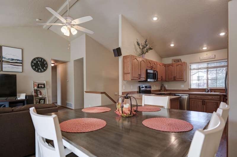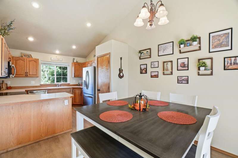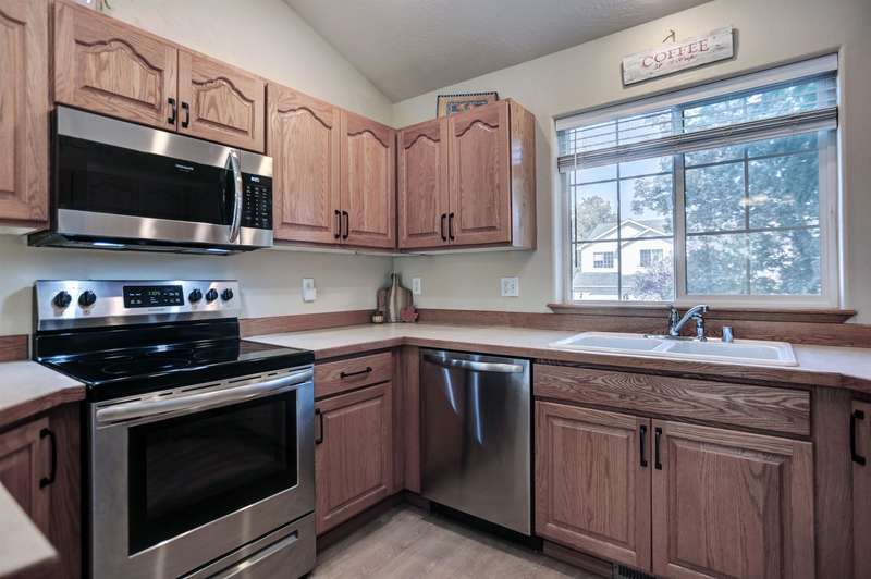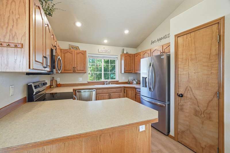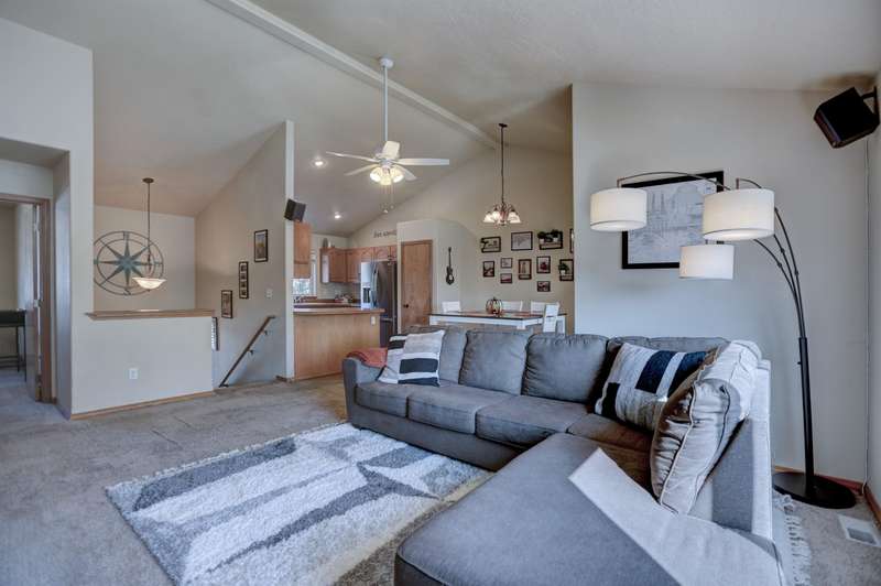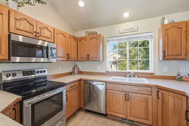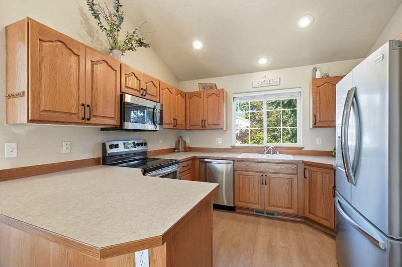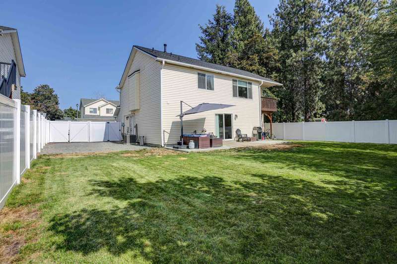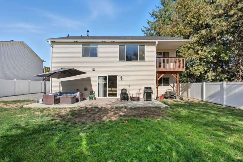 Conveniently located near shopping, dining, outdoor recreation, and other amenities, this well-maintained 4 bed, 3 bath Spokane Valley home offers comfort, style, and thoughtful updates. The home features a new roof and leaf-guard gutters (2024), new stainless steel appliances, and upgraded window blinds throughout. On the main floor you'll find a living area with vaulted ceilings, the kitchen/dining area with a slider to the deck, the primary bedroom with French doors, a walk-in-closet, and bathroom, and 2 additional bedrooms. The lower level includes a bedroom, den, laundry, and a spacious entertaining area with a sliding glass door leading to the expanded concrete patio. A newer vinyl fence adds both privacy and low-maintenance convenience. With modern upgrades inside and out, this home blends functionality with fresh finishes—ready for you to move in and enjoy.