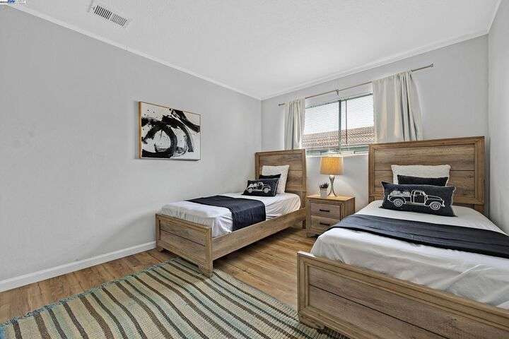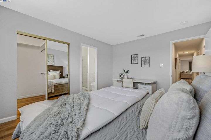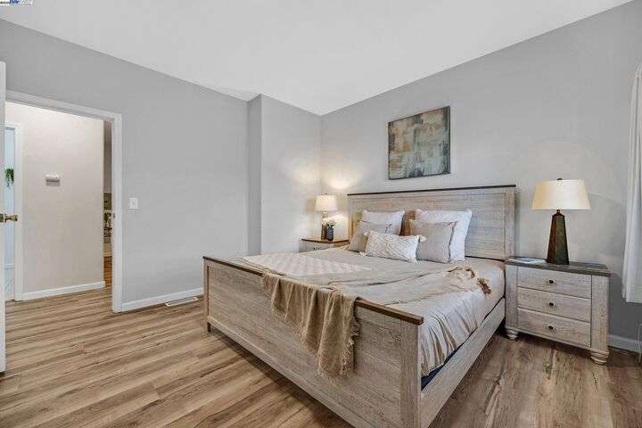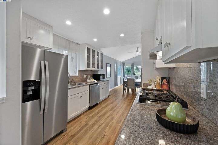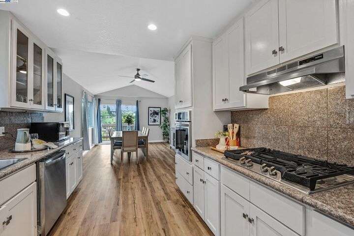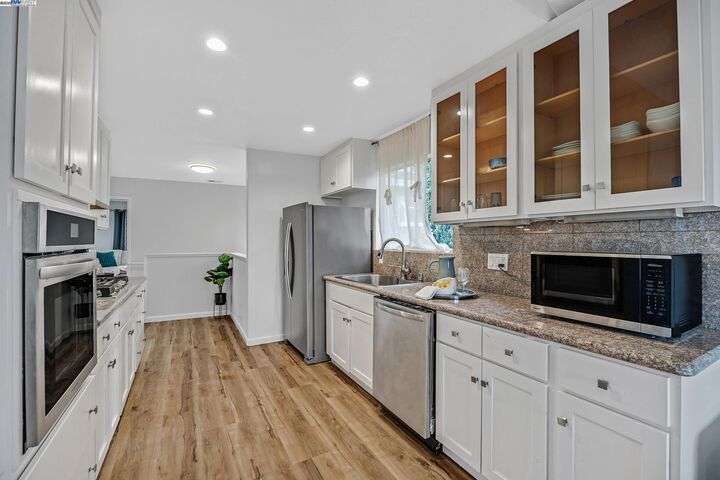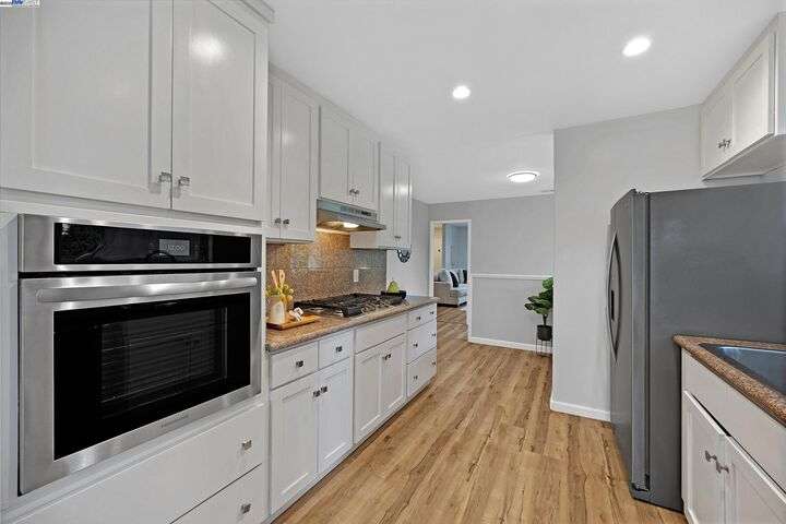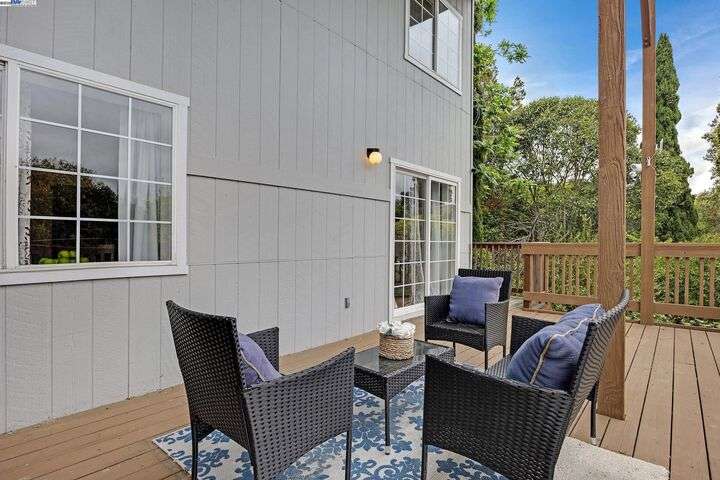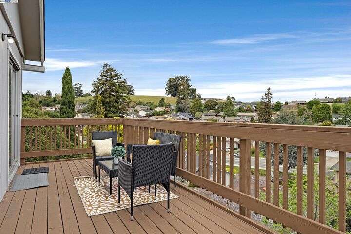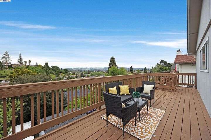 Welcome to this stunning Castro Valley home with breathtaking city views! Step onto your private deck and enjoy the sweeping vistas this desirable neighborhood is known for. The main level features a bright, open living room and kitchen/family combo, two bedrooms, a full bath, and a junior suite with a walk-in closet. A few steps down lead to the spacious primary suite with a walk-in closet and a nearby bonus room ideal for an office or nursery. Recessed lighting and large windows fill the home with natural light. The lower level offers a large recreation room perfect for a home theater, gym, or multi-generational living. Conveniently located near top-rated Castro Valley schools, BART, freeways, shops, restaurants, and Lake Chabot—this home offers comfort, flexibility, and a prime location!