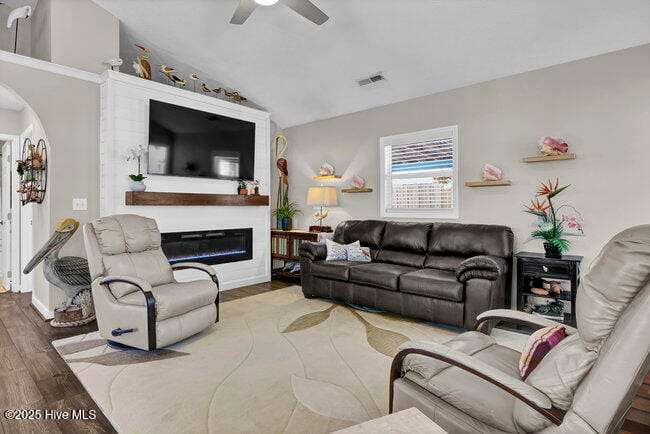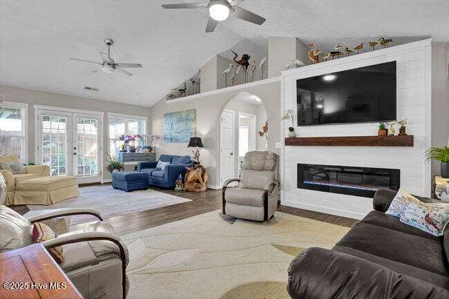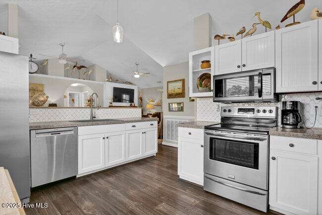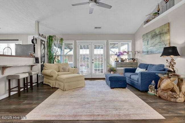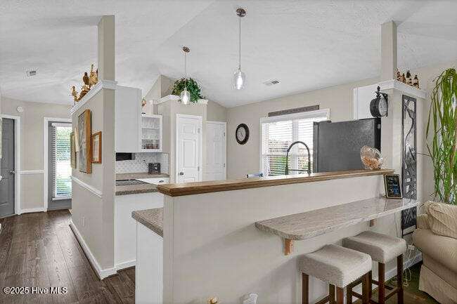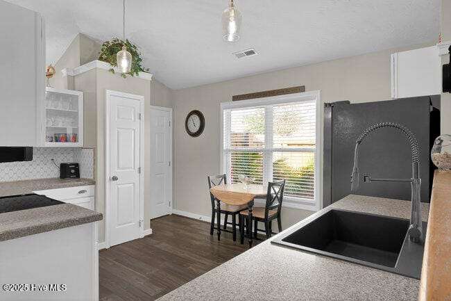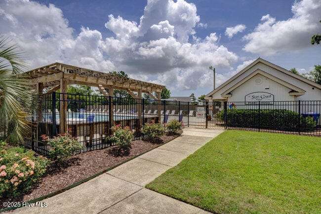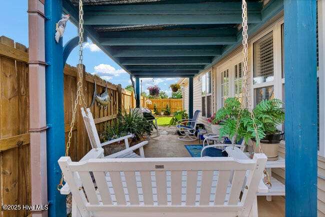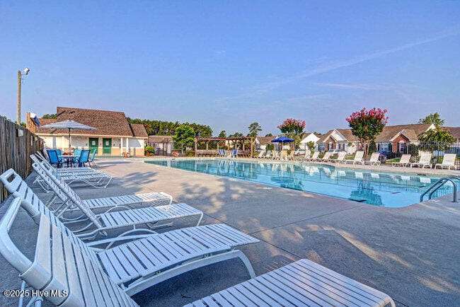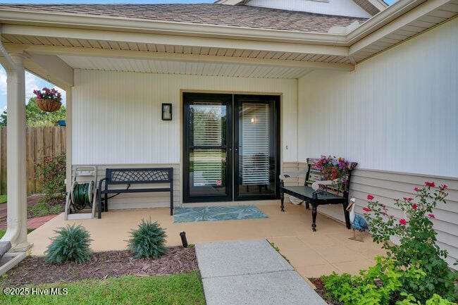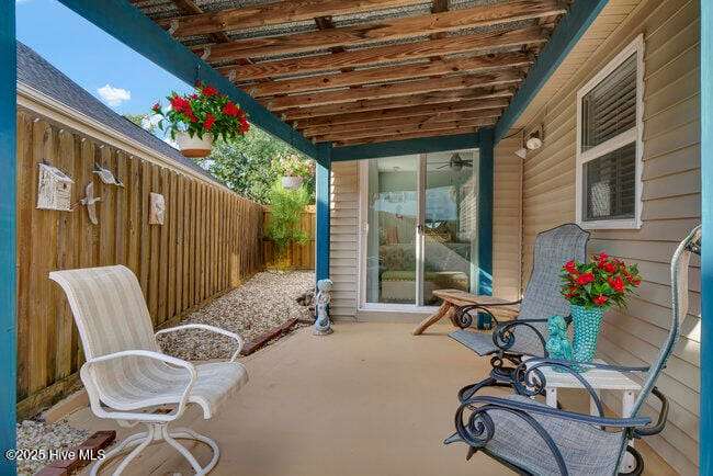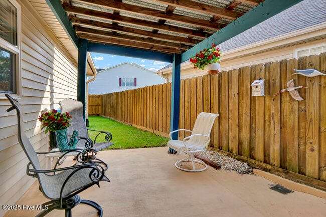 Welcome home to this beautifully updated one-level patio home with an inviting open floor plan and soaring ceilings. Fresh interior paint and easy-care LVP flooring run throughout, with tile in the baths. The kitchen shines with hard-surface countertops, stainless appliances (refrigerator included), abundant cabinetry with glass-front accents for your favorite dishware, and a designer tile backsplash, plus a new breakfast bar perfect for casual dining. The living area is anchored by a stylish electric fireplace with shiplap surround, creating a cozy focal point. The spacious primary suite offers two closets, including a walk-in, and a refreshed bath with granite vanity, shower with seat, and linen closet. A split-bedroom design provides two additional bedrooms, one currently used as an office. Outdoor living is so enjoyable with two covered patios and a freshly power washed and sealed fenced yard. Additional features include a two-car garage with pull down attic access, generator plug-in, roof (2018), HVAC (2019), and water heater (2011). Washer and dryer remain. Ideally located on a corner lot just steps from the neighborhood pool, tennis, and a charming little park with a ''little library.'' across the street. Truly move-in ready!