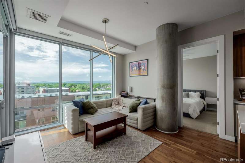 Step into modern elegance in this stylish high-rise condo that combines upscale finishes with everyday comfort. Designed with wood floors and clean architectural lines, this open-concept layout features a bright living space with a private balcony and mountain views. The designer kitchen is outfitted with premium Italkraft cabinetry, quartz counters, and a full suite of stainless steel KitchenAid appliances, complemented by an island - ideal for entertaining or casual meals.The spacious primary suite includes a custom built-in closet system and an elegant en-suite bathroom with double vanities, a soaking tub, and a frameless glass showeroffering a serene retreat. Enjoy your morning coffee or evening unwind on the private balcony, positioned to capture mountain views. In-unit washer and dryer, 2 garage parking spaces plus a personal storage unit add everyday convenience.This residence is part of a WELL-certified community with access to resort-style amenities such as a pool and hot tub, a fully-equipped fitness and wellness center, dry sauna, outdoor kitchen with grills and pizza oven, a reservable guest suite, and tranquil meditation gardens. Bonus features include a pet wash station, EV charging, bike room, and a multi-use gear garage for your outdoor equipment. Live effortlessly in a community where luxury meets lifestyle.