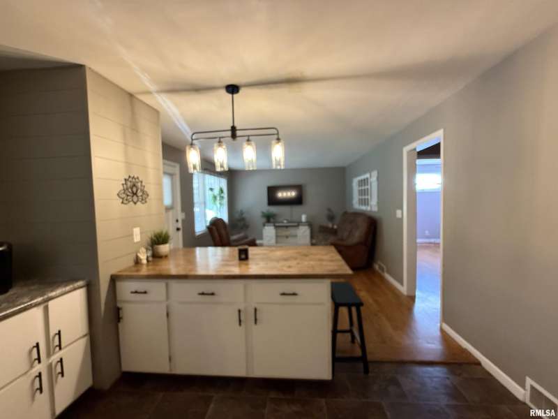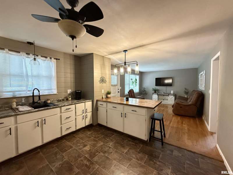 Very cute and cozy! This ranch style home features an open kitchen/living room combo with a breakfast bar. Very tasteful decorating and colors throughout. Stylish and updated kitchen with stove, microwave, refrigerator, all can remain. Two bedrooms on the main level. Family room with vaulted ceiling can serve many purposes. Family room has double doors to the back yard. The yard is fenced in and has patio for your enjoyment. Shed stays. One car attached garage with workshop and extra gravel to the side of the house for additional parking needs. The basement has a large laundry/utility room. A wall has been constructed to be an extra room in the basement, just needs some finishing touches.