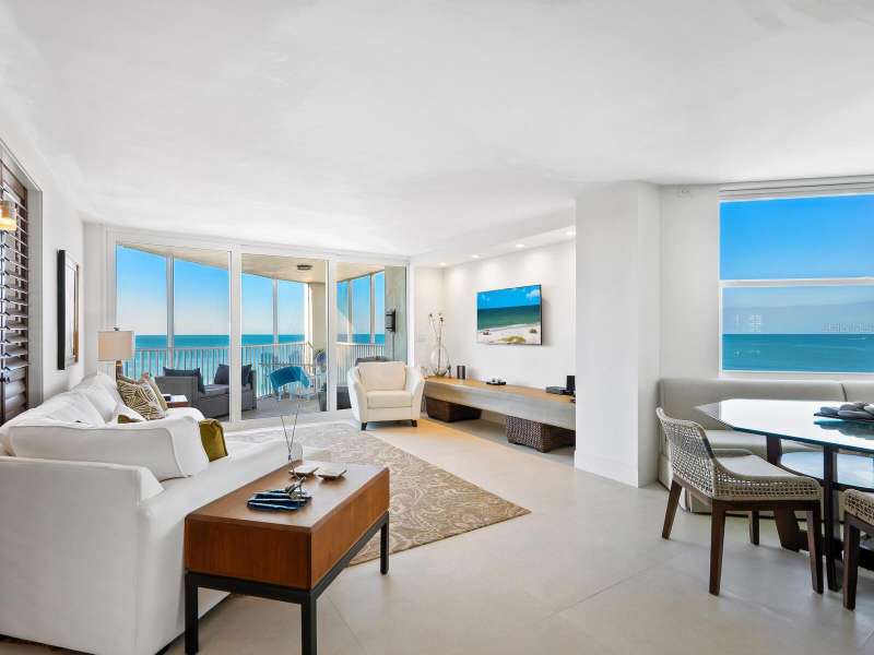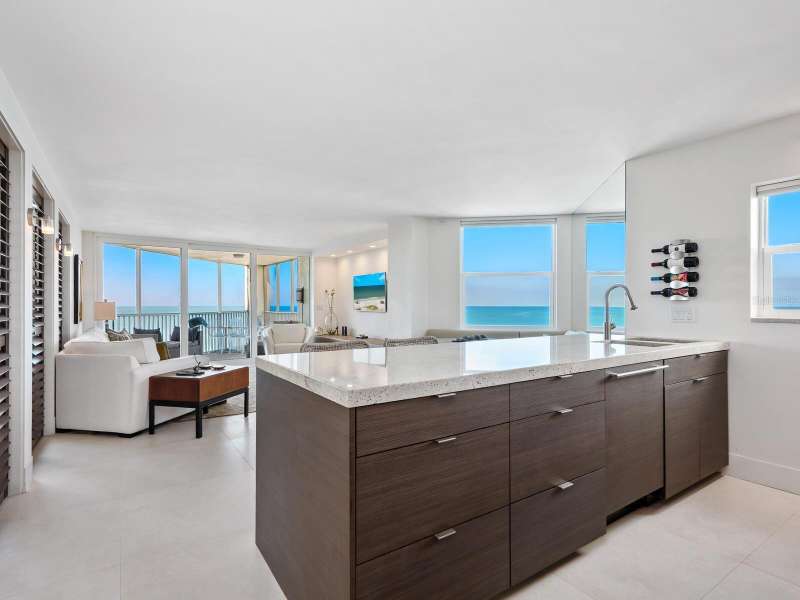 Experience Gulf-front living at its finest on beautiful Lido Key. This turnkey furnished residence offers breathtaking, direct views of the Gulf and unforgettable sunsets from the living room, dining room, balcony, kitchen, guest bedroom, and owner’s suite. Thoughtfully rebuilt throughout, it features hurricane-rated sliders and windows, a modern kitchen with stone countertops and wood cabinetry, and updated bathrooms with stylish finishes. The owner’s suite overlooks the beach and includes a double vanity area for added comfort and a large walk-in shower. Additional highlights include elegant tile flooring, a breakfast bar, and a casual dining area with Gulf views. A secure under-building parking space and exceptional amenities complete the package, including a beachfront pool, clubhouse with kitchen, and 24-hour security. Perfectly situated near world-class shopping, dining, and lively tiki bars, this is the ultimate coastal retreat.