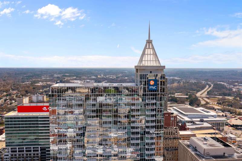 Welcome to this stunning 2-bedroom, 2-bath condo perched on the 31st floor of the iconic PNC Plaza in downtown Raleigh. With South-facing panoramic views of the city skyline, this residence offers a lifestyle as elevated as its vantage point.Step inside to find engineered hardwood floors, fresh paint, and an updated kitchen designed for both style and function. A dedicated laundry room adds convenience.This home makes city life effortless. With 24-hour security and a lock-and-go lifestyle, you'll enjoy peace of mind while taking full advantage of the vibrant scene outside your door?restaurants, coffee shops, parks, and nightlife are just steps away.PNC Plaza's resort-style amenities include a rooftop pool, fire pit and grill stations, a clubhouse, theater room, and a fully equipped exercise facility. Internet and cable are included in your HOA fees for added value.The unit also comes with two secure, gated parking spaces and a private storage unit.Experience unmatched convenience, luxury, and views from one of Raleigh's most prestigious addresses.