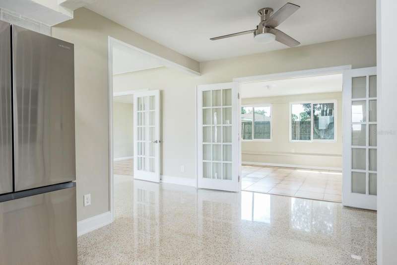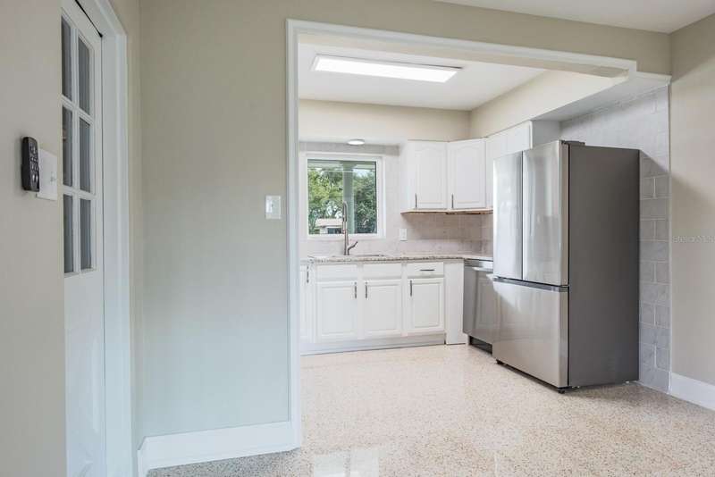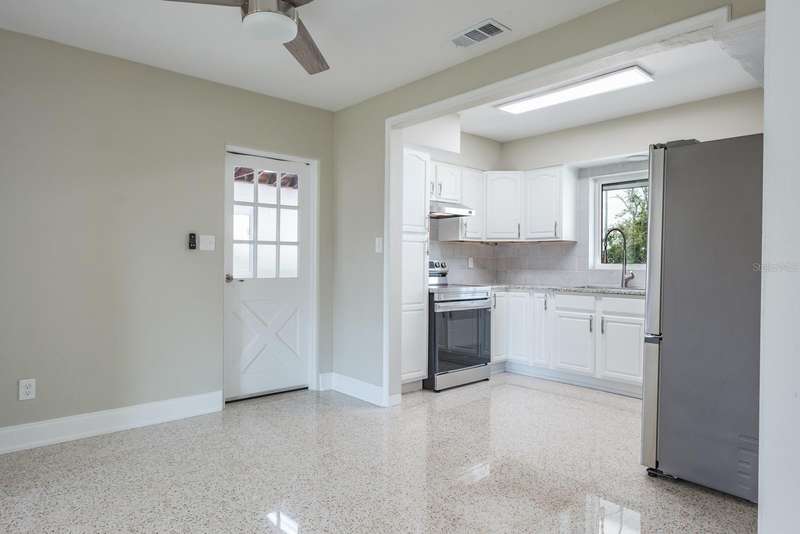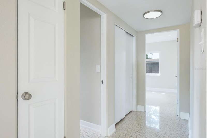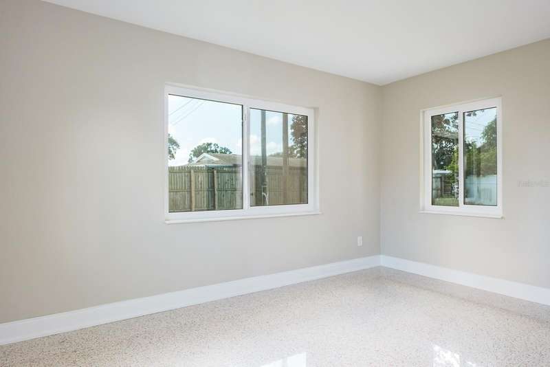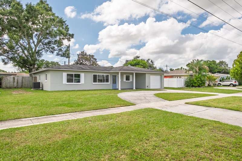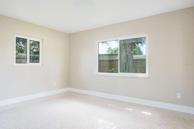 Centrally located in St. Petersburg, this Mid-Century Florida block home is a true Charmer! Featuring a spacious floor plan with 2 bedrooms, 1 bathroom and 1 car garage this home is waiting for you to move right in! Step inside to a large living space overflowing with tons of natural light, cove ceilings and beautiful Terrazzo floors. Lots of updates including hurricane-rated windows, new A/C(2025) and Water Heater(2024), newly polished Terrazzo floors, new baseboard/window trim & crown molding, interior/exterior paint, Washer/Dryer(2023-Included) and more! The kitchen has been upgraded with new Granite counter tops and Stainless-Steel appliances. The expansive sunroom is perfect for a second living space, office or even made into a 3rd bedroom. The bathroom has a new vanity with granite countertop and shower/tub combo. The large backyard has a private patio and offers many possibilities and even has space for a pool! This home’s great location offers so much from shopping to easy access to I-275 and Tampa. Tyrone Square Mall, restaurants and Downtown St Pete are all close! Located in a Non-Flood Zone too! Don’t miss the best opportunity to buy your dream home or to build it right here!