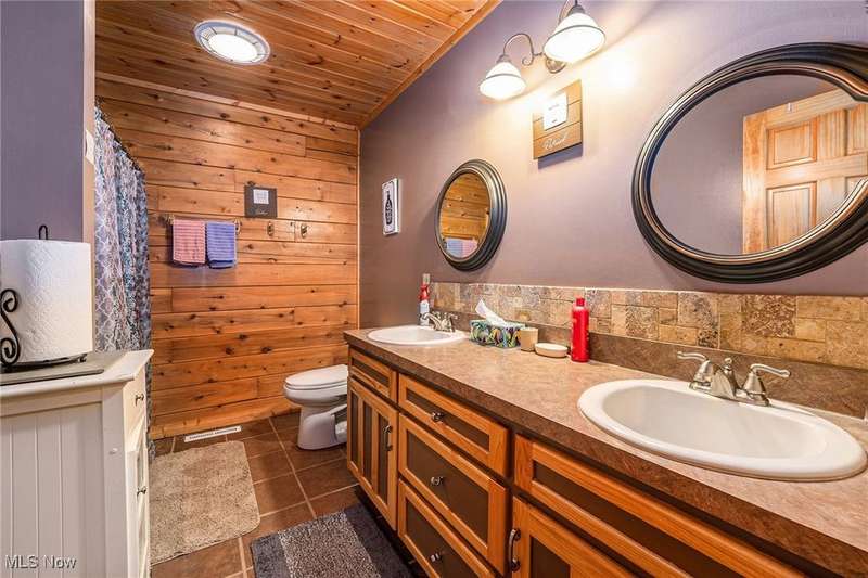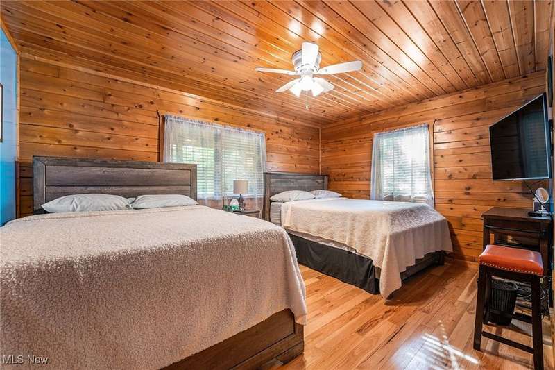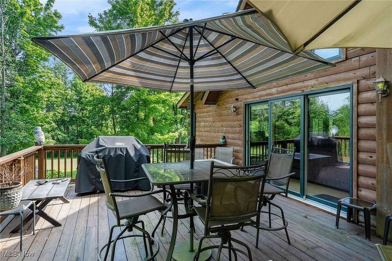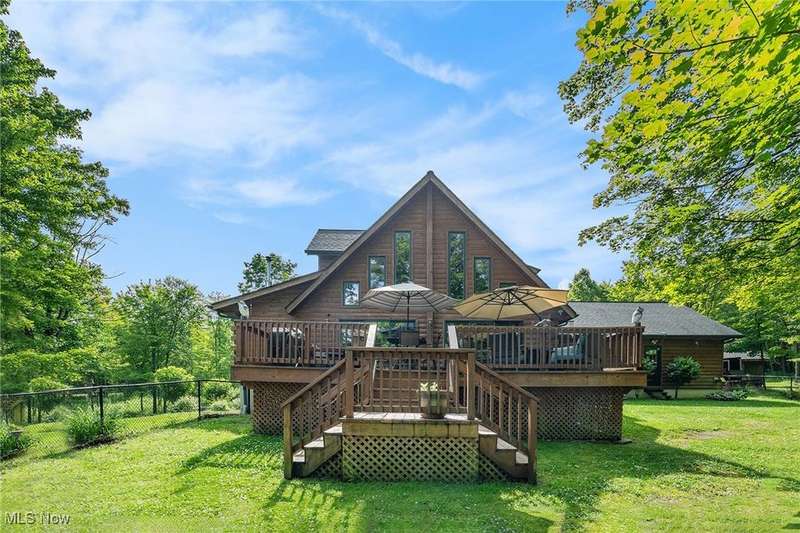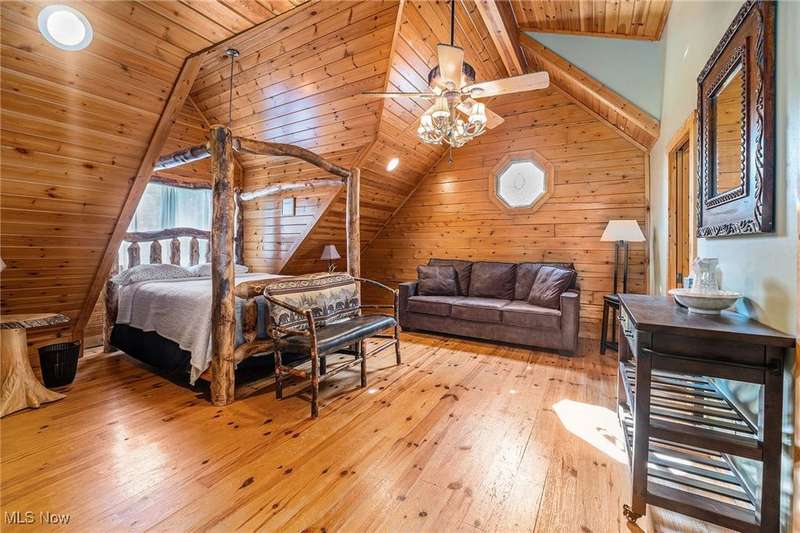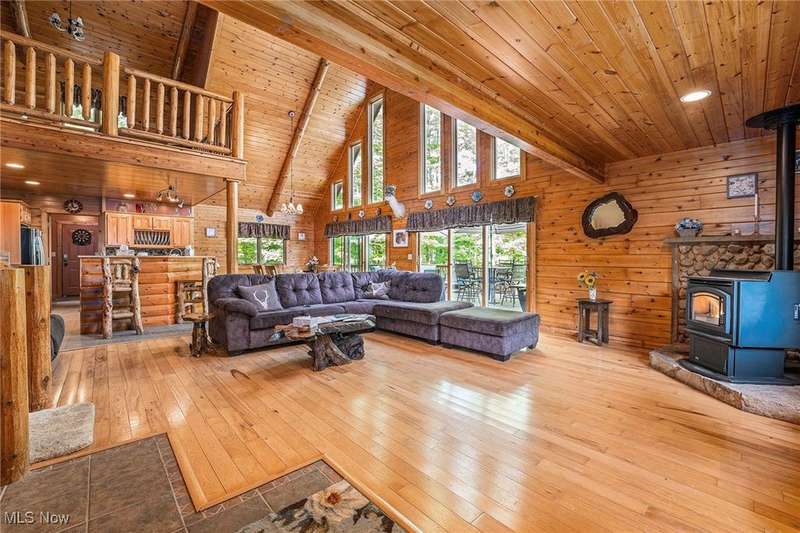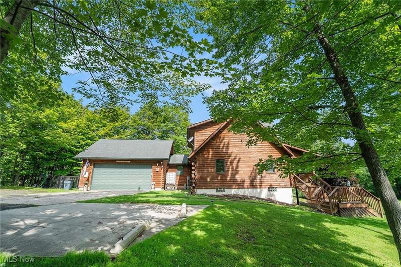 Nestled on 5+ semi-secluded Acres, this charming log cabin offers the perfect blend of rustic comfort & modern convenience. With 3 spacious Bedrooms & 3 full Baths, it's ideal for families, retreats, or as a successful Airbnb. The open-concept main level features a vaulted Living Rm & Kitchen combo, filled with natural light & perfect for entertaining. The fully finished walk-out Basement, offers the amenity of a Sauna, Rec Room plus great Bonus spaces & adds valuable living space while a whole-house generator ensures year-round peace of mind. Step outside to a large rear Deck overlooking the peaceful grounds. Includes a 2-car attached Garage, 24'x20' detached Barn & an 8x10 shed for extra storage. Enjoy the serene Pond, gather around the Fire Pit, relax in the Hot Tub, or take in the scenery from the lg covered front & side Porch. Mix of asphalt & concrete Driveway offers easy access & ample parking. With 200-amp electrical service & thoughtful features throughout, this cabin is full of rustic charm. Whether you're seeking a private residence, weekend escape or turnkey rental, this property is a rare find.