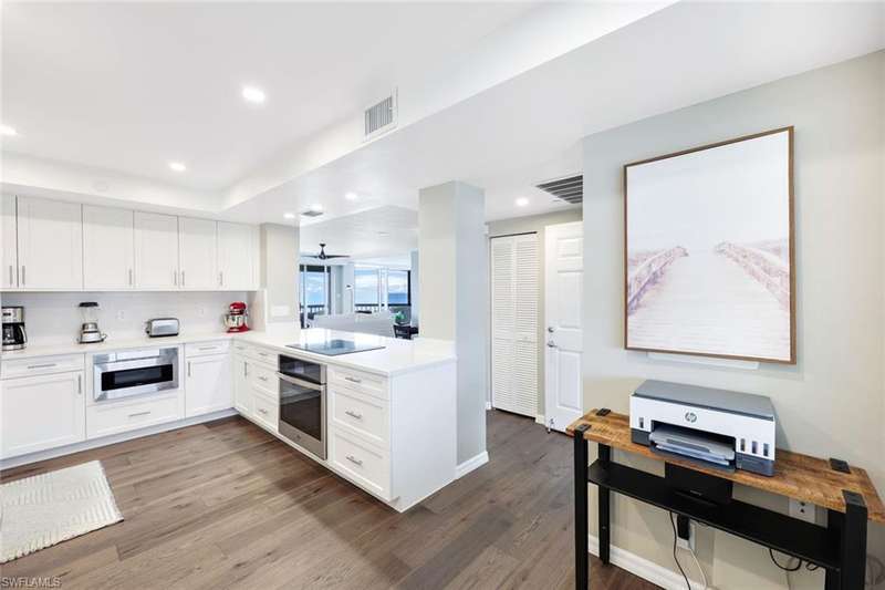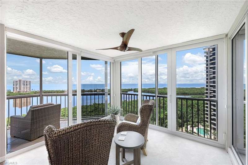 Soak in the gorgeous views of Clam Pass and the Gulf of Mexico from this 12th floor St. Tropez 2 Bed plus sunroom /2 Bath condo in Pelican Bay. Beautiful Naples sunsets from your large lanai are followed by the sparkling lights of the city after dark. This meticulously cared for home has NEW wood floors, NEW designer furnishings, and a NEW kitchen renovation! St. Tropez offers its residents a pool/spa, fitness room, tennis court, social room with library, secure entry, and bicycle storage. The tram is conveniently located out your back door. Artis-Naples, fine dining, and The Waterside Shops are also in close proximi