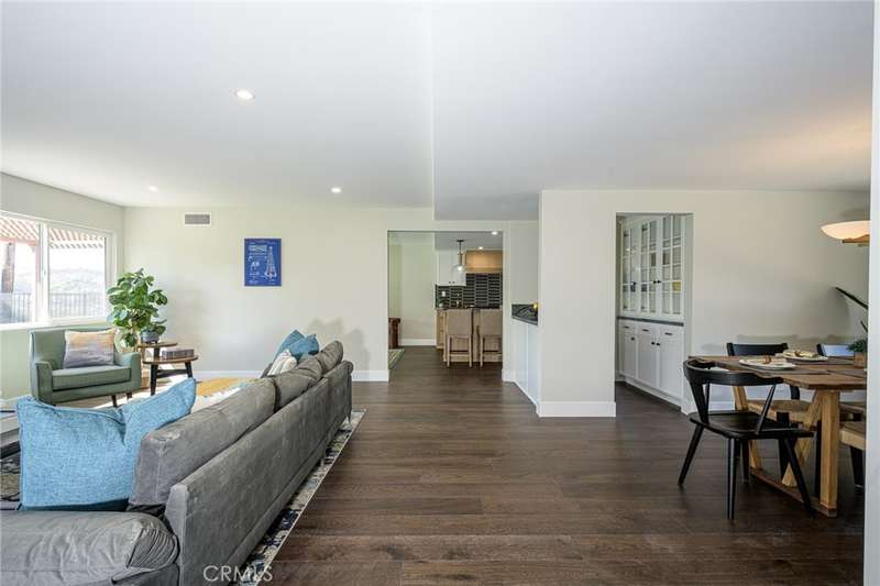 Beautifully UPDATED 5 bedroom, 3 bathroom home with stunning mountain and hill views in a desirable Hacienda Heights neighborhood. This home sits at the end of a cul-de-sac street with approximately 2441 sf of living space with an open concept living space. The kitchen has new custom two-tone cabinets, full tile backsplash, sleek new counter tops, new fixtures, stainless steel appliances, a large center island offering additional counter space and seating and a large walk-in pantry with an abundance of storage space. The bar space is great for hosting with a built-in wine fridge, wet bar area and built-in display cabinet. Downstairs you will find a living room with a decorative fireplace, dining room, kitchen, a den area that leads to one of the backyard patios, 3 bedrooms and 2 bathrooms. The primary bedroom is spacious with an ensuite bathroom, walk-in closet with custom built-ins, mountain views and sliding door that leads to another outdoor patio. Upstairs there are two additional bedrooms, both with mountain views and an additional bathroom. All the bathrooms have been upgraded with custom tile work, new fixtures and vanities. Other features include freshly painted interior and exterior, energy efficient windows and sliding doors, new interior doors, luxury flooring throughout the living areas and bedrooms, stylish plumbing and lighting fixtures, HVAC, and direct access to the two-car garage. The enclosed backyard is perfect for entertainment with stunning views, two patio areas and landscaped with new sod. This home is conveniently located and just a short distance to award winning schools, the world-renowned Hsi Lai Temple, shopping and restaurants, and local freeways.