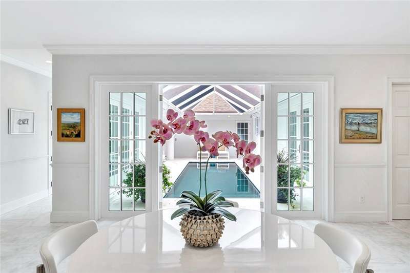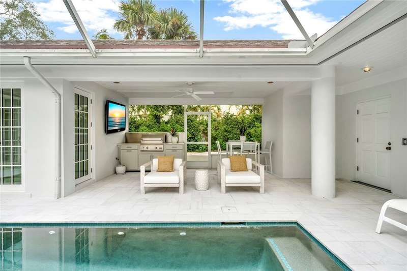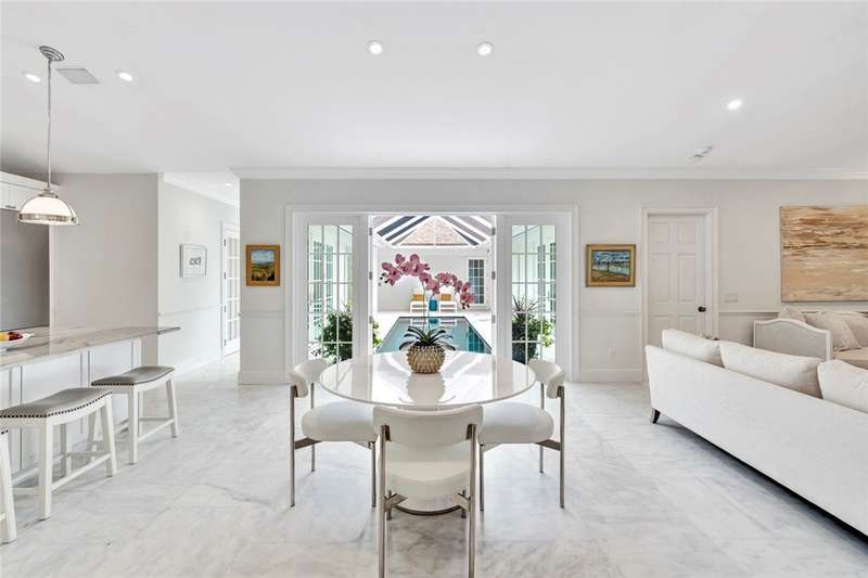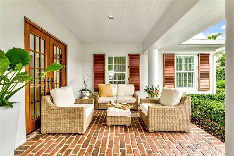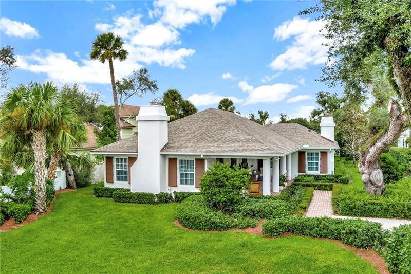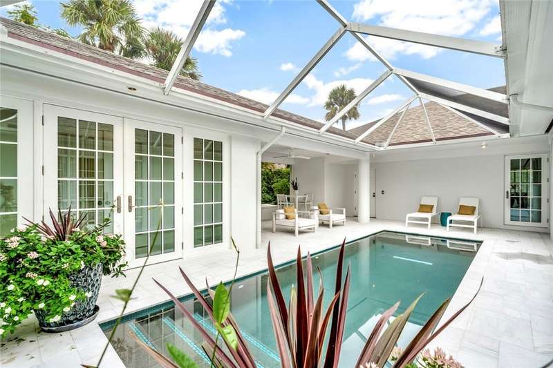 Charleston Square jewel box in the heart of Old Riomar, just steps from Quail Valley River Club & Riomar CC. An expansive Chicago brick front porch welcomes you to this 2BR/3.5BA home centered around a private courtyard atrium pool on a lush 0.37-acre lot. Features Carrera marble floors throughout, open eat-in kitchen/family room, formal living/dining with fireplace, luxe primary suite with dual spa-like baths, guest room with private entry, office/laundry, summer kitchen and rear entry 2-car garage. Offered turnkey with exclusions- newer roof, updated mechanicals and impact glass.