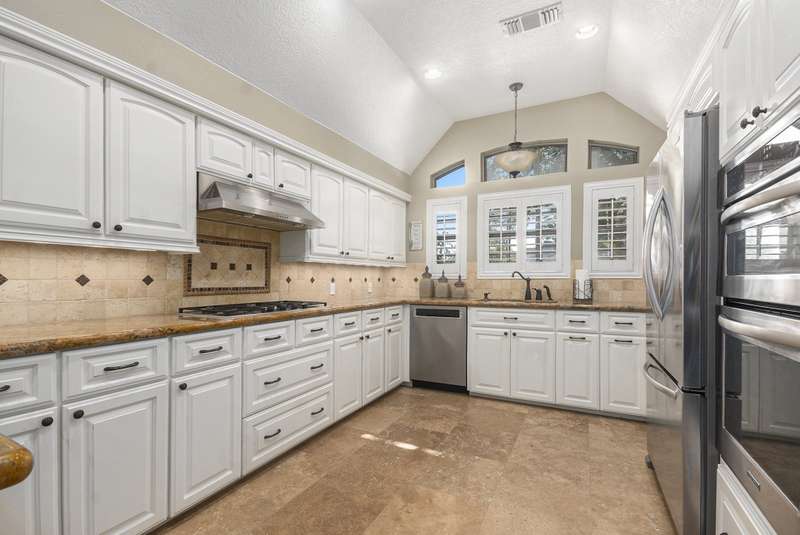 Welcome home to this beautifully updated property located in the prestigious La Reforma community. This spacious home features a new roof (2020), new pool heater, fresh pool resurfacing, new upstairs carpet, fresh interior paint throughout and two AC condensers for added comfort and efficiency. Enjoy the large backyard oasis with a sparkling pool and hot tub, on over one-third of an acre, perfect for entertaining with an outdoor kitchen complete with sink, abundant counter space, and a Blackstone grill included. The primary suite is conveniently located downstairs, while upstairs offers a spacious game room, three additional bedrooms, and a full bath with double sinks. The home features granite countertops throughout, travertine floors on the main level, and plantation shutters in every room. A detached garage, storage shed, and greenhouse add even more versatility to this amazing property. Experience everything you’ve been looking for. Your dream home awaits!