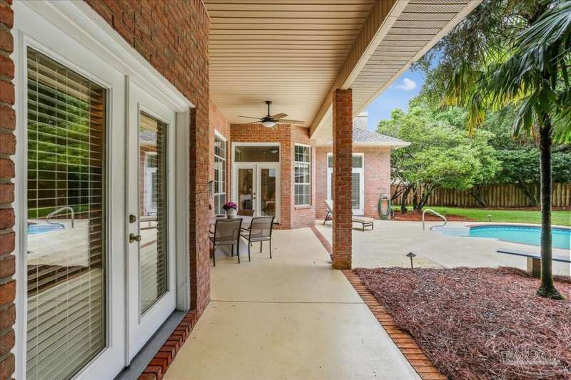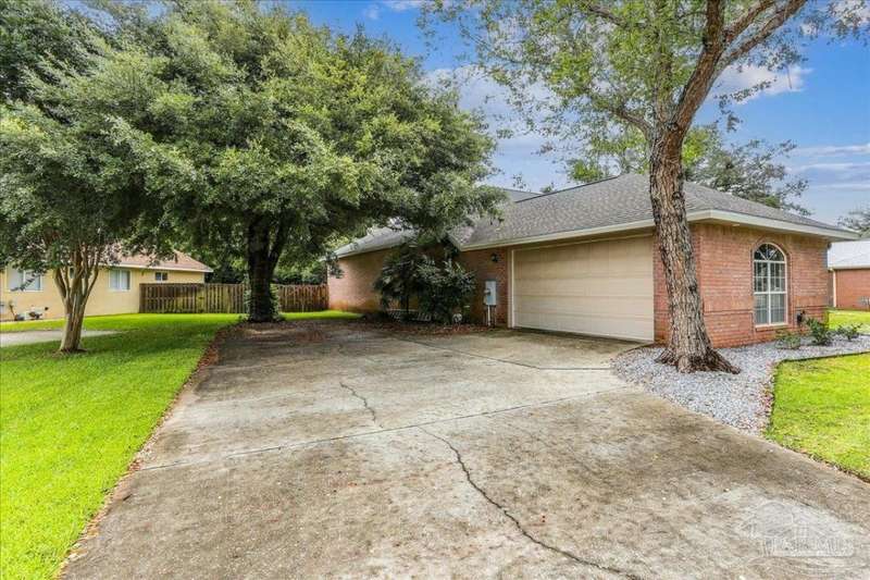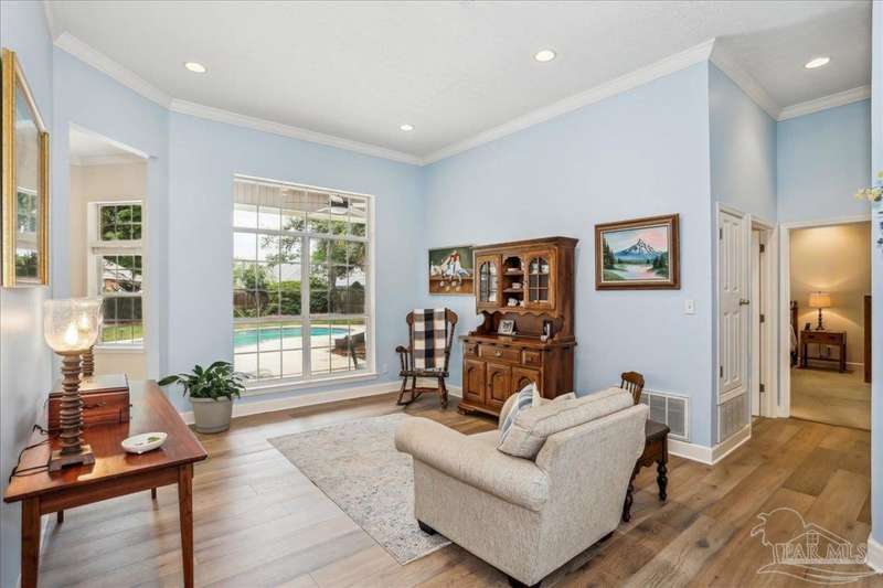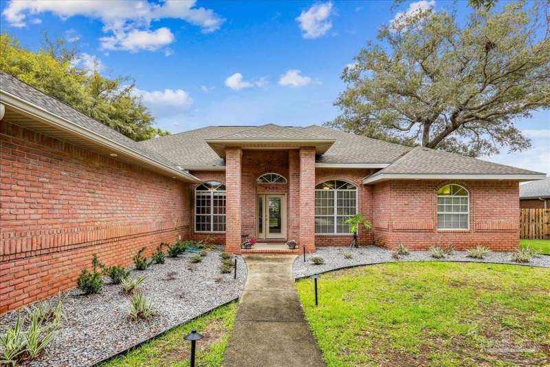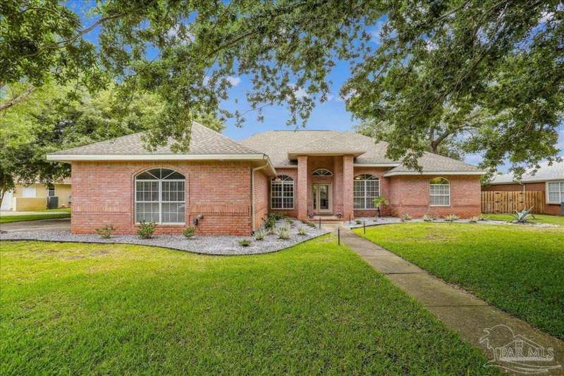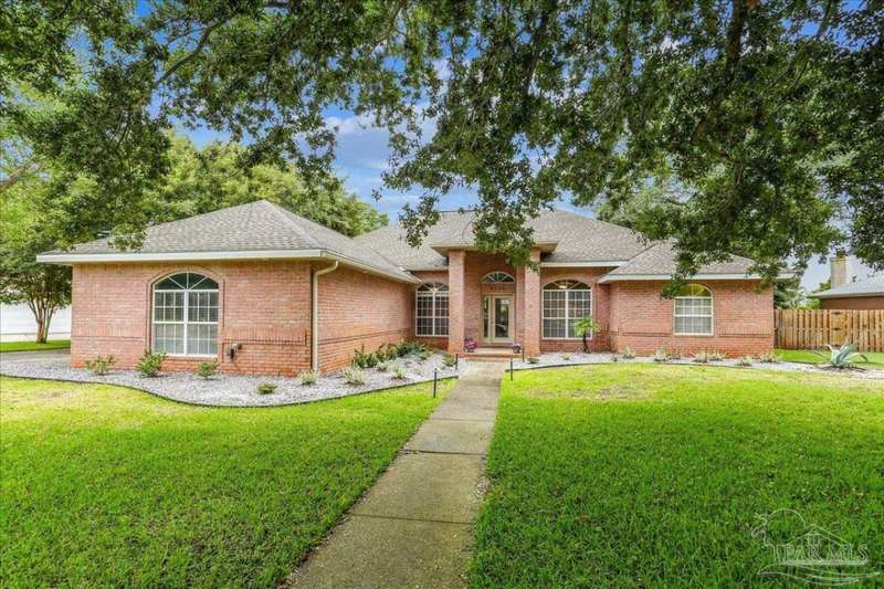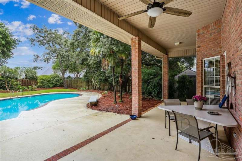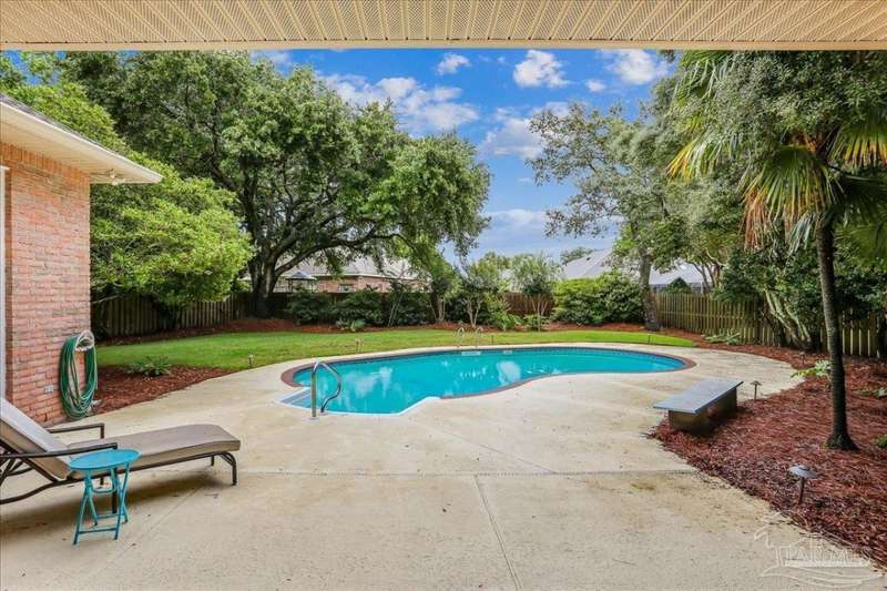 Welcome to this beautifully maintained 4-bedroom, 3-bath home located in the sought-after Grand Pointe community of Gulf Breeze. Designed with both comfort and functionality in mind, this residence features soaring ceilings and abundant natural light throughout. The open-concept living room seamlessly connects to a private patio and sparkling inground pool-also accessible from the luxurious primary suite and a conveniently located third bathroom, perfect for entertaining or relaxing after a swim. The oversized primary suite offers a tranquil retreat with a spacious ensuite bath, double vanities, and generous closet space. Mature landscaping surrounds the property, complemented by a privacy fence for added seclusion and peace of mind. Don't miss this opportunity to own a piece of paradise in one of Gulf Breeze's most desirable neighborhoods!