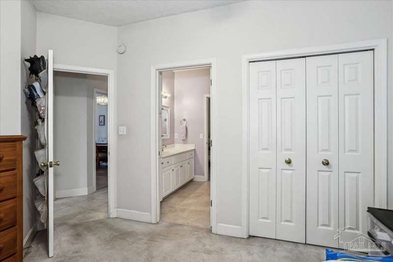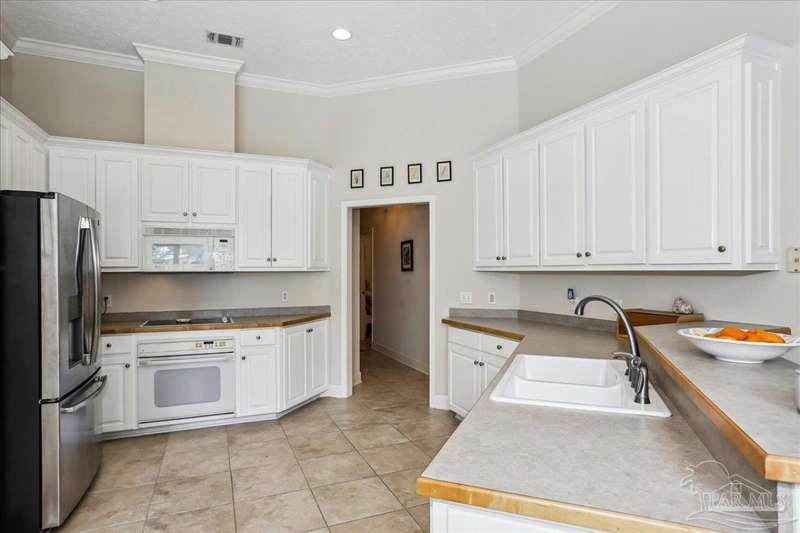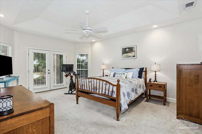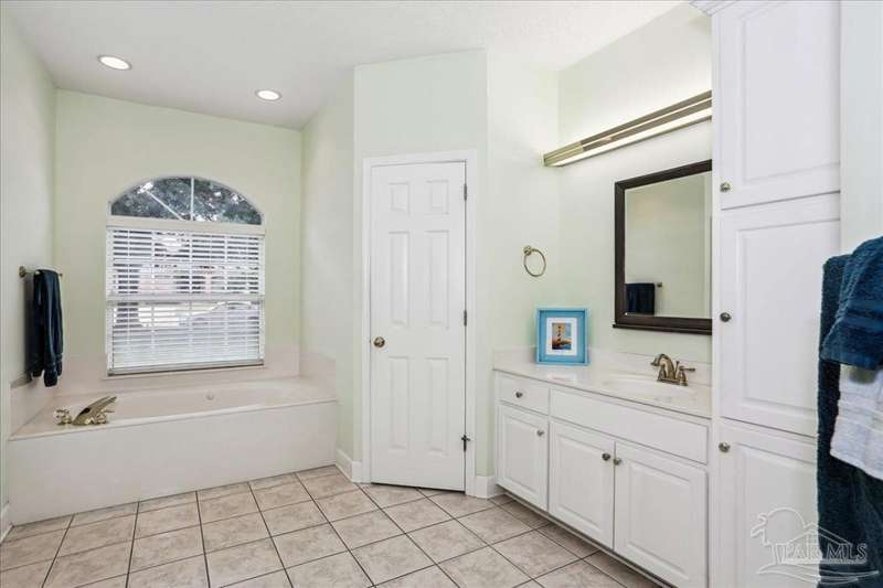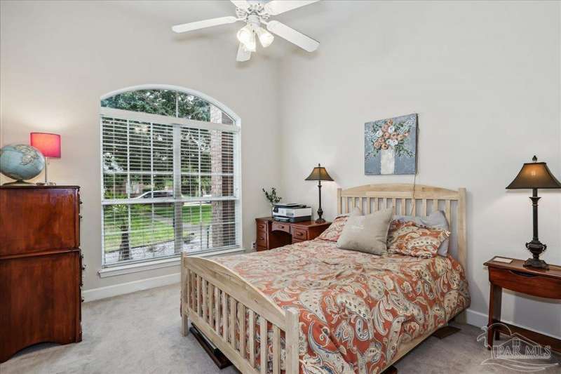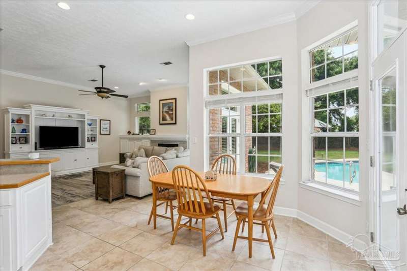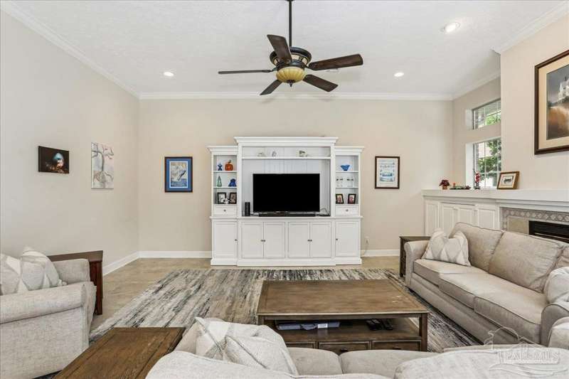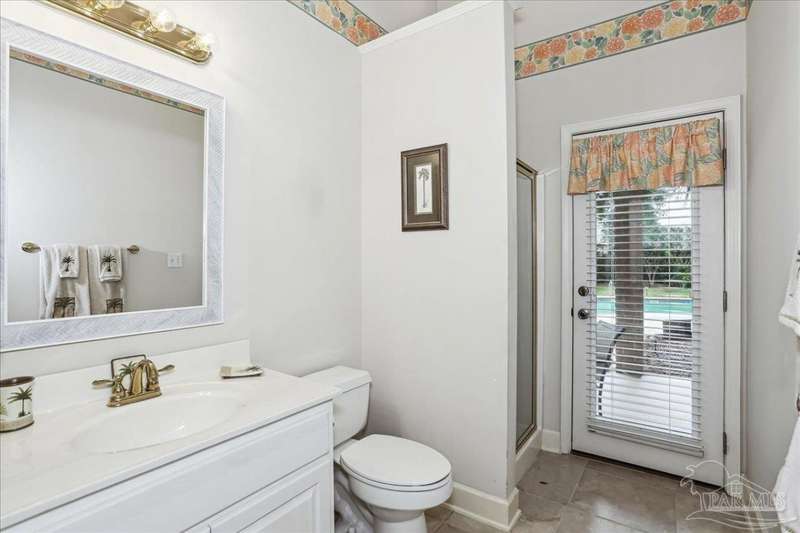 Welcome to this beautifully maintained 4-bedroom, 3-bath home located in the sought-after Grand Pointe community of Gulf Breeze. Designed with both comfort and functionality in mind, this residence features soaring ceilings and abundant natural light throughout. The open-concept living room seamlessly connects to a private patio and sparkling inground pool-also accessible from the luxurious primary suite and a conveniently located third bathroom, perfect for entertaining or relaxing after a swim. The oversized primary suite offers a tranquil retreat with a spacious ensuite bath, double vanities, and generous closet space. Mature landscaping surrounds the property, complemented by a privacy fence for added seclusion and peace of mind. Don't miss this opportunity to own a piece of paradise in one of Gulf Breeze's most desirable neighborhoods!