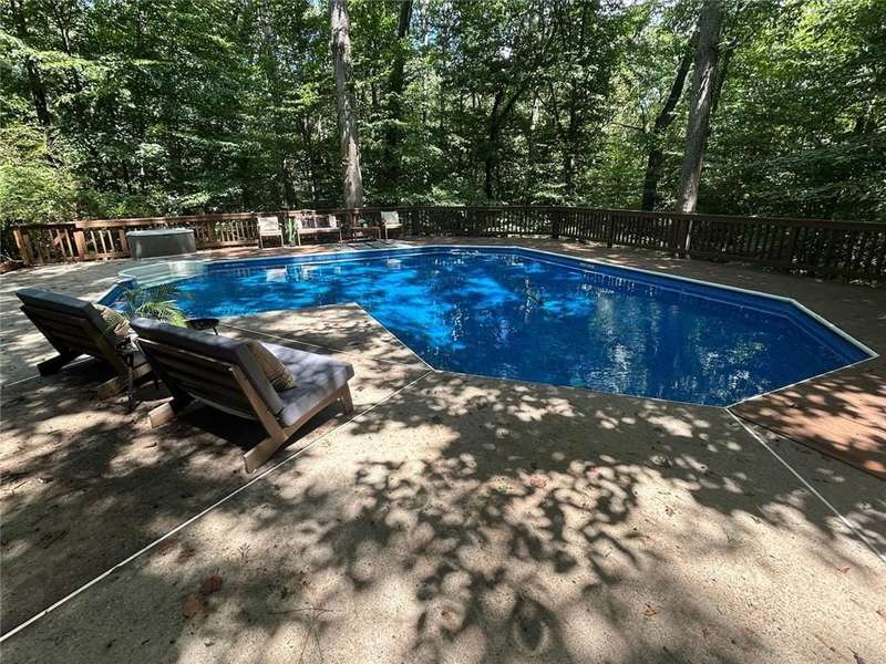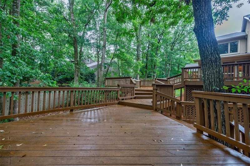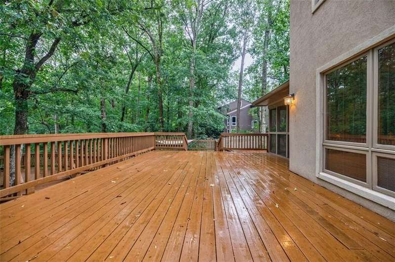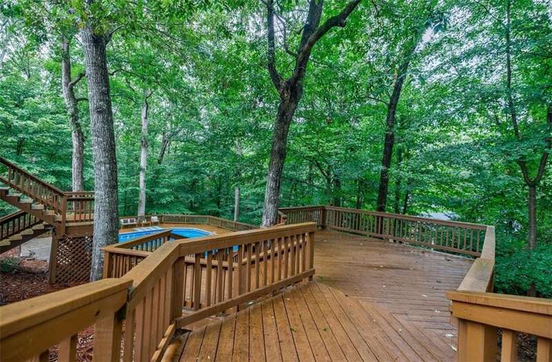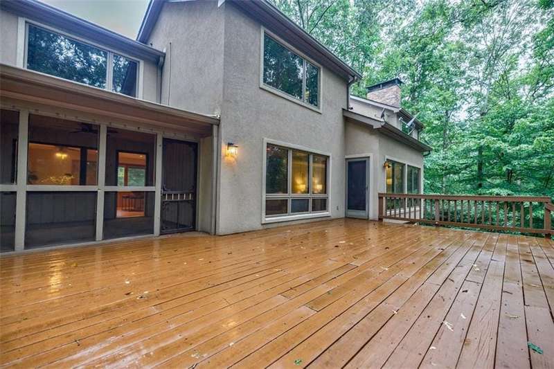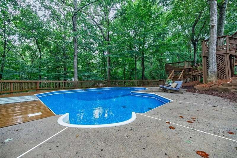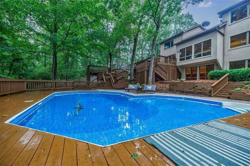 Tucked away on a quiet cul-de-sac in Sandy Springs, this spacious 5-bedroom, 4-bath contemporary home on a wooded 1 acre-plus lot offers privacy, plus easy access to Georgia 400 and I-285. The architect who designed the house focused on functionality and ease of access across all three levels, providing privacy and personal space for all, plus including large kitchen, dining and gathering areas. The main floor features a dining room that can seat 12 if desired, plus a large, comfortable living room with windows overlooking the pool, patio, decks and wooded yard. The oversized kitchen has top-tier appliances and lots of storage space with an eat-in kitchen area and opens to a screened porch for relaxation and eating. Also on the main floor, youll find a bedroom and a bathroom, and a separate seating area that also faces the backyard. Upstairs there is a huge primary suite, with two walk-in closets and en-suite bathroom. Outside the primary suite is a seating, reading and relaxation area. In addition upstairs there are three other bedrooms and a bathroom, plus a convenient laundry room. Another feature of this home is a finished basement with a bar area with wine cooler, dishwasher and refrigerator. There is also a room with adjoining bathroom that can serve as a bedroom or bonus room for craft space, office, exercise equipment or other use. From the basement, you can walk directly out to the pool, deck and patio area. There are also two storage rooms in the basement. The two-car garage includes a large pantry-style closet with plenty of shelving for storage, plus a room along the back of the garage wall for a workshop or more storage. The front yard is well-maintained with mature vegetation, and there are woods on one side of the lot and below the pool to the property line. The windows are double-paned, and the asphalt driveway and extra parking spaces were recently resurfaced and re-sealed. The roof is three years old, and the new electrical panel was installed in August 2025. The home is in Saddleridge, a long-established neighborhood of 51 homes over 75 acres; each home occupies at least one acre. There is a voluntary HOA which maintains the two-cul-de-sacs and the subdivision front entrance, plus holds casual get-togethers each year for residents. The original owners were among the first residents of the neighborhood and raised 5 children there, with the creative home design providing privacy and a spot for everyone. For fans of the Atlanta Braves, former Braves All-Star third baseman Bob Horner lived across the street and would provide a bus to take neighborhood residents to home games on occasion. The owners took terrific care of the house and it has been well-maintained. It features wood trim and special touches and storage and living space that is exceptional.