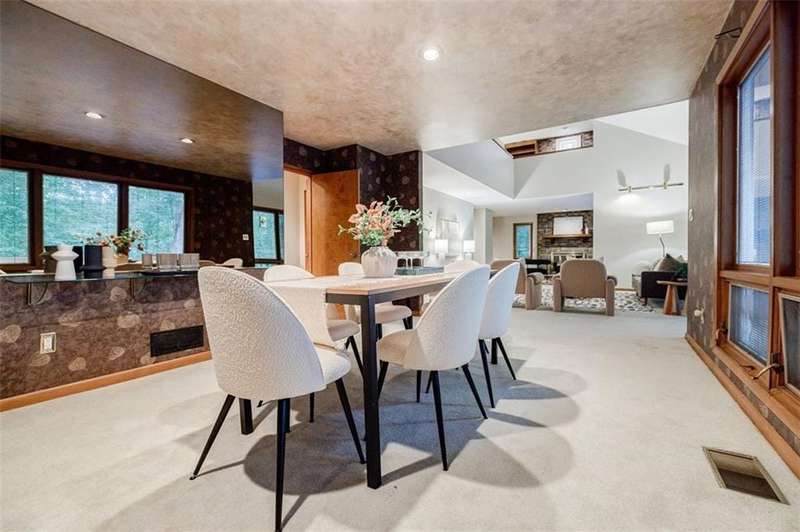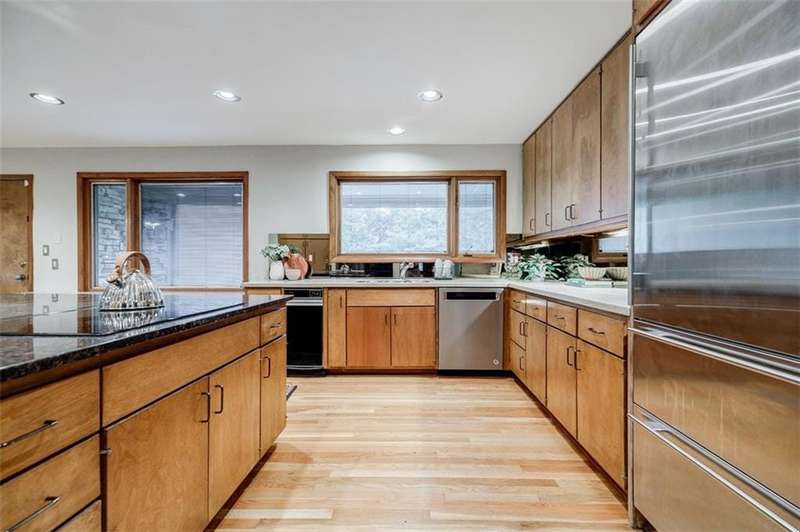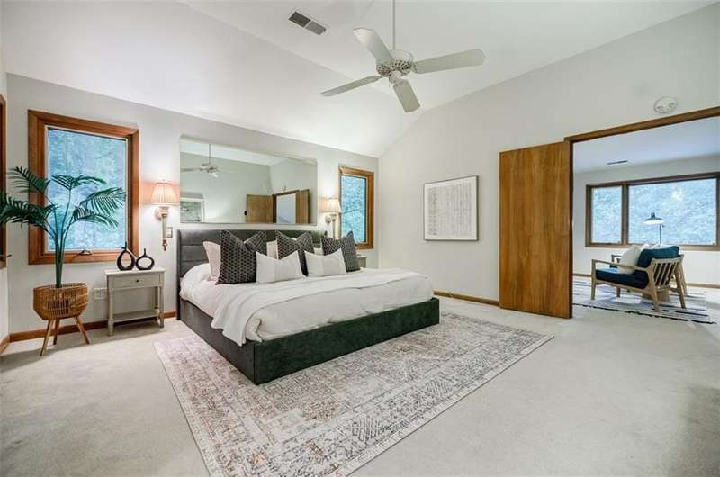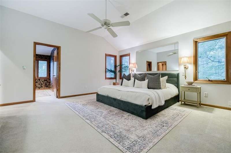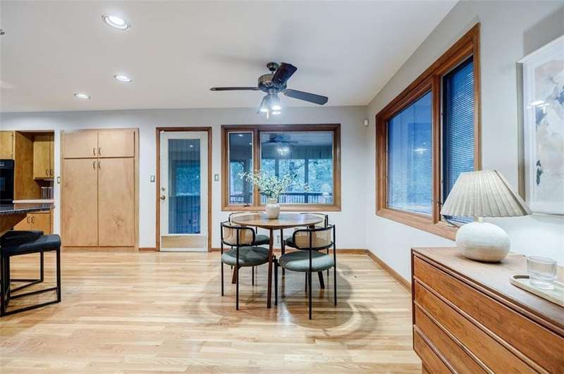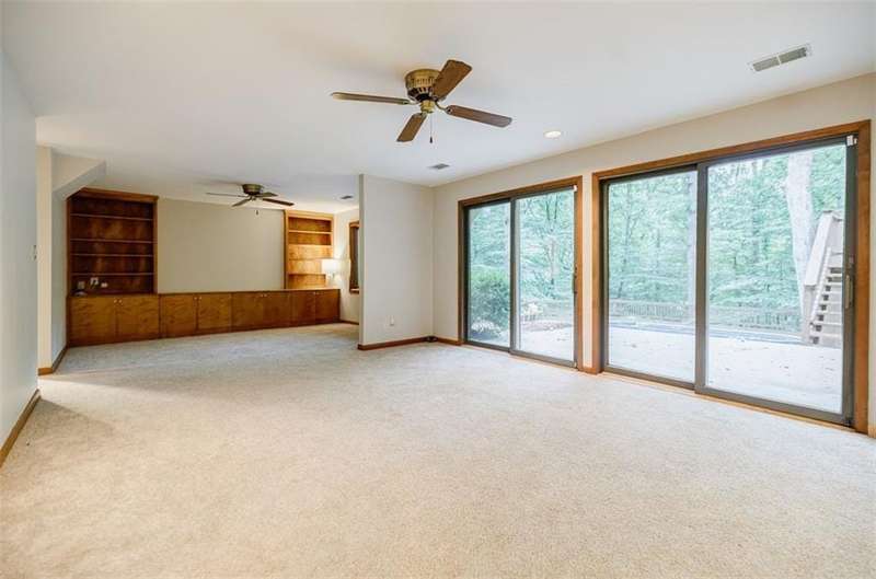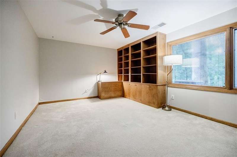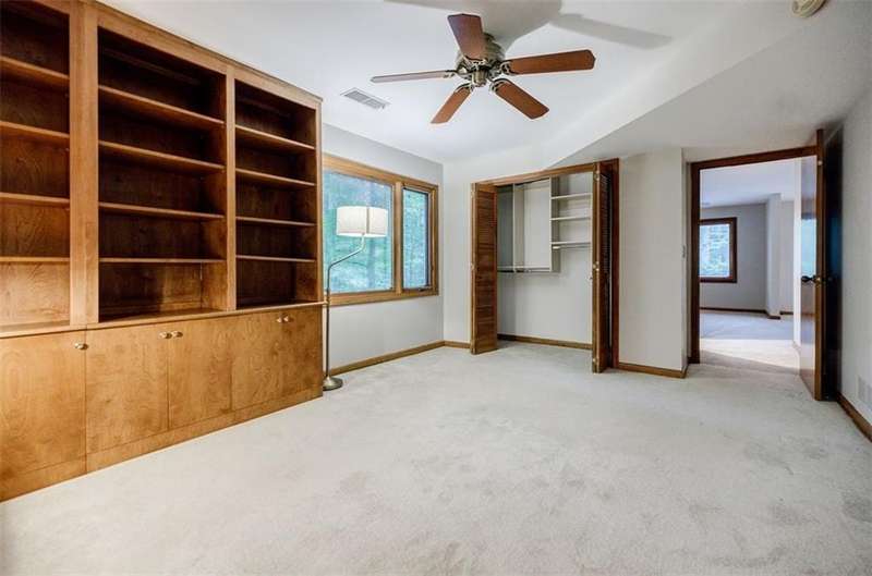 Tucked away on a quiet cul-de-sac in Sandy Springs, this spacious 5-bedroom, 4-bath contemporary home on a wooded 1 acre-plus lot offers privacy, plus easy access to Georgia 400 and I-285. The architect who designed the house focused on functionality and ease of access across all three levels, providing privacy and personal space for all, plus including large kitchen, dining and gathering areas. The main floor features a dining room that can seat 12 if desired, plus a large, comfortable living room with windows overlooking the pool, patio, decks and wooded yard. The oversized kitchen has top-tier appliances and lots of storage space with an eat-in kitchen area and opens to a screened porch for relaxation and eating. Also on the main floor, youll find a bedroom and a bathroom, and a separate seating area that also faces the backyard. Upstairs there is a huge primary suite, with two walk-in closets and en-suite bathroom. Outside the primary suite is a seating, reading and relaxation area. In addition upstairs there are three other bedrooms and a bathroom, plus a convenient laundry room. Another feature of this home is a finished basement with a bar area with wine cooler, dishwasher and refrigerator. There is also a room with adjoining bathroom that can serve as a bedroom or bonus room for craft space, office, exercise equipment or other use. From the basement, you can walk directly out to the pool, deck and patio area. There are also two storage rooms in the basement. The two-car garage includes a large pantry-style closet with plenty of shelving for storage, plus a room along the back of the garage wall for a workshop or more storage. The front yard is well-maintained with mature vegetation, and there are woods on one side of the lot and below the pool to the property line. The windows are double-paned, and the asphalt driveway and extra parking spaces were recently resurfaced and re-sealed. The roof is three years old, and the new electrical panel was installed in August 2025. The home is in Saddleridge, a long-established neighborhood of 51 homes over 75 acres; each home occupies at least one acre. There is a voluntary HOA which maintains the two-cul-de-sacs and the subdivision front entrance, plus holds casual get-togethers each year for residents. The original owners were among the first residents of the neighborhood and raised 5 children there, with the creative home design providing privacy and a spot for everyone. For fans of the Atlanta Braves, former Braves All-Star third baseman Bob Horner lived across the street and would provide a bus to take neighborhood residents to home games on occasion. The owners took terrific care of the house and it has been well-maintained. It features wood trim and special touches and storage and living space that is exceptional.