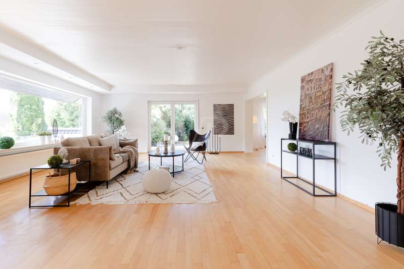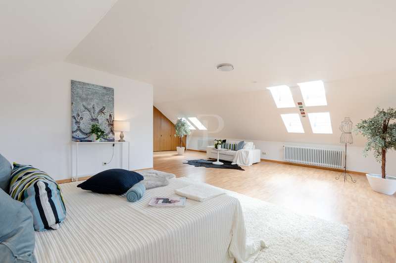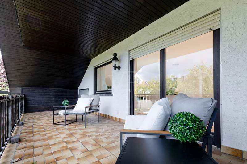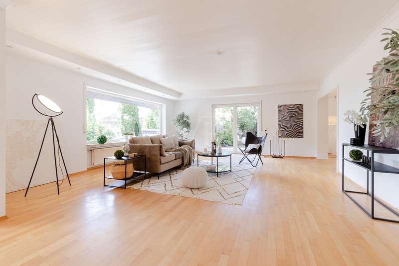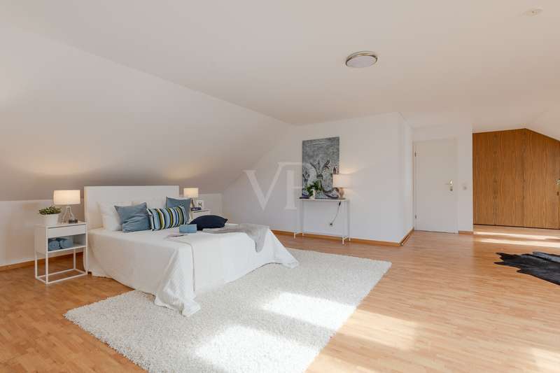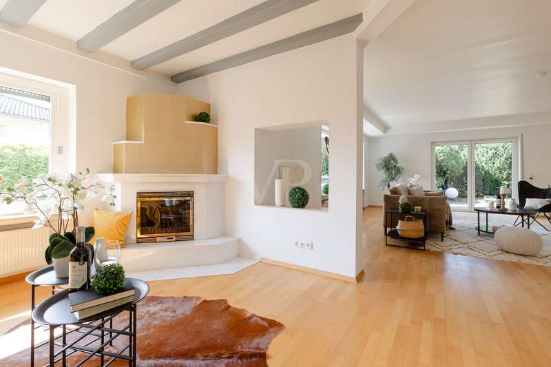 Welcome to your new dream home! This detached family home in an idyllic location on the edge of nature not only offers generous space for the whole family, but also an incomparable lifestyle that perfectly combines relaxation and comfort. Built in 1972 on a well-kept 613 m² plot, this property impresses with its 350 m² of living space and a well thought-out room layout that opens up a wide range of design options. The spacious, lovingly landscaped garden impresses with its picturesque views and an inviting outdoor fireplace - the ideal place to relax on balmy evenings and enjoy unforgettable hours outdoors. The bright first floor features an open-plan living and dining area with a separate, cozy fireplace room for relaxing moments with the family. The modern kitchen impresses with a spacious, practical storage room and underlines the high living comfort of this property. A children's room and an additional bedroom with adjoining bathroom round off the offer on this level and provide flexible usage options. The upper floor sets new accents: Numerous skylights flood the two bedrooms with natural light and create a bright, pleasant atmosphere. A further spacious master bedroom with direct access to the loggia gives you the opportunity to realize individual living dreams - whether as a retreat, study or creative space for your hobbies. An additional, high-quality bathroom provides additional comfort and underlines the functionality of this floor. The spacious basement offers you countless possibilities for personal design - whether as a modern fitness room, inspiring hobby cellar or stylishly furnished home studio. A special highlight is the integrated sauna with steam bath, which creates an exclusive oasis of well-being right at home. This property combines exclusive living, versatile usage concepts and a natural environment to create a lifestyle that is second to none. See this unique offer for yourself and experience how living dreams come within reach here!