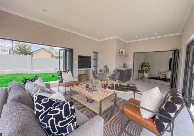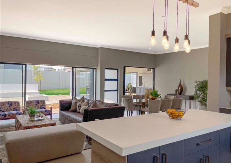 4 BEDROOM HOUSE ON SALE MIDSTREAM MEADOWS Natural day light I Modern design house features I Entertainment area I Modern finishes I Save On Transfer duties I Single storey I House features: - 4 Bedroom - 3 Bathroom - Lounge Area - Dinning Area - Kitchen and Kitchenette, with Pantry and Scullery - Entertainment area - Study and or Office - Boma with Braai Area - Ensuite Domestic Room - 3 Garages - Master Bedroom with a Spacious Walking Closest For more information and appointment contact us today