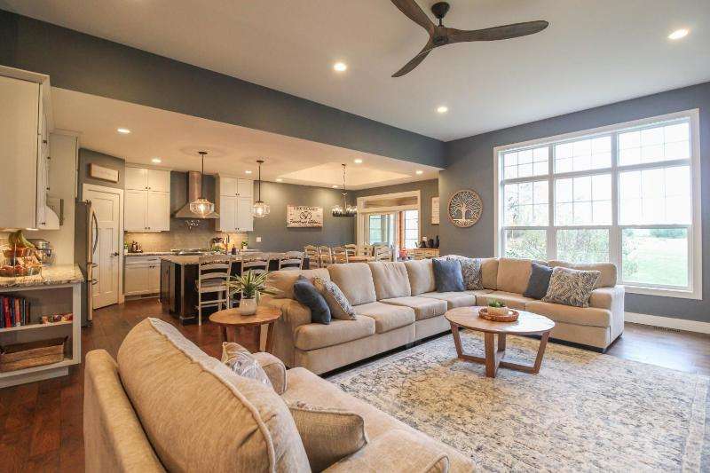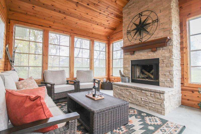 Feel the embrace of this exquisite open floor plan; perfect for entertaining. Impressive kitchen w/island, food pantry & spacious dining area that opens to 3-season porch w/woodburning FP. Cozy up to a fire while overlooking private, almost 3-acre sanctuary w/walking trails, access to bike path & short drive to town. Greatroom w/gorgeous FP, built-in cabinetry & a flow of natural light. Split BR layout, luxurious primary en suite w/tiled walk-in shower, office/sitting room & laundry/mudroom with cabinetry & cubbies. Fin exposed LL offers 2 additional BRs, full bath w/steam shower, amazing space for a rec room, theatre room &/or workout area. Added bonus, plumbed for a wetbar! Great storage in unfinished areas & 3-car garage w/stairway access to LL. Live in comfort w/dual zone temp control