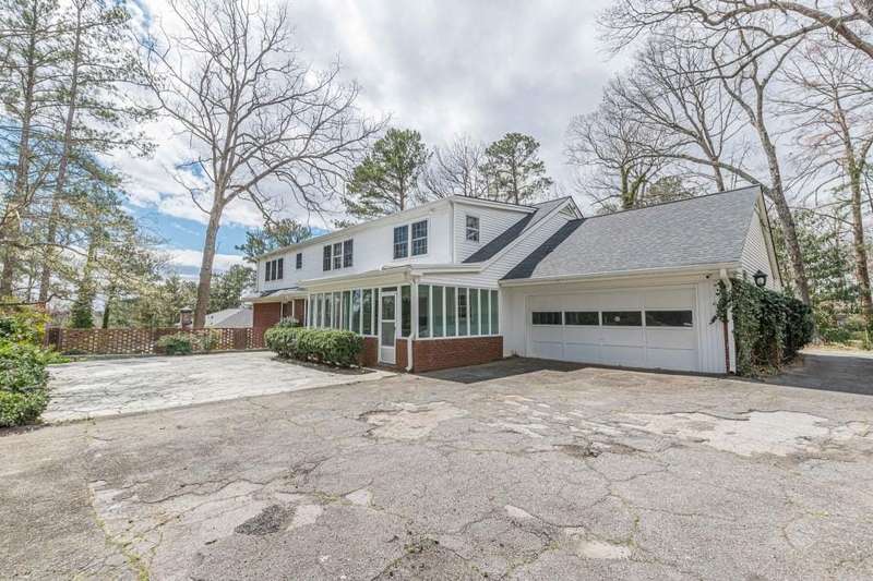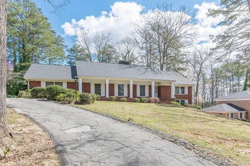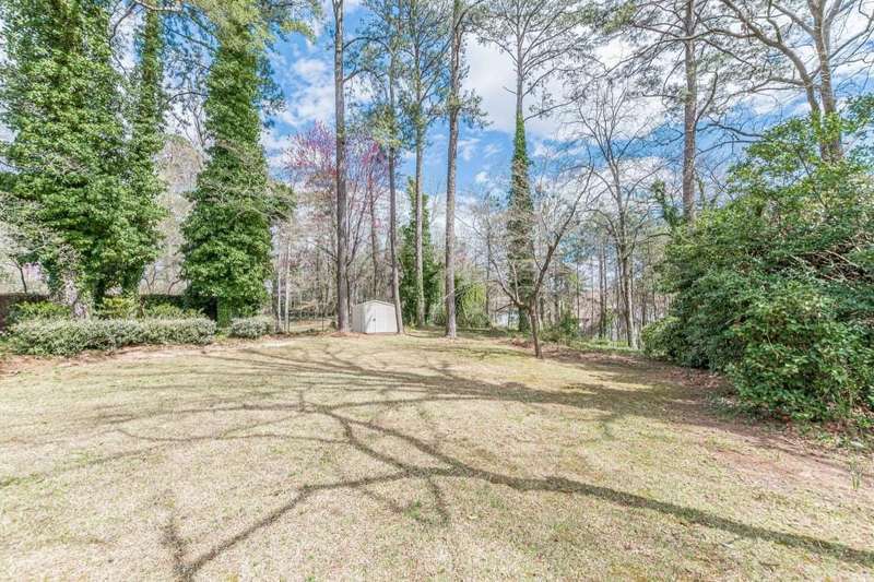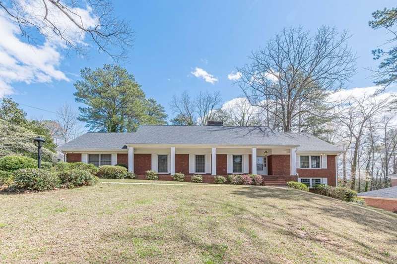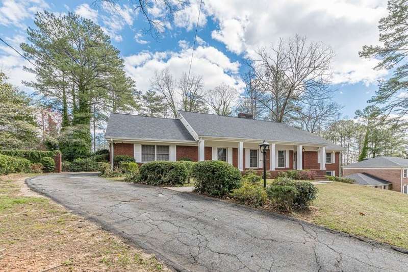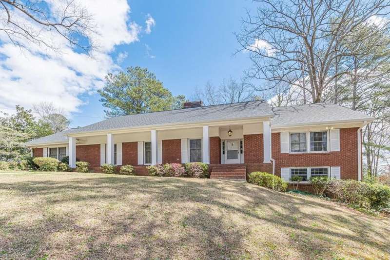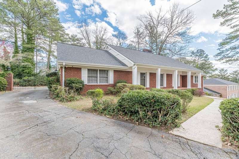 Nestled in a charming tree lined neighborhood convenient to Camp Creek Marketplace and two interstates, this 1960s traditional two-story home exudes timeless character and warmth. Enjoy gracious vintage living or add your own finishes. Spacious with exceptional storage, it's perfect to enjoy now and create your own dream home. The home boasts a list of upgrades, improvements and repairs-- including newer HVAC, water heater, roof and gutters, and more. The hard work has been done! The exterior features classic red brick, complimented by large windows. Natural light floods the interior from the rear of the house which boasts a huge sunny kitchen which retains is classic charm. Enter the main floor through a deep front foyer which leads to large spacious living areas with rich hardwood floors and original details including crown molding and vintage light fixtures. Upstairs the home offers three generously sized bedrooms allowing views of the natural, park-like backyard. Two primary suites are on the main level, the larger featuring a peaceful private retreat. Four of five oversized bedrooms enjoy an en-suite bath; all of the extra-large bedrooms offer two large closets for storage. The basement adds valuable living space with a second family room, or recreation area, bathroom, and plenty of storage. The home sits on nearly an acre fenced lot filled with mature trees and vibrant greenery creating a lovely, private setting. Enjoy parking spaces for everyone with an extra-large paved parking area in back. This home provides the perfect balance of classic architecture, modern convenience, and natural beauty all within a small, welcoming neighborhood, all just a short trip to two interstates and plenty of shopping.