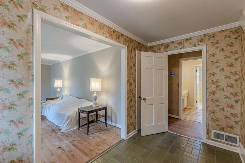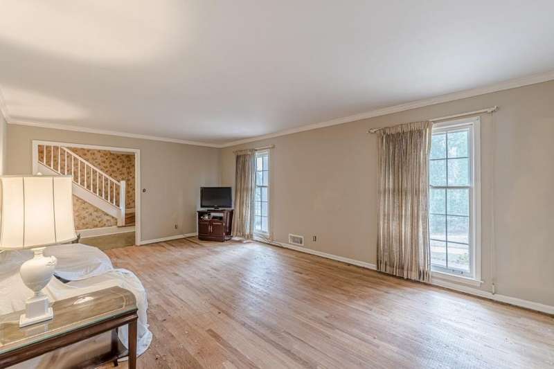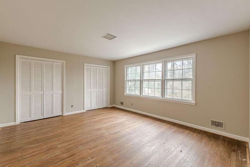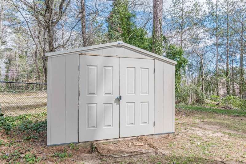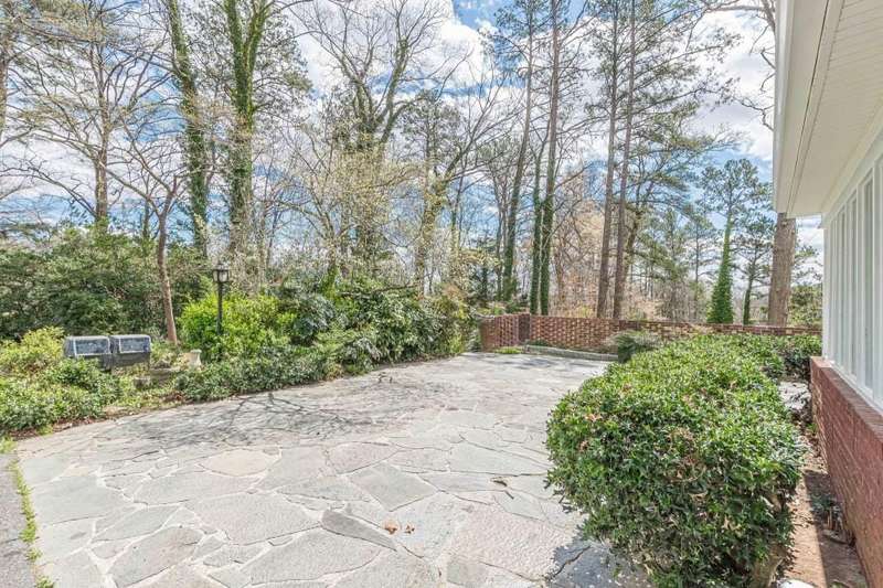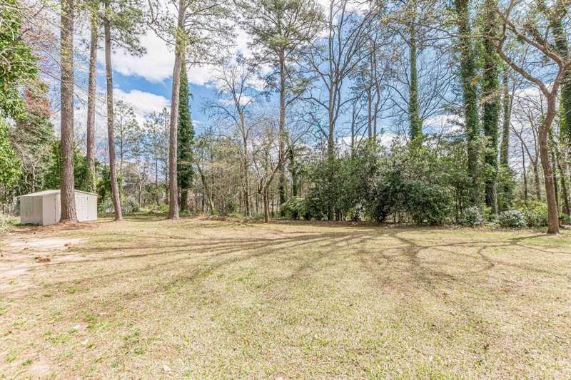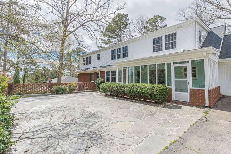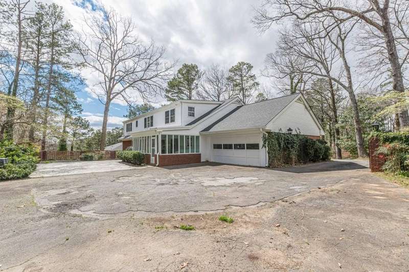 Nestled in a charming tree lined neighborhood convenient to Camp Creek Marketplace and two interstates, this 1960s traditional two-story home exudes timeless character and warmth. Enjoy gracious vintage living or add your own finishes. Spacious with exceptional storage, it's perfect to enjoy now and create your own dream home. The home boasts a list of upgrades, improvements and repairs-- including newer HVAC, water heater, roof and gutters, and more. The hard work has been done! The exterior features classic red brick, complimented by large windows. Natural light floods the interior from the rear of the house which boasts a huge sunny kitchen which retains is classic charm. Enter the main floor through a deep front foyer which leads to large spacious living areas with rich hardwood floors and original details including crown molding and vintage light fixtures. Upstairs the home offers three generously sized bedrooms allowing views of the natural, park-like backyard. Two primary suites are on the main level, the larger featuring a peaceful private retreat. Four of five oversized bedrooms enjoy an en-suite bath; all of the extra-large bedrooms offer two large closets for storage. The basement adds valuable living space with a second family room, or recreation area, bathroom, and plenty of storage. The home sits on nearly an acre fenced lot filled with mature trees and vibrant greenery creating a lovely, private setting. Enjoy parking spaces for everyone with an extra-large paved parking area in back. This home provides the perfect balance of classic architecture, modern convenience, and natural beauty all within a small, welcoming neighborhood, all just a short trip to two interstates and plenty of shopping.