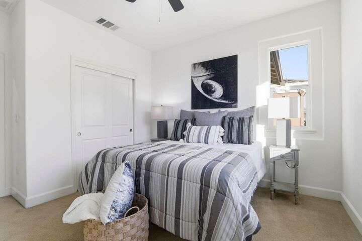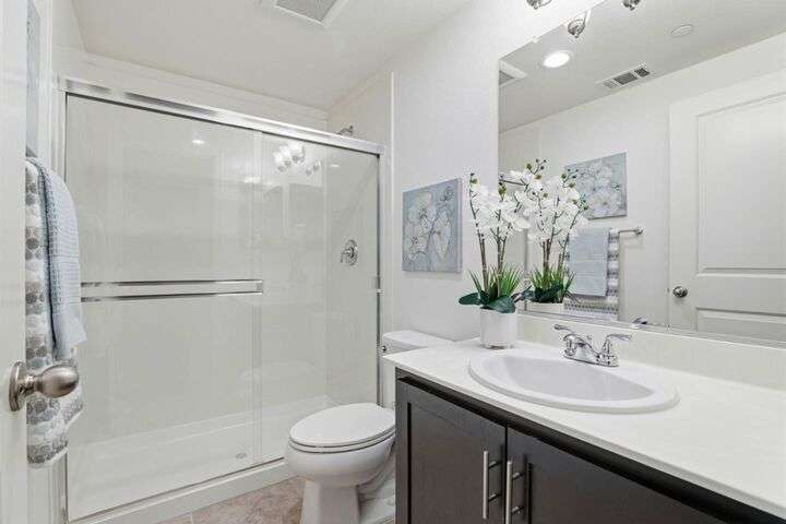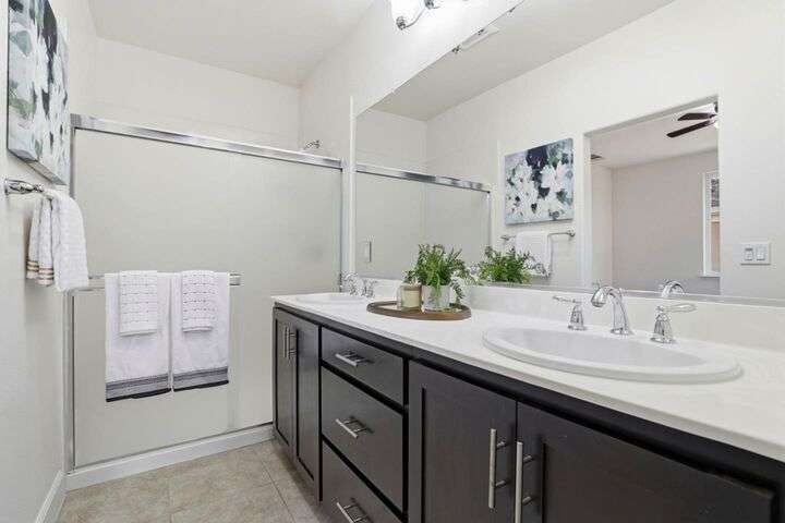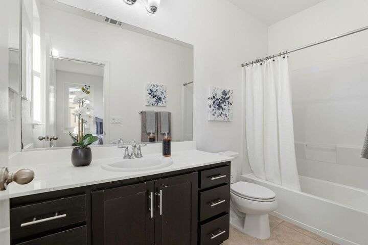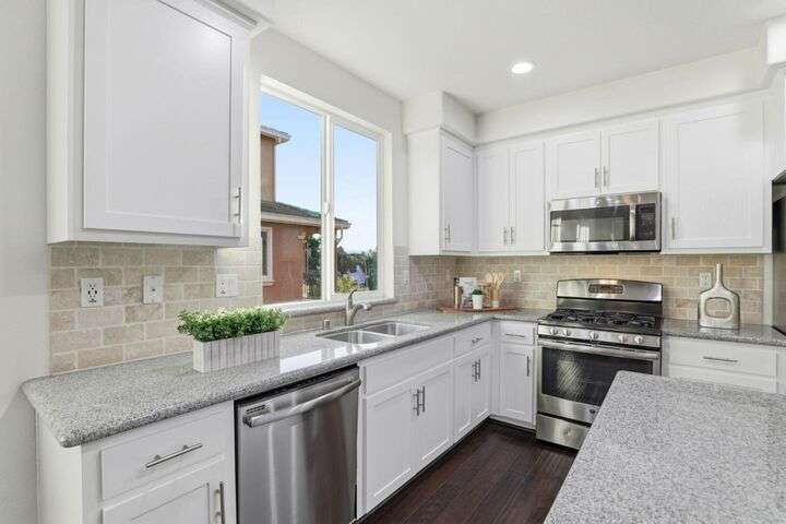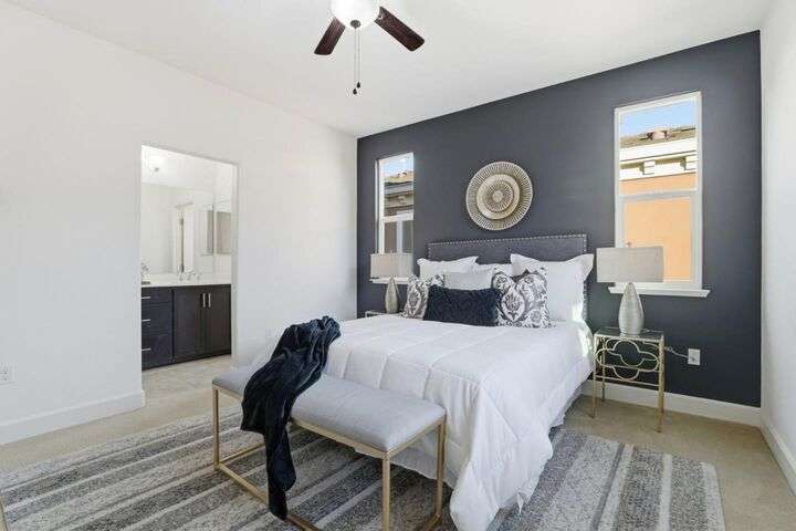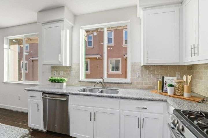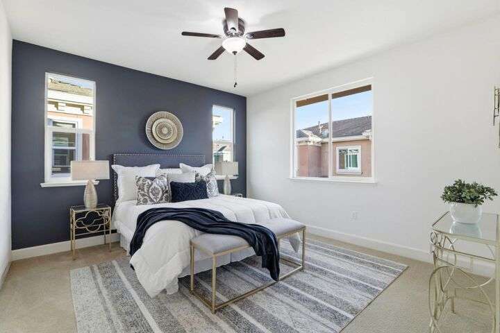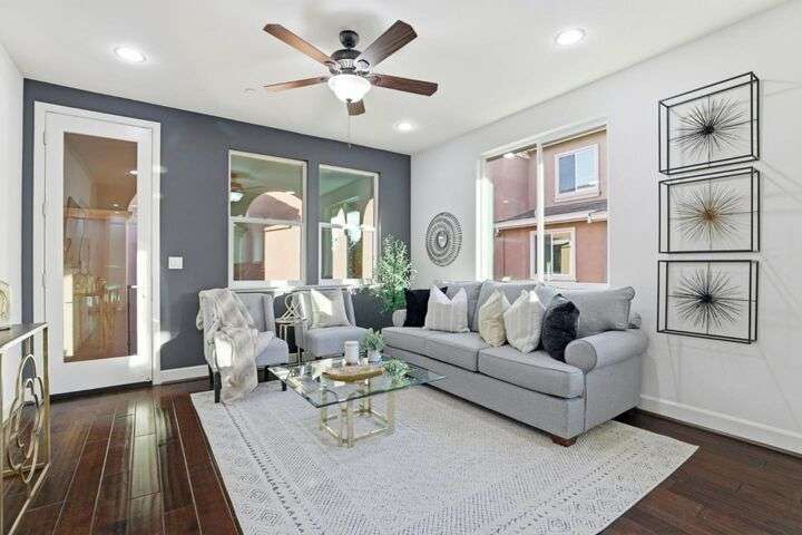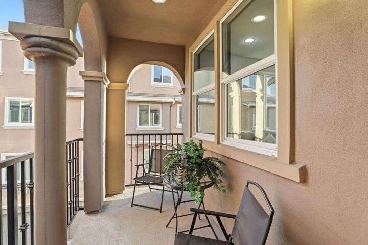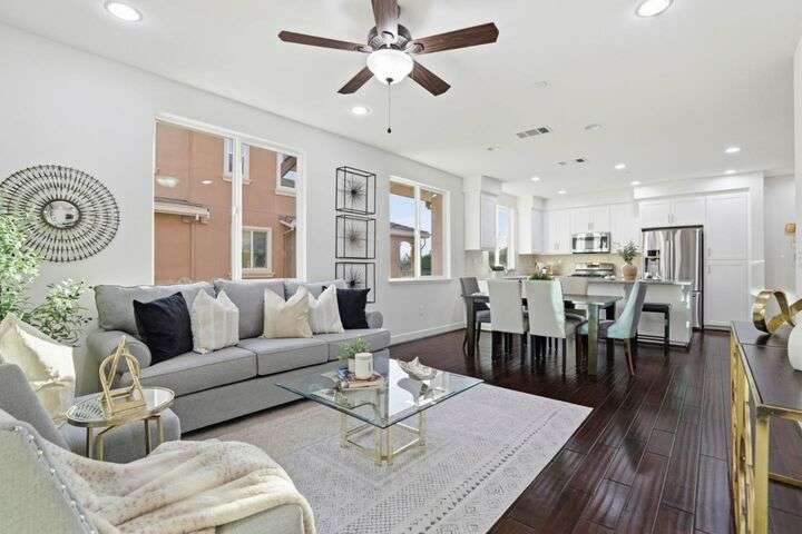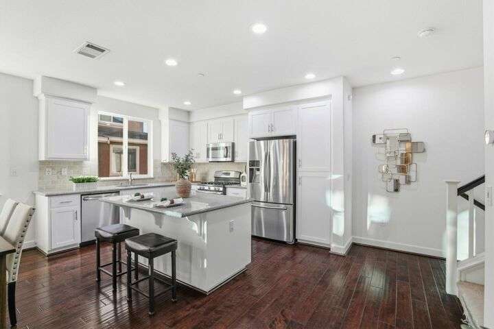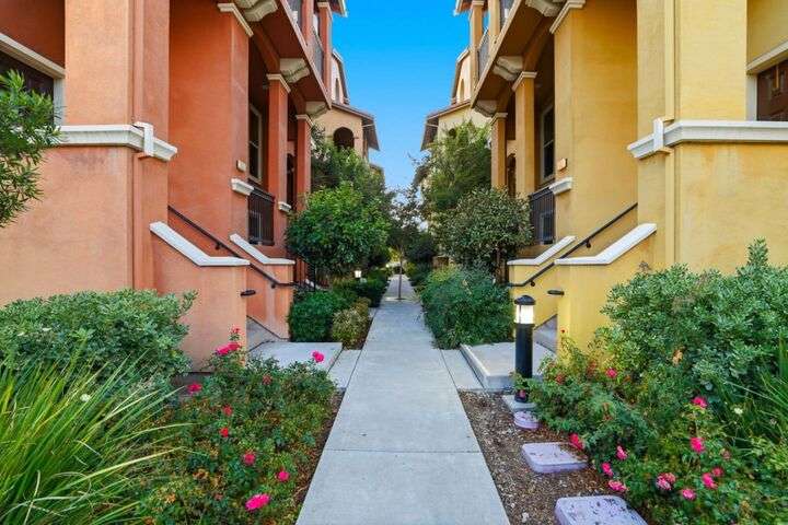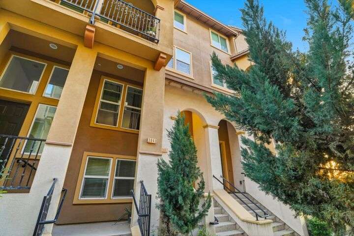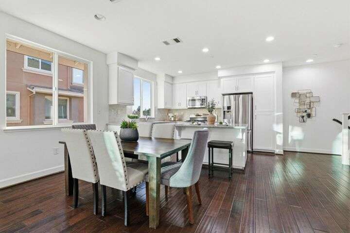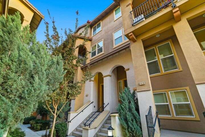 Welcome to this inviting NORTH-facing 3-bedroom, 3-bath home in one of Milpitass most connected and family-friendly neighborhoods. Thoughtfully designed for modern living, it features a bedroom & full bath on the main level ideal for guests, a home office, or multigenerational comfort. The open-concept layout with stylish hardwood floors flows seamlessly to a private patio, perfect for relaxing or entertaining. Upstairs, upgraded carpets add a cozy touch. The freshly painted white kitchen is both stylish and functional, with gas range, ample counters, sleek cabinetry, and modern appliances for effortless cooking. Smart-home upgrades include a smart thermostat and central A/C for year-round comfort. Sunlight fills the home throughout the day, enhancing its warm & welcoming feel. Enjoy access to TOP-RATED Milpitas schools, including highly sought-after Mabel Mattos Elementary just steps away. Easy access to I-880, I-680, BART, VTA Light Rail, and the Great Mall, commuting is a breeze. VERY LOW HOA fees, a two-car garage, and proximity to Sprouts, Costco, parks, and trails complete the home with ample guest parking right outside the unit. This home perfectly balances comfort, smart design, and a true sense of community. A Milpitas gem ready for you to call it home for the holidays.