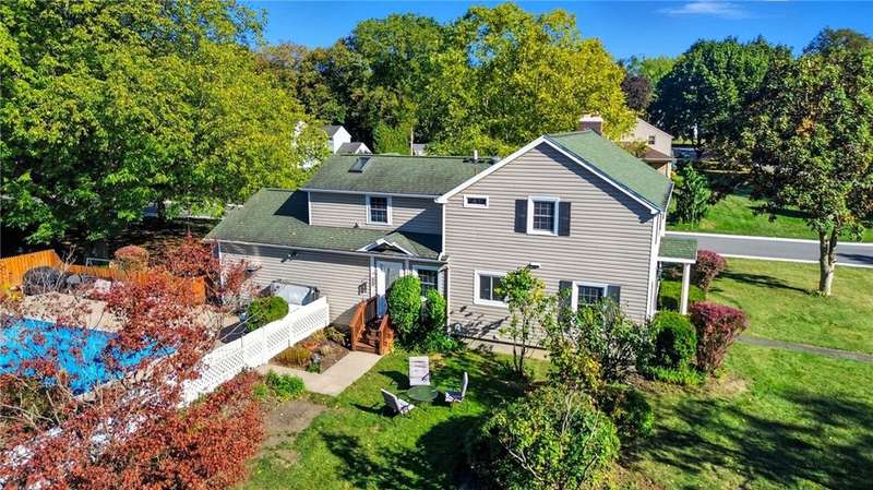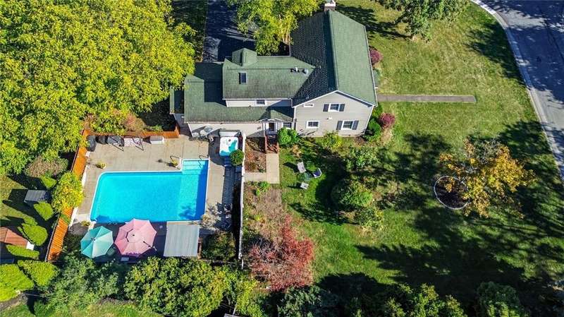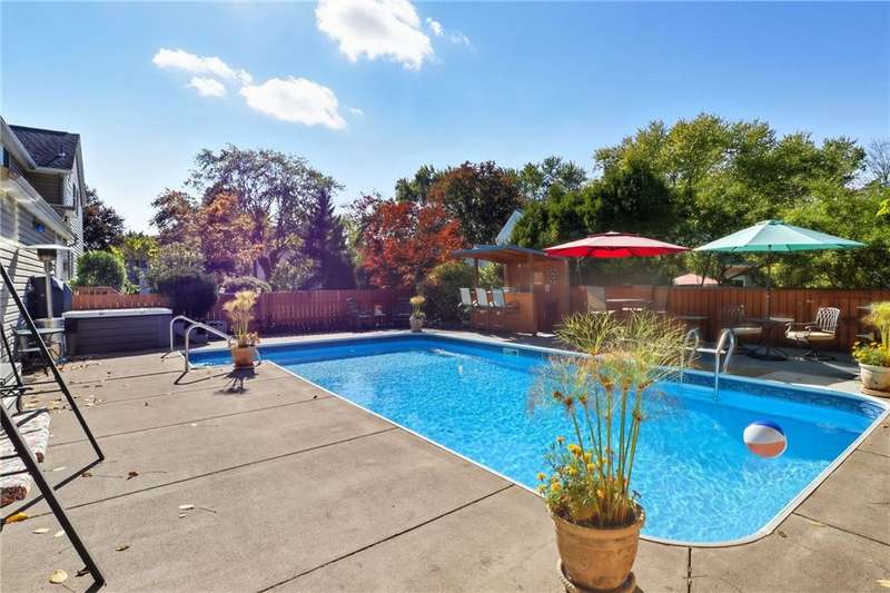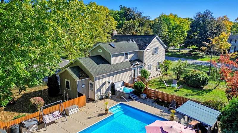 Showings to start on Thursday 10/2 1-4, Friday 10/3 3-6, Saturday 10/4 10-12:30, Public open house on Sunday 10/5 1-3 and showings Monday 10/6 1-3 and all offers due on Tuesday 10/7 at 2 pm with a 24 hour response time. This incredible home in much sought after Evans Farms in Brighton, is move in ready. Offering over 1800 sq ft, 4 bedrooms and 1.5 baths and totally redone, Sits on a corner lot of a cul-de-sac street, very private and easy access. As you enter the home you are greeted w/ shining hardwoods through out, an eat in kitchen that has been completely redone, w/ beautiful white cabinetry, & tons of storage & counter space. The Formal dining rooms sits in the front of the home w/ plenty of windows & leads to the Living room accented by a wonderful wood burning fireplace, built in shelving/ book cases on the front wall and again tons of windows for maximum natural light. The first floor is completed w/ a remodeled 1/2 bath. The second floor offers 4 bedrooms, all ample size with again gleaming hardwoods, and plenty of architectural charm & character. The 4th bedroom has vaulted ceiling with wall of bookcases and attached room that could easily be converted to a full bath and then would make a wonderful primary suite. The main bath has been completely remodeled as well floor to ceiling, fixtures and tub. LL offers additional finished living space of approximately 450 sq ft with again a ton of closets for additional storage and the unfinished area is very dry. Garage is oversized 2.5 with new epoxy floor, separate circuit box which adds an additional 100 amp service, built in storage and the pool equipment. Door from garage leads to the back yard paradise of in-ground pool area with Tiki Bar and hot tub all completely private, and you still have huge yard area behind the pool area, on the side on the house as well as the front. Rear lot also offers 2 sheds. Upgrades include: Windows & siding 2007, Driveway 2025, kitchen 2016, Bath 2012, Hot-tub 2023, painted interior 2021, LL carpet replaced, hardwoods refinished 2021, lifetime guarantee for the poly-aspartic floor(epoxy) in Garage, new pool filter 2025, new pool liner 2023 & so much more.
