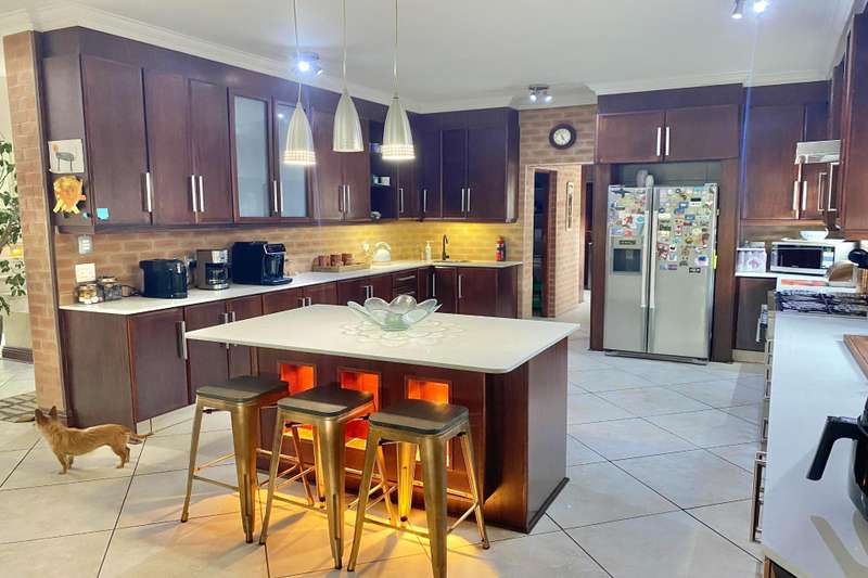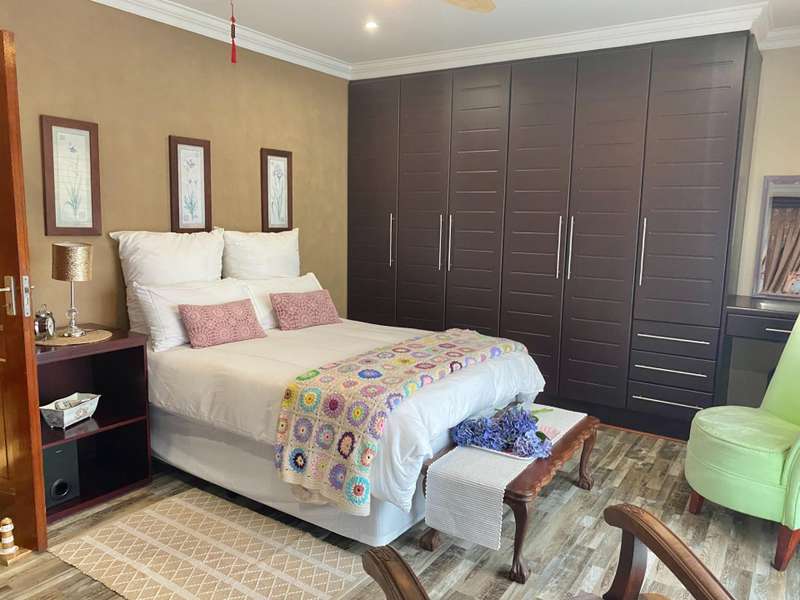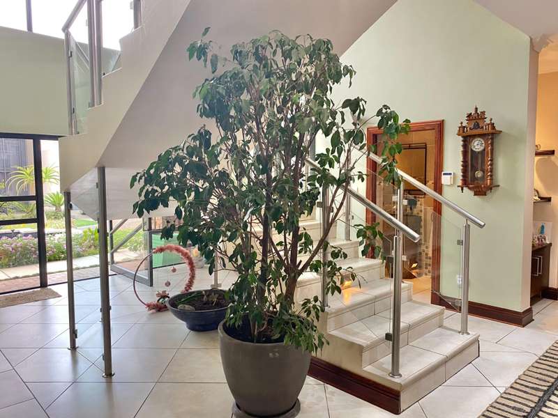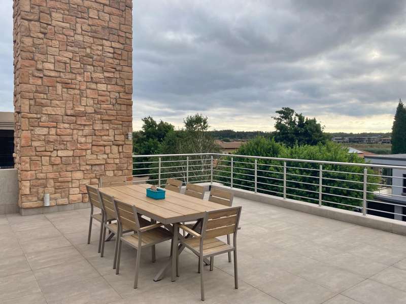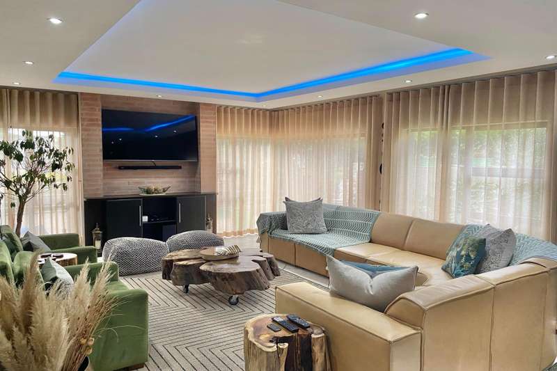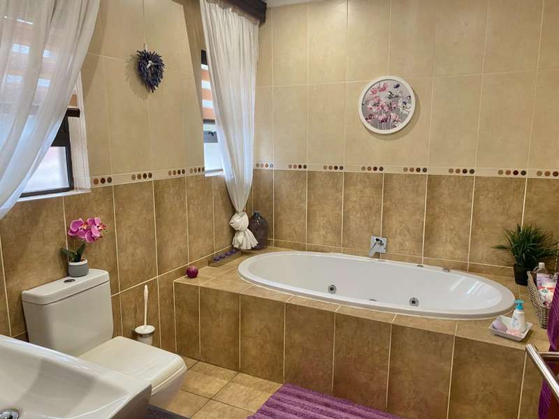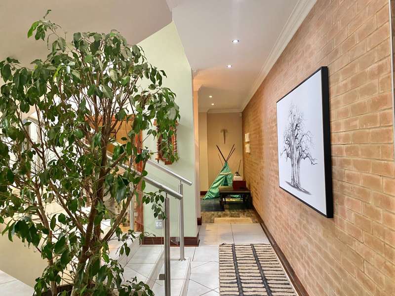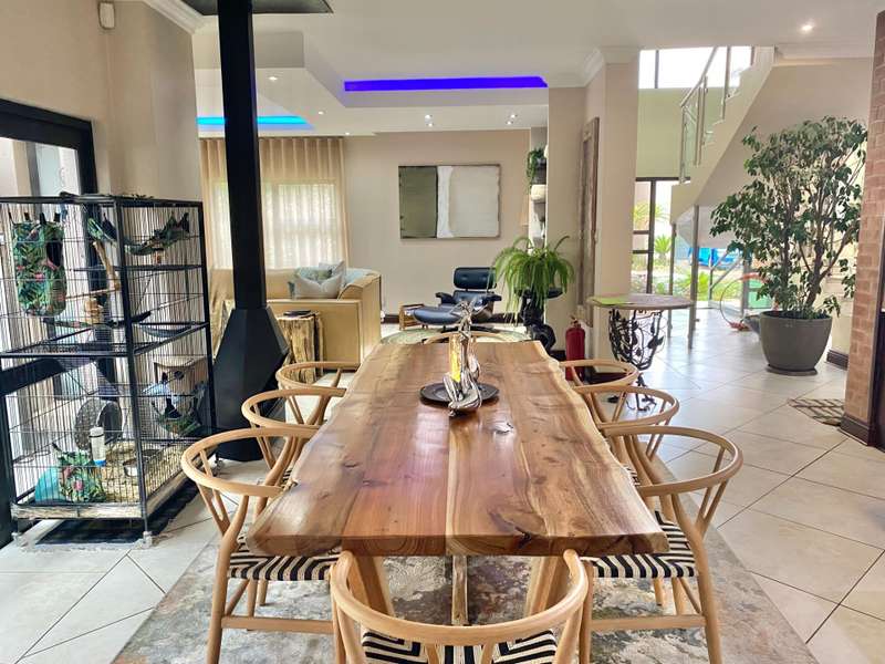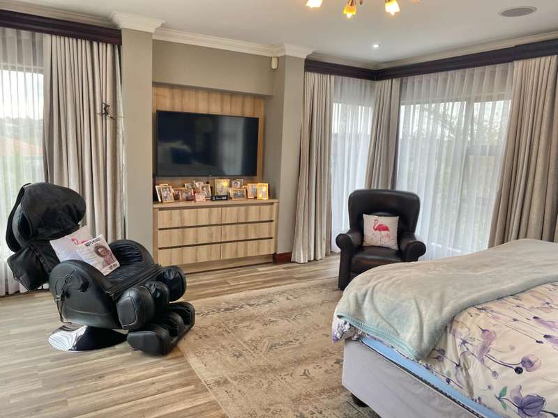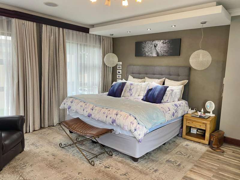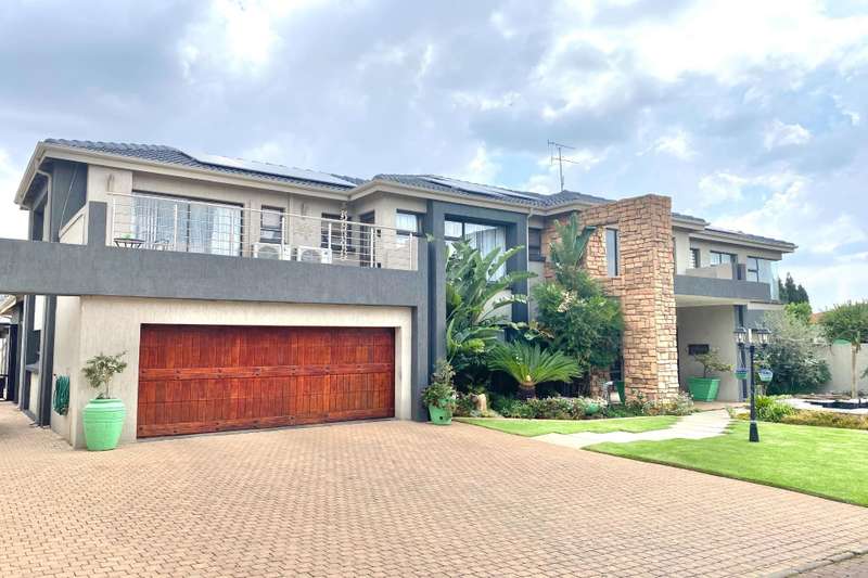 EXQUISITE, MODERN AND IMMACULATE - MAJESTIC 690 SQM FAMILY HOME ON A 1036 SQM STAND A Spectacular Architecturally Designed Masterpiece Prime positioned with easy access to the leisurely picturesque waterfront and the world renowned Matcovich and Heys signature links golf course. The natural environment offers an abundance of unique birdlife and wildlife. This unique home enjoys spectacular panoramic views of the entire estate. Meticulous attention has been given to every detail, from master craftsmanship of the solid wood and masonry to top class fine finishings. With expansive dining, entertaining and living areas, this elegant home features the following to the discerning purchaser: Upon arrival the fa?ºade of the home is surrounded by plush meticulously manicured lawn, delightful flowers, landscaped garden and impressive a water feature. Reception - Double volume glazed grand entrance. Open plan ease of flow through out the living areas. First Formal lounge - Spacious and elegant with LED illuminated bulkheads (this feature is continuous throughout the home) Dining area - Open and leads through to the large Entertainment patio, which is glass enclosed for all weather enjoyment. Both the lounge and entertainment areas lead out to the social Braai area and Sparkling pool. Kitchen - Spacious gourmet kitchen is elegantly dressed with travertine marble look, Caesar stone solid surfaces, solid wood cabinetry and Centre island. Large oven, gas cooker and extractor fan. Sufficient space for a Double door fridge. Prep bowl. Walk-in pantry. Separate scullery and Laundry area. Basement Walk-in Wine cellar and tasting room, perfect for indulging in your favorite vintages. Guest toilet with a unique solid stone basin. Separate Family lounge. The grand glass and stainless steel balustrade staircase leads up to the central point of the first floor. Third lounge - Central elegant Pajama lounge, that separates the main bedroom to the right, from the other three bedrooms. All bedrooms are air conditioned, spacious and have sliding door access to large Private upstairs patio where one can enjoy spectacular views over the lake, golf course and estate Main bedroom: Large with a full en-suite bathroom, LED lit bulkheads. Second bedroom: Large with a full en-suite bathroom. Third bedroom: Large with a full en-suite bathroom, and separate dressing room. Fourth bedroom: Large with an en-suite bathroom. Walk-in laundry closet. Garaging: Convenient parking, Extra length garages and additional parking spaces. Other features include: Underfloor heating, 5000 litre JoJo tank water reserve and pressure pump. Solar: 10 x 660 W, Sunsync 10KVA Solar system. Rainbird irrigation system. Ebotse Golf and Country Estate offers an unparalleled unique safe and secure lifestyle. To schedule a private viewing of this extraordinary property, please contact me today !!!!!!!