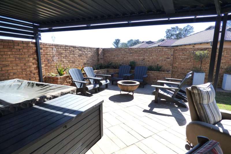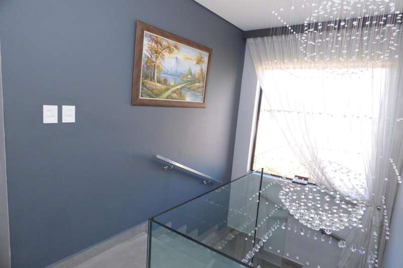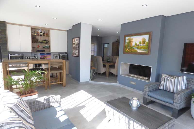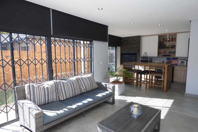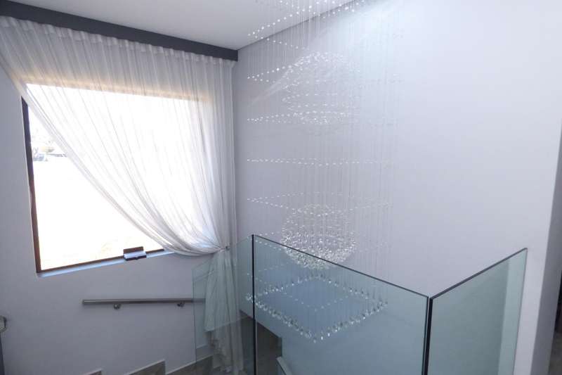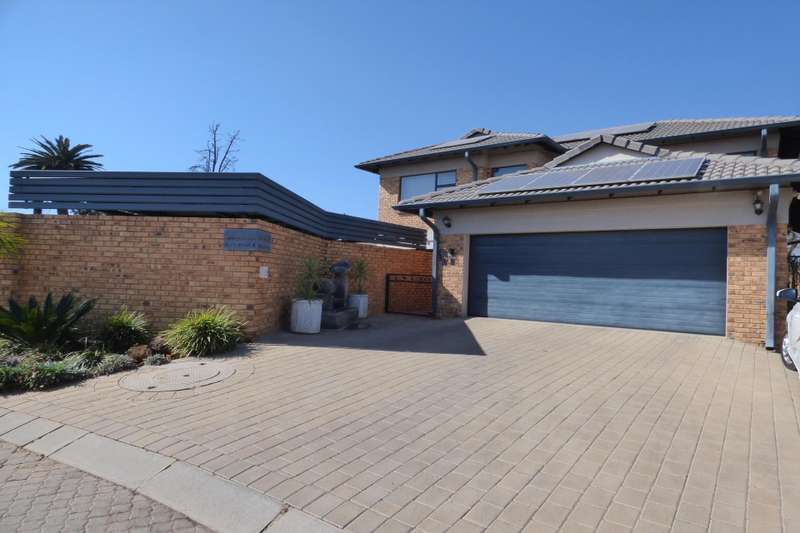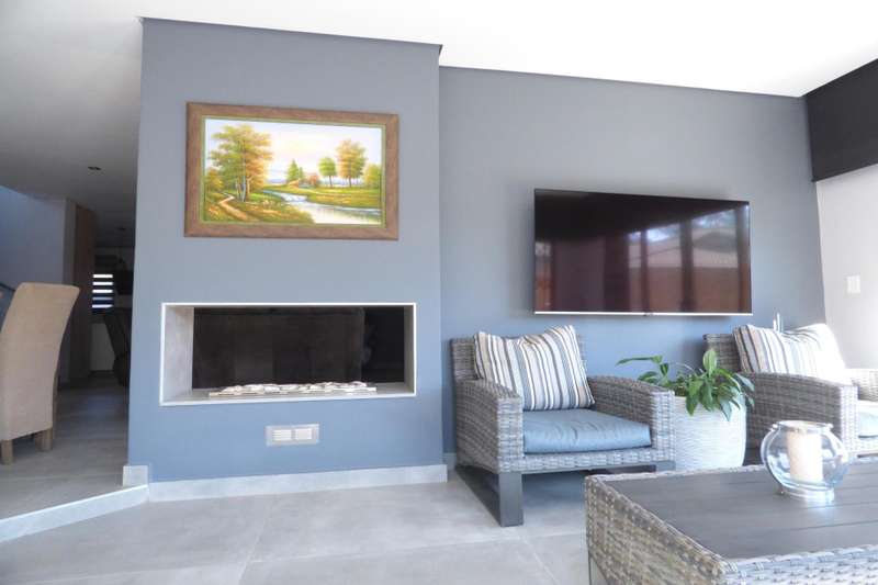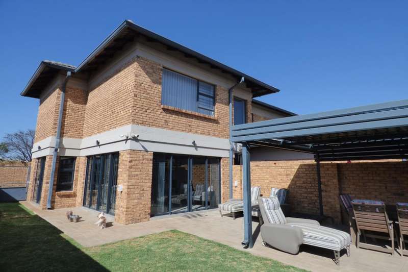 MASTERBUILT FACEBRICK DOUBLE STOREY RESIDENCE IN SMALL CLUSTER COMPLEX The finishes in this home are next level. Just move in and live a life of luxury and opulence. Imposing entrance, leading into large entrance hall. Tiled formal lounge. Open plan gas fireplace to warm up the living area. The gourmet kitchen has plenty of cupboards and built-in microwave. Smeg gas stove with electric oven and extractor fan. Separate scullery area with place for 3 appliances. Place for double door fridge. Tiled family room leading onto stunning entertainment, under cover area. Well-appointed guest toilet and basin. The upstairs sleeping quarters comprises of 4 large, tiled bedrooms or 3 bedrooms and a study. Main has aircon, walk-in dressing room and stunning, fully tiled en-suite with heated towel rails. 2nd Fully tiled bathroom boasting a bath, shower, vanity and toilet. Coffee station area. The double garage has a wall of cupboards and is remote controlled. Plenty of security including CCTV, cameras, and beams. ?Çó Electric curtains. ?Çó Blinds throughout. ?Çó Pop-up irrigation system. ?Çó Solar geyser. ?Çó Prepaid electricity. View by appointment only.