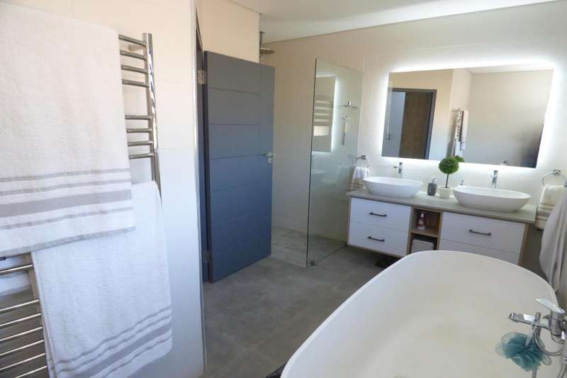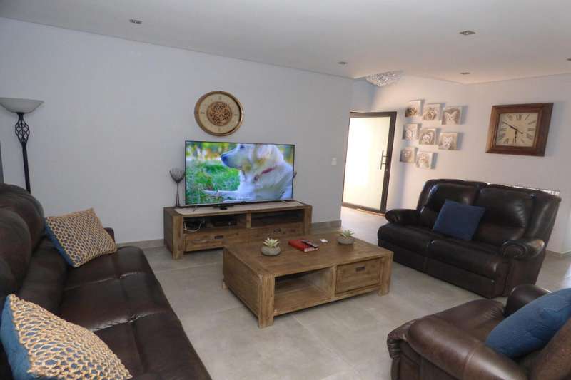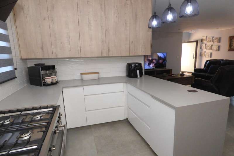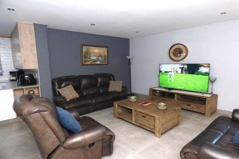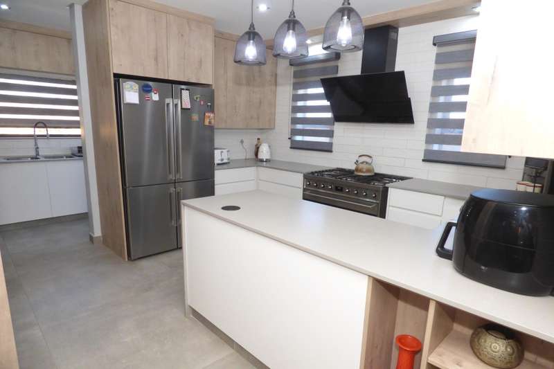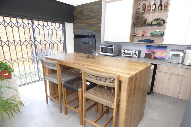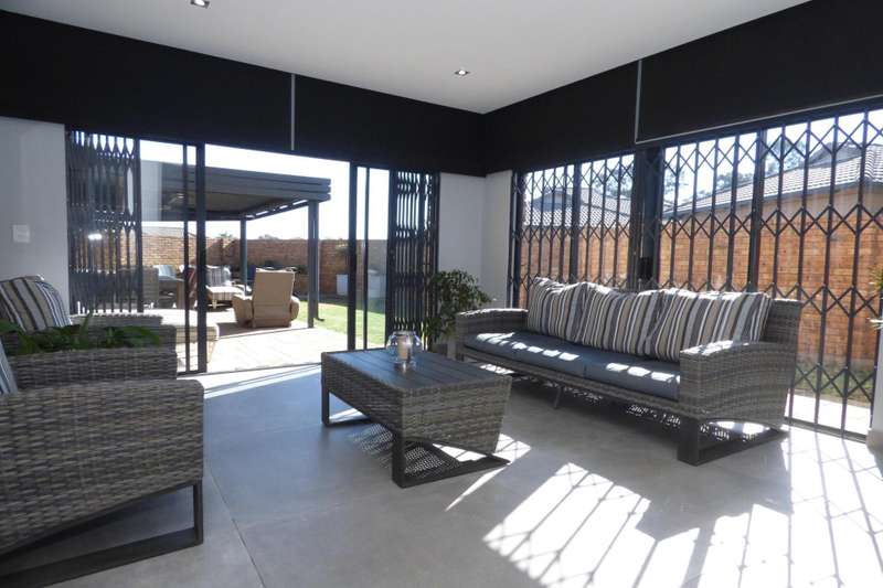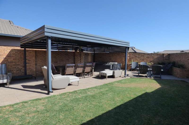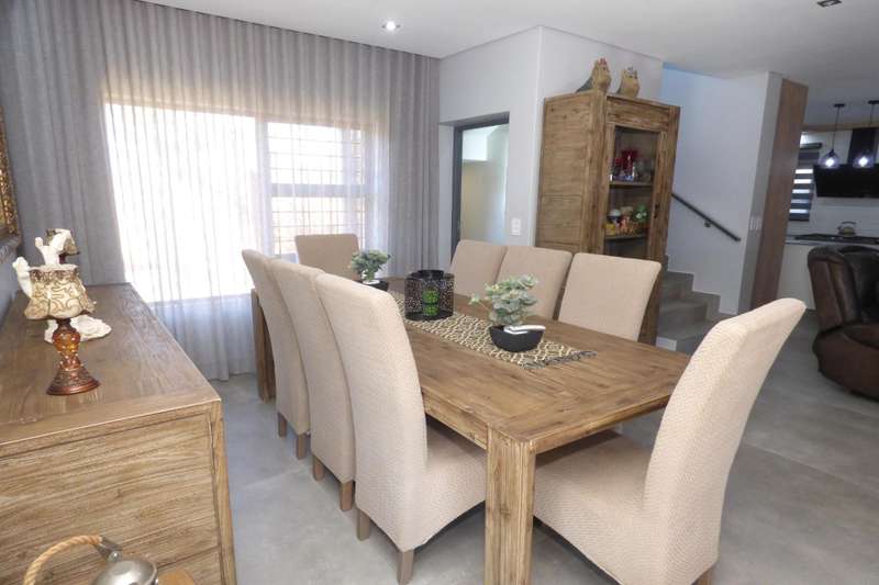 MASTERBUILT FACEBRICK DOUBLE STOREY RESIDENCE IN SMALL CLUSTER COMPLEX The finishes in this home are next level. Just move in and live a life of luxury and opulence. Imposing entrance, leading into large entrance hall. Tiled formal lounge. Open plan gas fireplace to warm up the living area. The gourmet kitchen has plenty of cupboards and built-in microwave. Smeg gas stove with electric oven and extractor fan. Separate scullery area with place for 3 appliances. Place for double door fridge. Tiled family room leading onto stunning entertainment, under cover area. Well-appointed guest toilet and basin. The upstairs sleeping quarters comprises of 4 large, tiled bedrooms or 3 bedrooms and a study. Main has aircon, walk-in dressing room and stunning, fully tiled en-suite with heated towel rails. 2nd Fully tiled bathroom boasting a bath, shower, vanity and toilet. Coffee station area. The double garage has a wall of cupboards and is remote controlled. Plenty of security including CCTV, cameras, and beams. ?Çó Electric curtains. ?Çó Blinds throughout. ?Çó Pop-up irrigation system. ?Çó Solar geyser. ?Çó Prepaid electricity. View by appointment only.