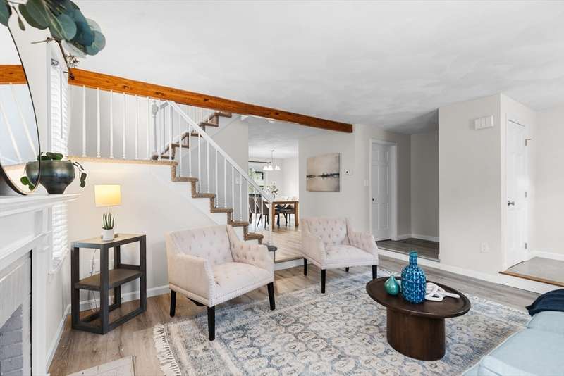 Beautifully renovated Colonial duplex in a serene riverfront community! First floor features a living room with fireplace, dining room with chair rail and slider to outdoor deck and 1/2 bath. Everyone will love the the bright white kitchen with granite counters, peninsula seating and stainless steel appliances. Second floor offers a spacious primary bedroom with very cool, versatile loft space and double closets. There is a generous second bedroom, and full bath with laundry! Updated throughout in 2020 new flooring, tile, carpeting, bathrooms with granite and white cabinetry, new front door, windows, updated electric panel, and new hot water tank. Enjoy community amenities including two pools, tennis courts, and scenic trails along the Merrimack River perfect for walking, jogging, biking, or cross-country skiing. A perfect blend of comfort, nature, and neighborhood living.