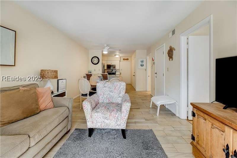 Stroll to the white sand beach in 5 minutes from this turn key, ready to go Fiddlers Cove unit! Fully furnished down to the forks and coffee cups. Tile plank flooring, stainless steel appliances and granite countertops already done! Nestled within the secure, gated enclave of Fiddler's Cove in the Folly Field area of Hilton Head Island, residents can indulge in amenities like a pair of pools heated seasonally, a soothing spa tub, courts for tennis and pickleball, fitness gym, racquetball rooms, a welcoming clubhouse, and plenty more. Use as a personal vacation get away, a full time residence or place into the Short Term Rental pool.