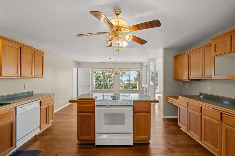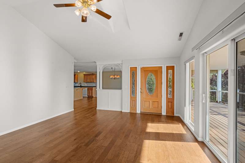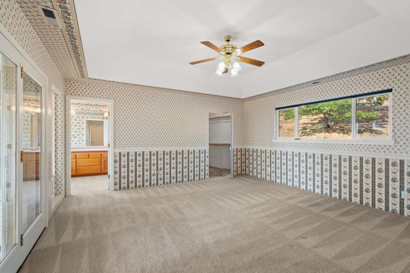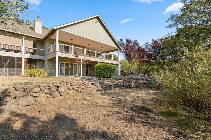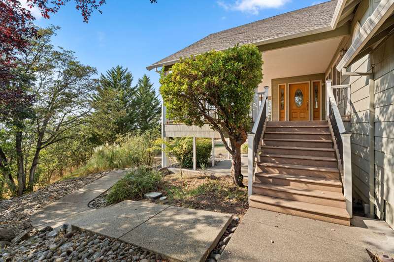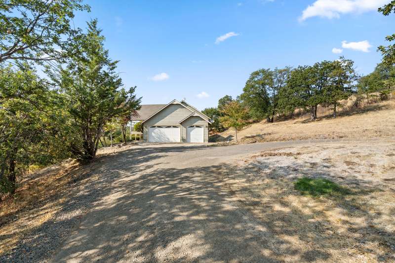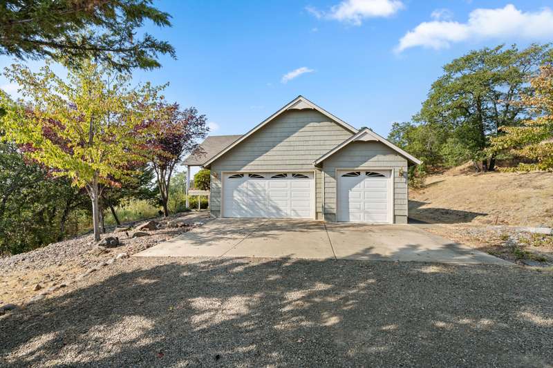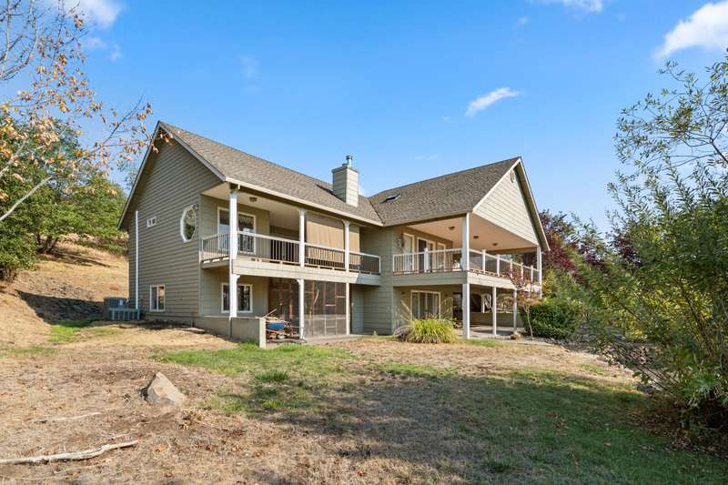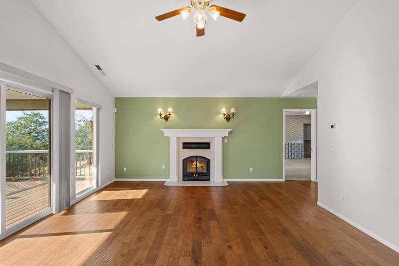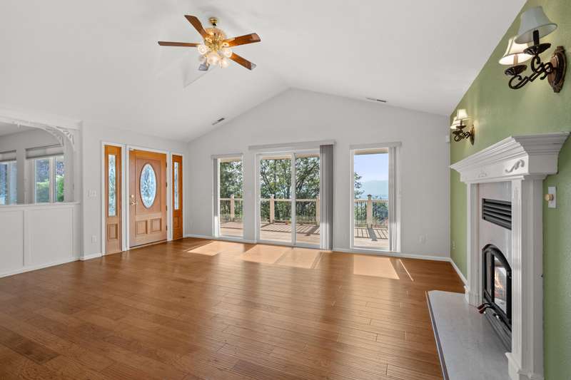 Welcome to your private 9.9-acre retreat with sweeping mountain and city light views! This beautiful 4-bedroom, 3-bath home offers warmth and comfort at every turn. Hand-scraped engineered hickory floors, a spacious kitchen with island and under-counter lighting, and a cozy family room with wet bar set the stage for everyday living and memorable gatherings. The inviting primary suite provides a peaceful escape with serene views and a generous walk-in closet. Enjoy year-round comfort with ceiling fans, a wood-burning fireplace, and a woodstove. Step outside to a huge covered composite deck—perfect for morning coffee, sunset dinners, and soaking in the beauty of nature. With a 3-car garage and room for your RV, boat, and toys, this property offers space, privacy, and endless opportunities to live the lifestyle you've been dreaming of.