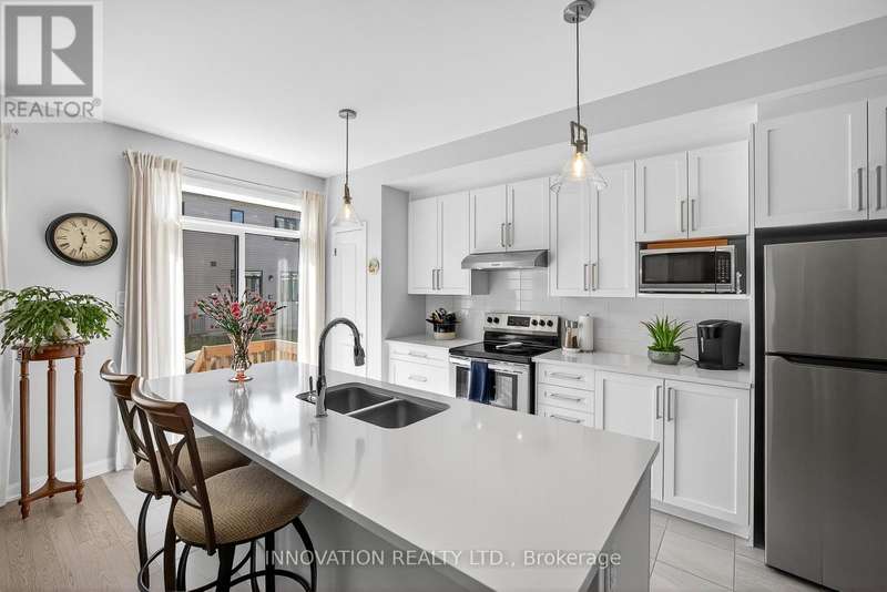 Welcome to this beautifully maintained 2-storey townhouse in the sought-after community of Half Moon Bay, Barrhaven. Featuring 3 spacious bedrooms, 2 full bathrooms, and 2 powder rooms, this home blends modern comfort with timeless style.Step inside to an open-concept main floor with hardwood flooring, neutral designer tones, and an abundance of natural light. The spacious white kitchen with large island boasts quartz countertops, plenty of cabinet space, and a seamless flow into the dining and living areas perfect for entertaining or everyday living.Upstairs, you'll find three well-sized bedrooms, including a serene primary suite with an ensuite bath and generous closet space. The finished basement offers a versatile recreation area complete with a cozy gas fireplace, ideal for movie nights or a home office. Additional highlights include an extra-deep garage for ample storage, a modern layout, and a clean, classic design throughout.Located in a family-friendly neighbourhood, you'll enjoy proximity to top-rated schools, parks, trails, shopping, and transit. 24 hour irrevocable on all offers (id:6509)