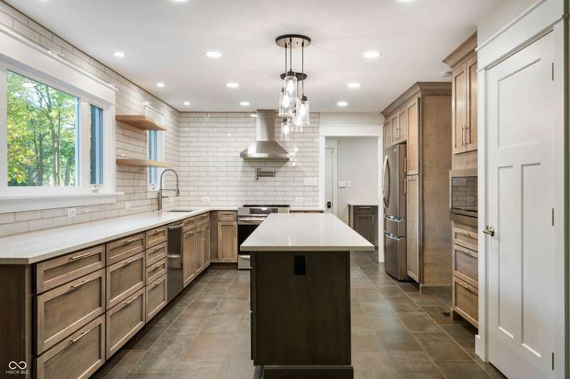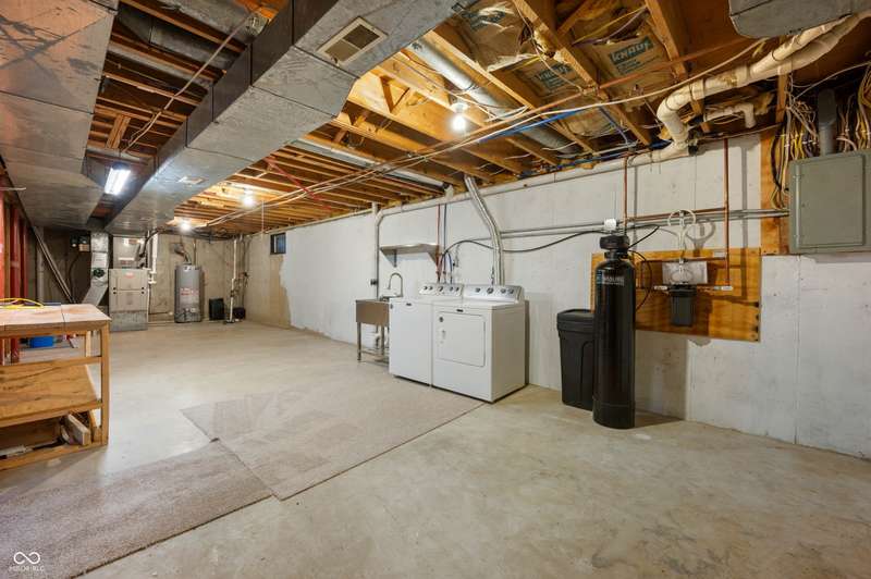 Amazing 4BR and 2.5BA home in Cool Creek North. Traditional floor plan but tastefully updated for modern living. Large front living room and dining room. Dining room has been pre-plumbed for a future wet bar. Fully renovated kitchen with large center island. Additional space off kitchen with fire place to be used for informal dining or an extra living room. Renovated mudroom off the garage with half bath. Large primary bedroom and walk-in closet. Basement partially finished for a rec room or play room. Additional room in basement for remote office space. Large covered porch with skylights overlooking a massive fenced-in backyard. Backyard has a fire pit, fenced off garden, and storage shed. Property is just under half an acre with mature trees and swing set. Great location with easy access to everything Carmel has to offer.