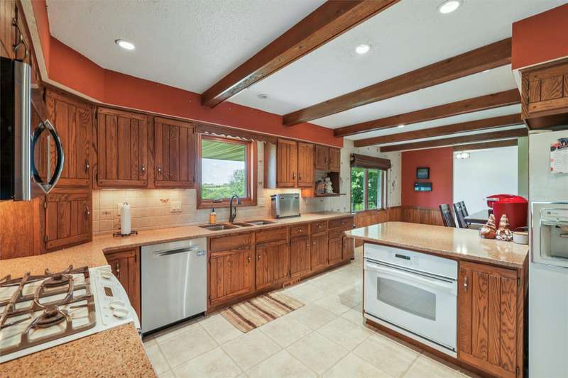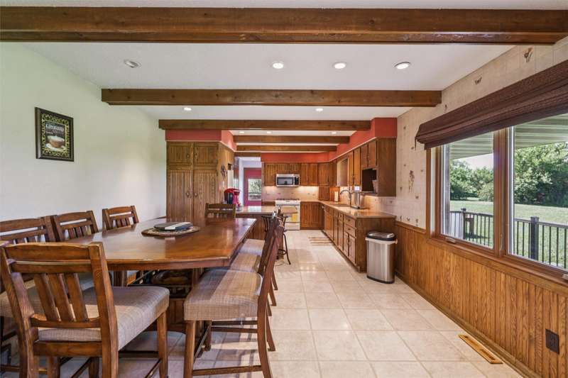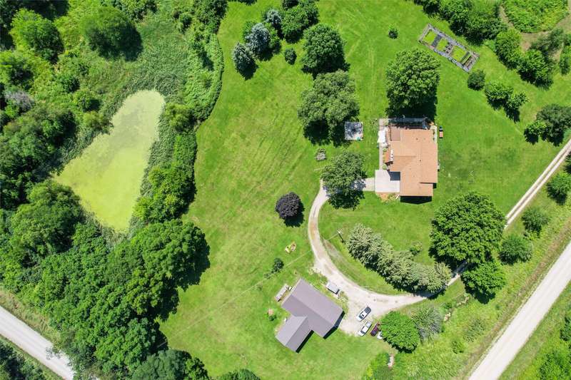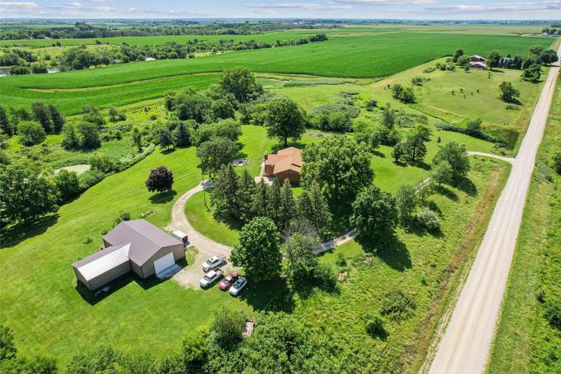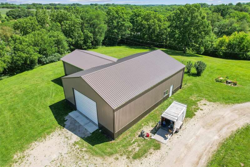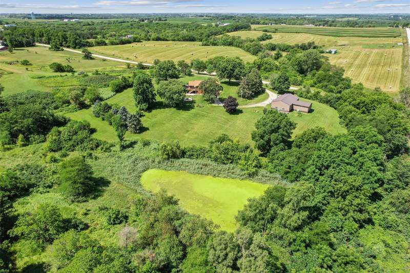 Hard-to-find all-brick ranch on 8.61 scenic acres with timber, a 1-acre pond, andpeaceful country viewsjust minutes from Summerset Winery! This 4-bedroom, 3-bath home offersspace, privacy, and thoughtful updates in a gorgeous natural setting. The eat-in kitchen features quartzcountertops, abundant cabinetry, and overlooks the land. A formal dining room with hardwood floorsprovides an elegant space for gatherings. The main-level family room offers a cozy feel with a classicwood-burning fireplace.The remodeled primary suite bath features a walk-in shower and updated finishes. Youll also love thestylish half bath with unique tiled floors. Two bedrooms are located on the main level, with two additionalbedrooms, a bath, and a second family room with a gas fireplace in the finished walk-out lower level.Outside is where this property truly shinesfeaturing a very large Morton-type building with multiplesections, two of which are heated and cooledideal for storing large toys, workshop space, or hobbies. Afenced garden area with electric wire helps keep unwanted critters out so you can enjoy growing your own food.