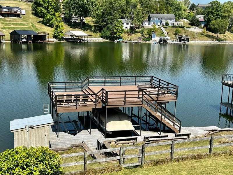 Williamstown Lake Baby! Who's looking for a western facing sunset view from a super nice sun deck at your new Williamstown Lake house?! Bigger is always better & this dock is FABULOUS - big enough to entertain all of your family & friends! Dock features a storage building and 3 slips - pontoon, jet ski, v-hull boat - all three with electric lifts! The open floor plan of this house is perfectly set up for folks who love to entertain & be together. Great room, dining area & kitchen are all open & sliding glass doors access the back deck which spans the entire length of the home! Large storage area on the deck provides room for deck furniture & equipment. Back yard is FENCED and gently slopes down to the dock! This BEAUTIFUL LAKEFRONT home is situated on a double lot w/100' of lake frontage and features 3 large bedrooms & 1 nice full bath. Bedroom 3 features a walk-in closet & sliding doors access the deck. Need more space? Plenty of room for expansion on this lot! Parking is at a premium at the lake & this property offers spaces for 5+ vehicles! Easy access, paved road to 510 Jacob Dr. All you need to do is move in and start living your BEST LIFE because LAKE LIFE IS THE BEST LIFE