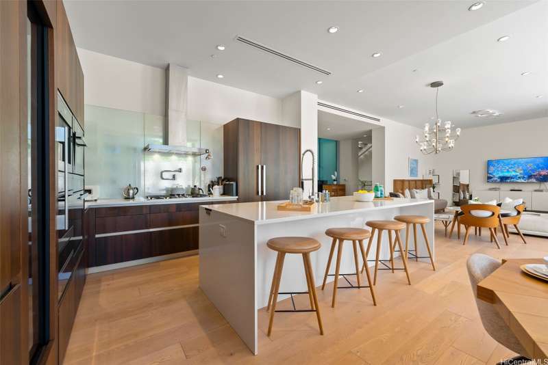 This beautiful Waiea 2-story Villa, 3 bedroom, 3.5 bathroom together with its own two-car garage unit in popular Ward Village, Kakaako, has offering an amazing townhome lifestyle with peaceful private environment, yet super luxury condominium amenities. The Villa has its own outdoor pool as well as Wolf BBQ grill with cute landscaping and a lanai on the second floor. You also can enjoy Waiea condo amenities including heated lap pool, BBQ cabanas, exercise room, sauna, steam room, party room with a gorgeous private kitchen, private movie theater, quiet library area, relaxing sunset bar area, golf simulator and more. Conveniently you can reserve guest suites for your family and friends to stay in the tower Waiea. Great opportunity to own one of very special villas in Waiea which is located in the center of incredible Ward Village, close to world-class restaurants, casual eateries, shopping, movie theater, Whole Foods Market, Ala Moana Beach Park, etc. Don't miss this wonderful chance to live in ultra-luxury Waiea Villa!