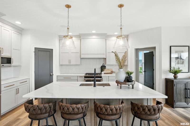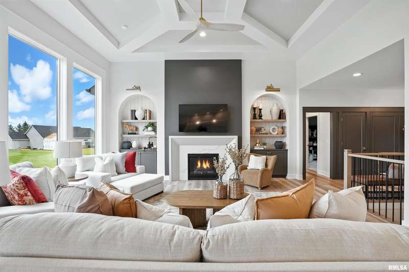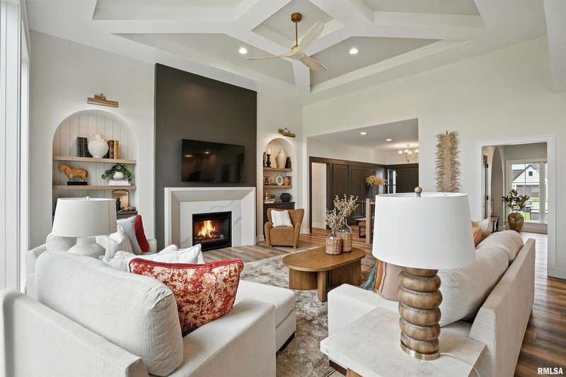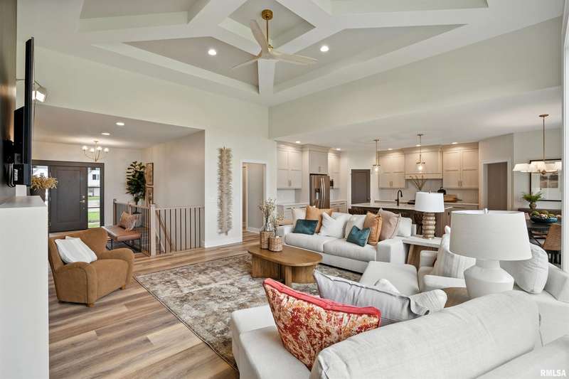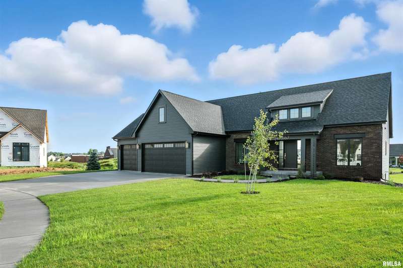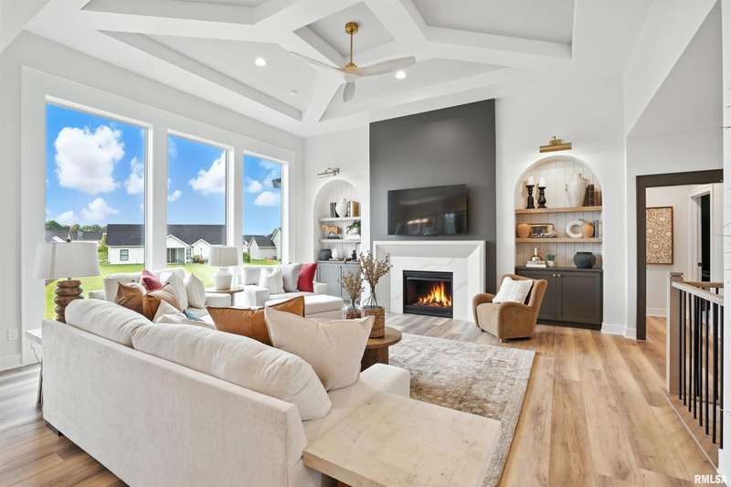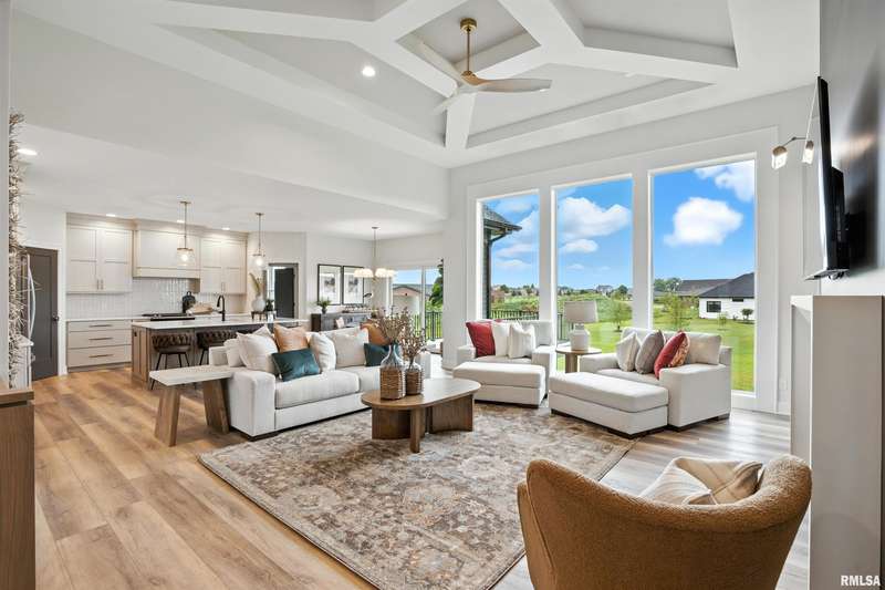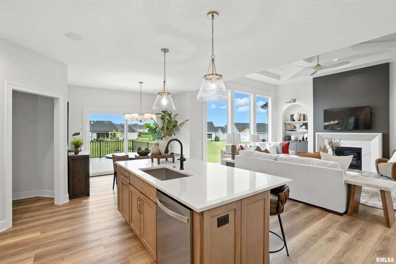 *ASPEN HOMES MODEL HOME* Tucked at the end of a quiet cul-de-sac, this stunning 4 bedroom, 3 bath ranch offers style, comfort, and thoughtful design throughout. The spacious kitchen features upgraded appliances, quartz countertops, a large walk-in pantry, and island seatingperfect for everyday living and entertaining. A bright dinette opens to a maintenance-free deck, ideal for enjoying the outdoors. The great room showcases a 12-foot coffered ceiling, floor-to-ceiling windows and a custom fireplace flanked by trending arched built-in bookcases, all enhanced by durable LVP flooring. The luxurious primary suite includes a tiled walk-in shower, an expansive walk-in closet, and direct access to the laundry room with a folding counter for added convenience. The smart layout includes a back hallway off the 3 car garage with a drop zone, bench/locker and full-size coat closet. Two additional bedrooms and a full bath are located on the opposite side of the home, offering privacy for family or guests. The daylight lower level features a large rec room, fourth bedroom, full bath, and abundant storage space. Located in the PV school district, this neighborhood offers exclusive amenities including a community pool, two stocked fishing ponds, walking trails, meandering sidewalks and mature trees. A truly special place to call home!