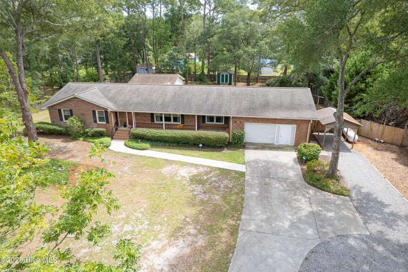 Discover the charm of this classic brick ranch, perfectly situated on a spacious .83 acre lot with no POA restrictions-giving you the freedom to truly make it your own and the ability to park your boat or RV! Located just minutes from the sandy shores of Holden Beach, this property offers the ideal blend of privacy and convenience. The possibilities are endless here - with an expansive front yard, plenty of generous sized rooms inside and a deck overlooking the backyard, there's plenty of room to entertain here. Just inside, you'll find a spacious living area with large picture windows allowing natural light to stream in and fill the room. From there, the space opens to a formal dining area that seamlessly connects to the kitchen. Offering generous storage and a view of the back deck and expansive yard, the kitchen is both functional and inviting. The area beside the kitchen currently serves as dining space but this home offers options and flexibility with the layout to suit your needs. A primary suite addition offers privacy from the rest of the home and includes an oversized bedroom, two walk in closets and bath with dual vanities. On the opposite side of the house, you'll find three additional bedrooms-one with its own ensuite bath-plus a hallway bathroom with dual vanities and a dedicated office or study. The office also features a private entrance, perfect for those who work from home and value a separate, convenient entry. The laundry room is located off of the garage (with separate storage area/workshop) and includes cabinetry storage as well as a utility sink. Offering a fenced backyard, a convenient storage shed, and plenty of outdoor space for gatherings or play, this home is ideal for enjoying life near the beach.