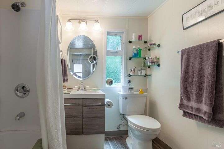 Welcome home to your lovely single wide in Manor Oaks Senior park. This home has been beautifully updated throughout in the last few years. Everything from the brand new kitchen cabinets and counters, new flooring, upgraded bathrooms, appliances, vinyl duel-pane windows and all the detail finishes. This layout offers a bedroom and bathroom on each end; the East sunrise view room has a full bathroom with stand up shower while the West bedroom is next to the hall bath which has a shower over tub & stackable washer/dryer. Additional improvements in the recent years include updated electrical, pex pipe, low flow toilets, new vanities & showers, central heat & A/C upgrade, even replacement of some exterior skirting. The landscaping has been modified with a new rear fence, trees and lawn; enjoy time on the large redwood deck under the awning. The park offers an outdoor pool, rec room with bingo night, pool table and social space. Make yourself comfy and welcome home.