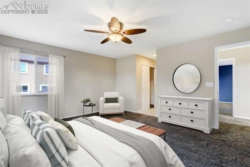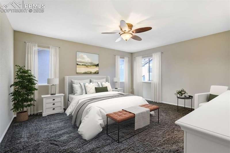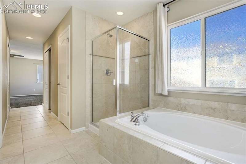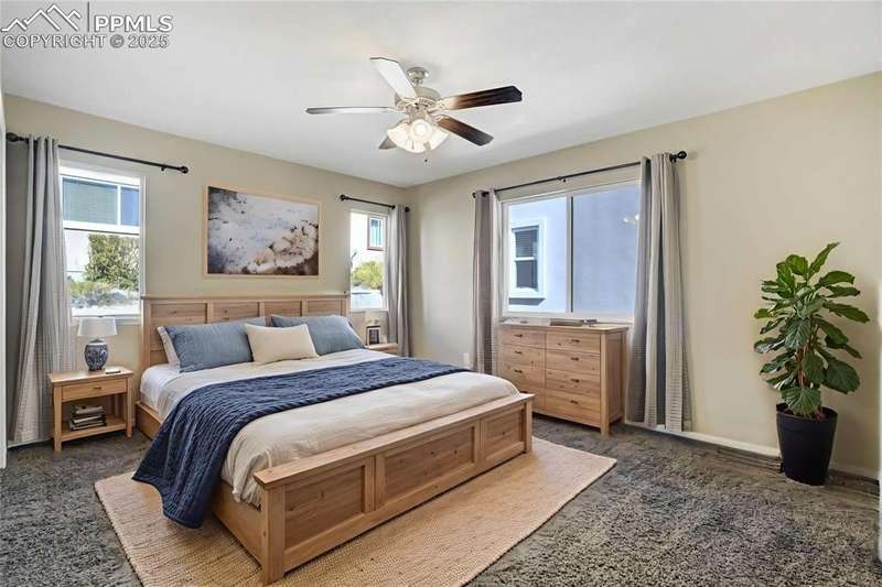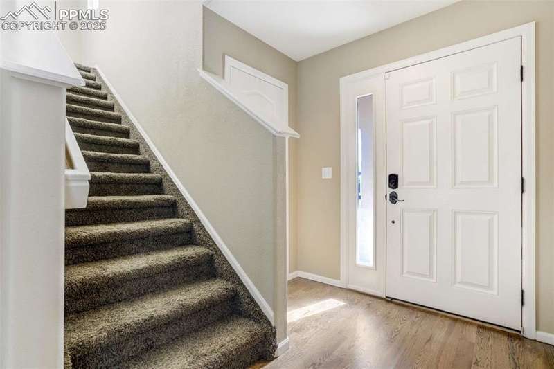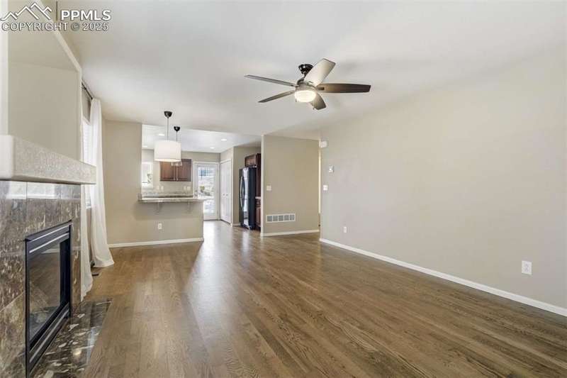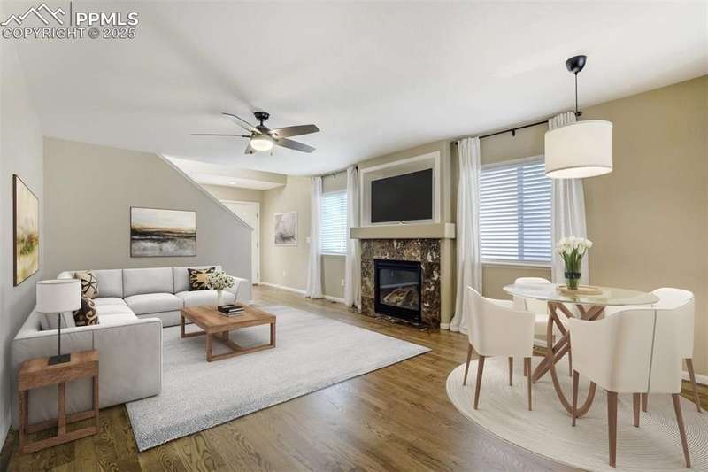 Located in the sought-after Greyhawk at Northgate community, this home offers an ideal blend of lifestyle & convenience. Set within Academy District 20, residents enjoy quick access to top tier schools, USAFA & all of Northgate’s nearby amenities, from restaurants, entertainment & walking trails to major commuting routes, golfing, & all the newest shopping. All new carpet scheduled to be installed. Inside, the home opens to newer solid oak hardwood floors flowing through the great room & kitchen, anchored by a gas fireplace framed in granite tile & custom built-ins. The kitchen boasts modern pendant lighting, breakfast bar, wood cabinets w/brushed metal hardware, granite tile counters, pantry & includes appliances. Offering excellent prep space & walk-out access to the fenced backyard. The main level also includes a spacious bedroom & nearby full bath w/ glass shower door, custom frame mirror, tile surround & granite vanity, perfect for guests or main level living. Upstairs, the primary suite serves as a relaxing retreat w/ generous natural light, dual closets, & a 5-piece bath featuring double vanity, soaking tub, & separate shower. A secondary upper bedroom w/ great mountain views completes the layout. Additional highlights include a 2-car garage, central A/C, tile roof, stucco exterior accented by stone & mountain views. With easy access to I-25 & the best of Northgate living, this property combines comfort, style, & low-maintenance design in one of Colorado Springs most convenient settings.