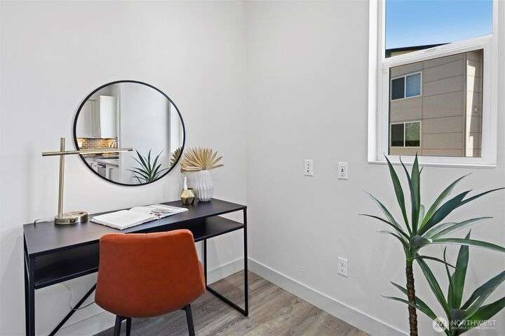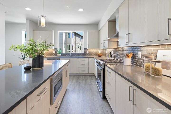 Discover a luxury townhome with nature as its backdrop. 4 bedrooms plus an office nook. Premium upgrades include custom closet organizers, remote-controlled window shades and a durable epoxy garage floor. The kitchen is a host’s dream, with gas cooktop, generous island, spacious dining area, walk-in pantry, & seamless flow to the living space. Step out onto the balcony to savor your morning coffee overlooking a peaceful greenbelt. Convenience is key with an attached 2-car garage and a well-managed HOA that ensures beautifully maintained garden spaces. A fantastic opportunity for spacious, low-maintenance living in a beautiful setting.