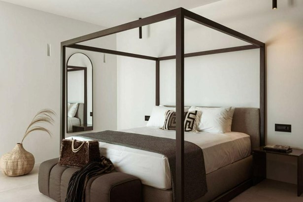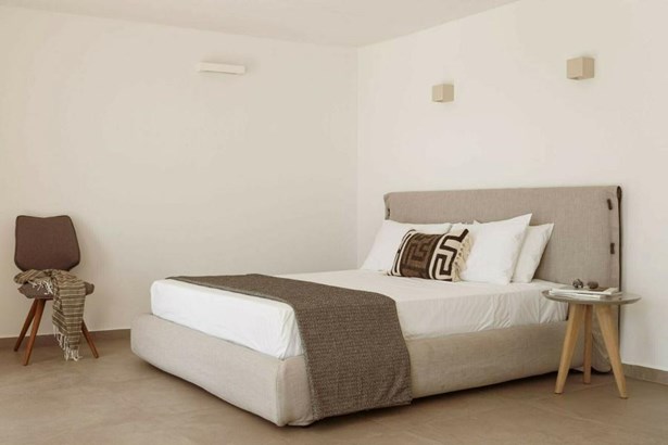 This villa is a majestic and breathtaking property located in Aleomandra area facing Delos island and its colorful sunsets, in an absolute waterfront position. The property has own security gate with private parking, direct entrance access to top floor bedrooms and a side staircase access down to the main front door.