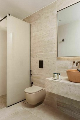 A very spacious white-stone & marble waterfront terrace surrounds the house and a gorgeous oversize lagoon-style waterfront infinity pool. Elegant teak outdoor furniture under a wooden pergola provides comfort with style. A long outdoor dining table, on one of the side terraces, can accommodate many guests for traditional Greek wood-fire BBQ dinners, while an outdoor bar and lounge are also for guests use and cocktail sipping.